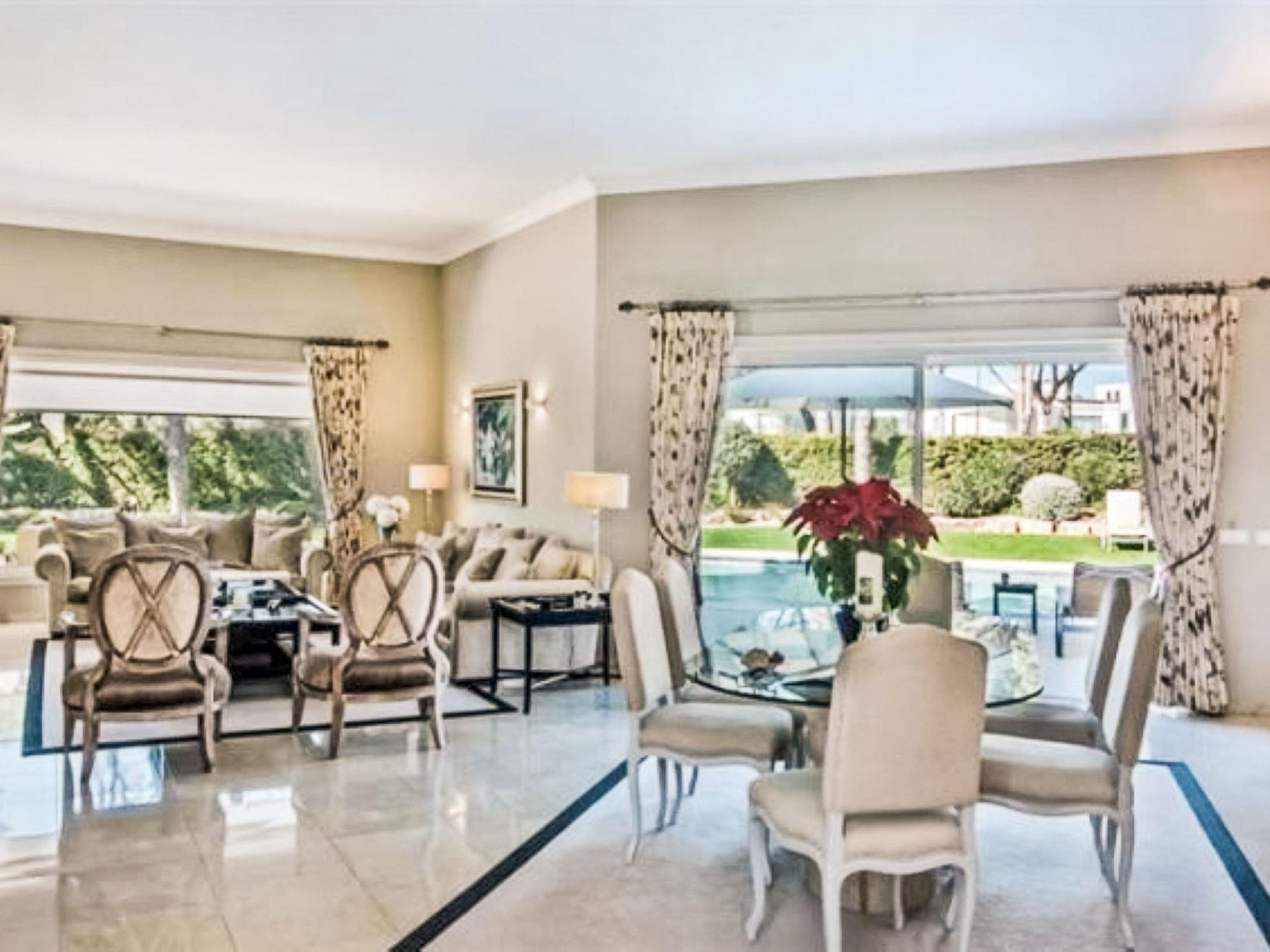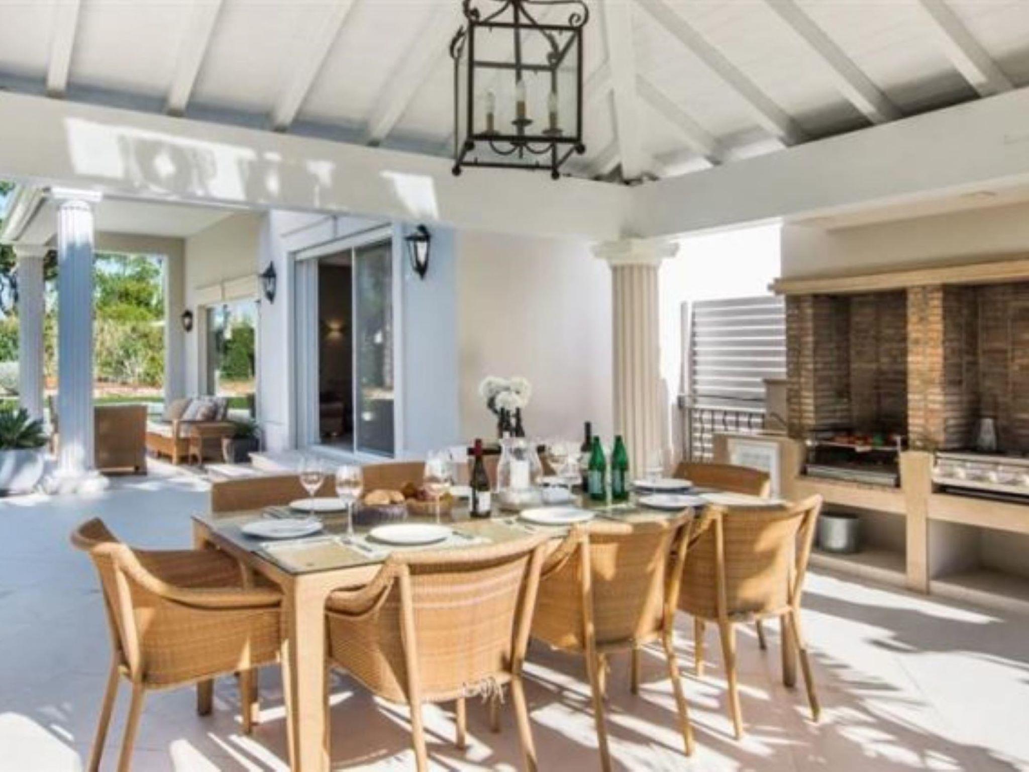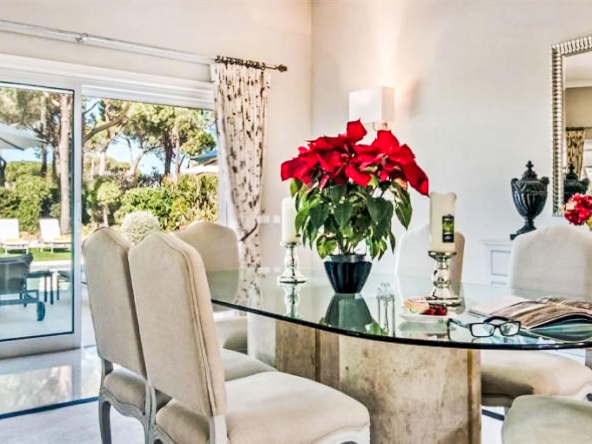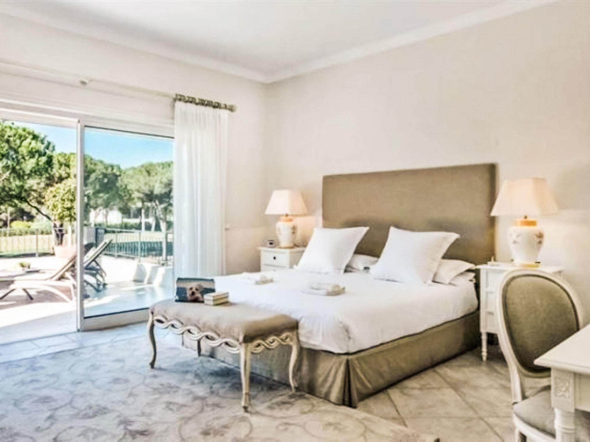 Quinta do Lago: Sehr gemütliche, freistehende, luxuriöse Villa "Dior". Im Bezirk Quinta do Lago, im Villenviertel, 6.1 km vom Meer. Zur Alleinbenutzung: Schwimmbad eckig (5 x 8 m, 90 - 190 cm tief, saisonale Verfügbarkeit: 01.Jan. - 31.Dez.). Im Hause: Wireless LAN, Klimaanlage, Waschmaschine. Wohnungsreinigung 1 mal wöchentlich möglich (inkl.). Lebensmittelgeschäft 3.3 km, Supermarkt 1.9 km, Einkaufszentrum 1.8 km, Restaurant 2.3 km, Bar 3.3 km, Bäckerei 1.9 km, Café 3.3 km, Bushaltestelle 5.1 km, Sandstrand "Beach Garrão Nascente" 6.1 km. Jacht-Hafen 15.1 km, Golfplatz (18 Loch) 5.9 km, Surfschule 14.9 km, Tennis 5.4 km, Kinderspielplatz 5.9 km. Nahe gelegene Sehenswürdigkeiten: Quinta do Lago 4.3 km, Casino Vilamoura 13.2 km, Faro International Airport 15.3 km, Algarve Buggy Tours 9.6 km, Karting Almancil 6.9 km, Aquashow Waterpark 8.9 km. Bitte beachten: Fahrzeug empfohlen. Geeignet für Familien. Be- und Entladen am Ferienhaus möglich.
