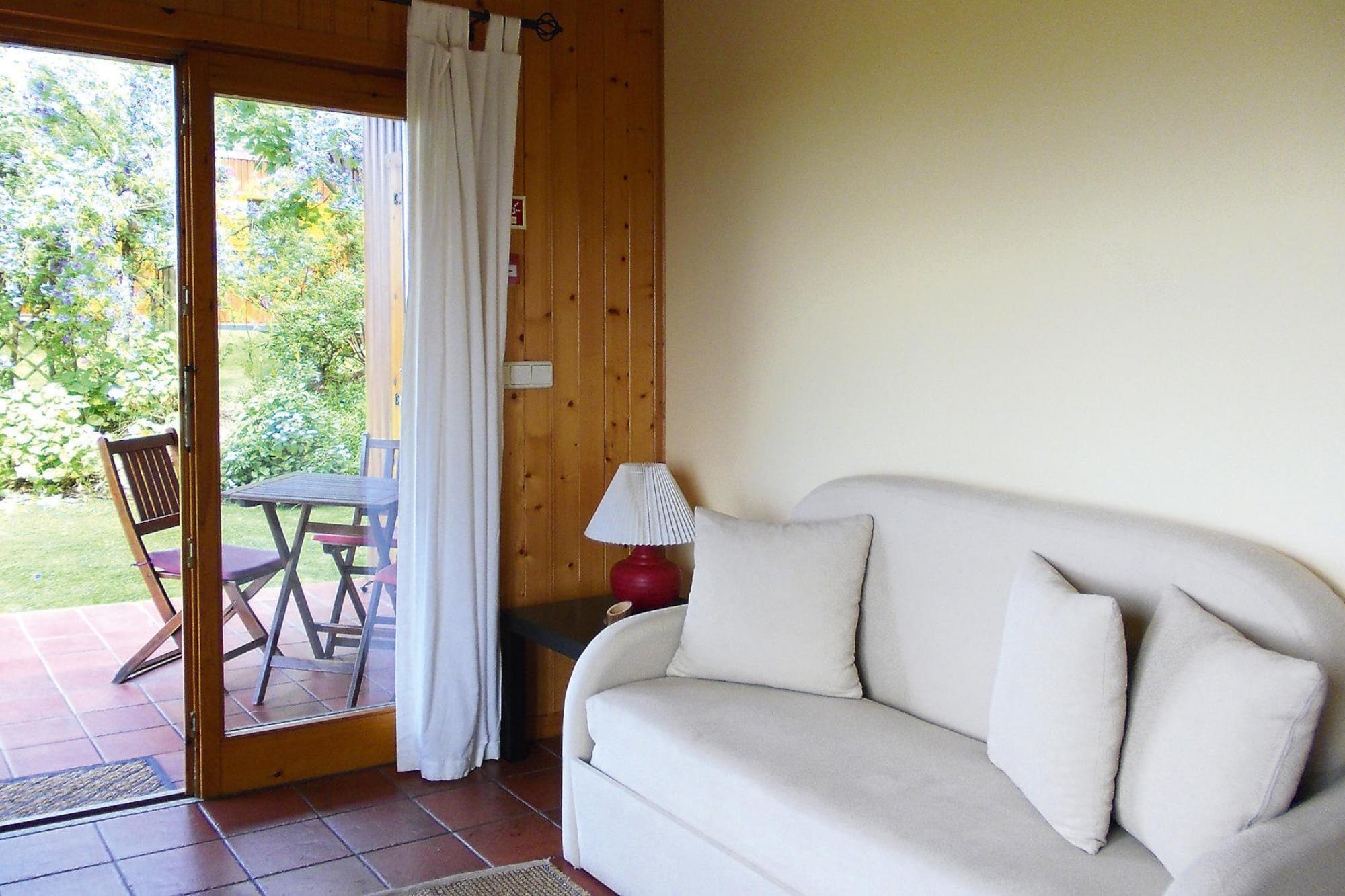 Küche(Kochplatte(2 Kochplatten, elektrisch), Toaster, Kaffeemaschine, Grill, Mikrowelle, Kühlschrank, Heizung), Wohn/Esszimmer(Schlafcouch 1 Pers., TV(Kabel)), Schlafzimmer(Doppelbett), Badezimmer(Badewanne), Toilette, Terrasse, Gartenmöbel, Parkplatz, Babybett (kostenlos)