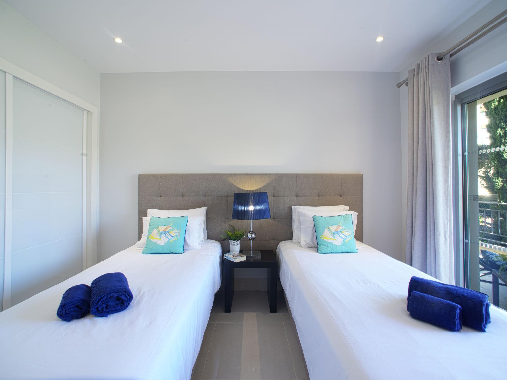 "Pine Hills Ametista", 3-Zimmer-Wohnung 123 m2, im Erdgeschoss. Modern und gemütlich eingerichtet: Wohn-/Esszimmer mit 1 Diwanbett (140 cm, Länge 190 cm), Esstisch, TV, Internationale TV-Sender, Flachbildschirm, Klimaanlage und Warmluftheizung. Ausgang zur Terrasse. 1 Zimmer mit 2 Betten (90 cm, Länge 195 cm), Dusche/WC, Klimaanlage und Warmluftheizung. 1 Zimmer mit 1 franz. Bett (180 cm, Länge 195 cm), Bad/WC, Doppelwaschbecken, Klimaanlage und Warmluftheizung. Ausgang zur Terrasse. Küche (Backofen, Geschirrspüler, 4 Glaskeramikplatten, Mikrowelle, Tiefkühler, elektrische Kaffeemaschine, Kapseln für die Kaffeemaschine (Dolce Gusto Not Incl)). Sep. WC. Terrassenmöbel, Liegestühle (2). Seitliche Sicht auf das Schwimmbad und den Garten. Zur Verfügung: Waschmaschine, Bügeleisen, Kinderhochstuhl, Babybett bis 2 Jahre, Haartrockner. Internet (Wireless LAN, gratis). Parkplatz Nr. L55 and L65 (überdacht), Garage. Bitte beachten: geeignet für Familien. Nichtraucher-Unterkunft. Feuerlöscher. 22780/AL