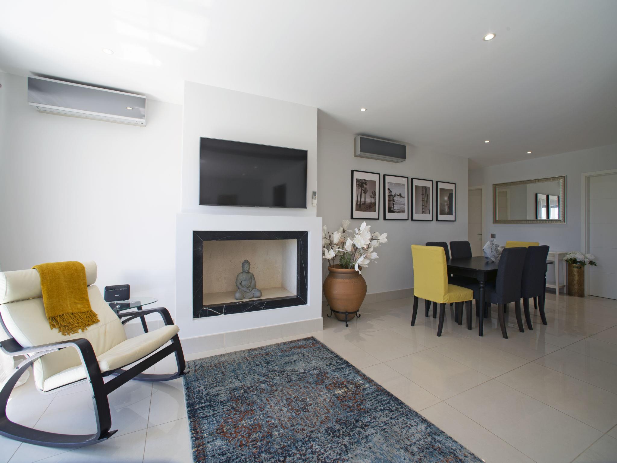 "Pine Hills Ambar", 3-Zimmer-Wohnung 123 m2, im erhöhten Erdgeschoss. Modern und gemütlich eingerichtet: Wohn-/Esszimmer mit 1 Diwanbett (140 cm, Länge 190 cm), Esstisch, TV, Internationale TV-Sender, Flachbildschirm, Klimaanlage und Warmluftheizung. Ausgang zur Terrasse. 1 Zimmer mit 1 franz. Bett (160 cm, Länge 190 cm), Dusche/WC, Klimaanlage und Warmluftheizung. 1 Zimmer mit 1 franz. Bett (180 cm, Länge 195 cm), Bad/WC, Doppelwaschbecken, Klimaanlage und Warmluftheizung. Ausgang zur Terrasse. Küche (Backofen, Geschirrspüler, 4 Glaskeramikplatten, Mikrowelle, Tiefkühler, elektrische Kaffeemaschine, Kapseln für die Kaffeemaschine (Delta Q Not Incl)). Sep. WC. Kleine Terrasse 40 m2. Terrassenmöbel, Liegestühle (2). Seitliche Sicht auf das Schwimmbad und den Garten. Zur Verfügung: Waschmaschine, Bügeleisen, Kinderhochstuhl, Babybett bis 2 Jahre, Haartrockner. Internet (WLAN, gratis). Parkplatz (überdacht), Garage Nr. L33 + L49. Bitte beachten: geeignet für Familien. Nichtraucher-Unterkunft. Feuerlöscher. 87399/AL