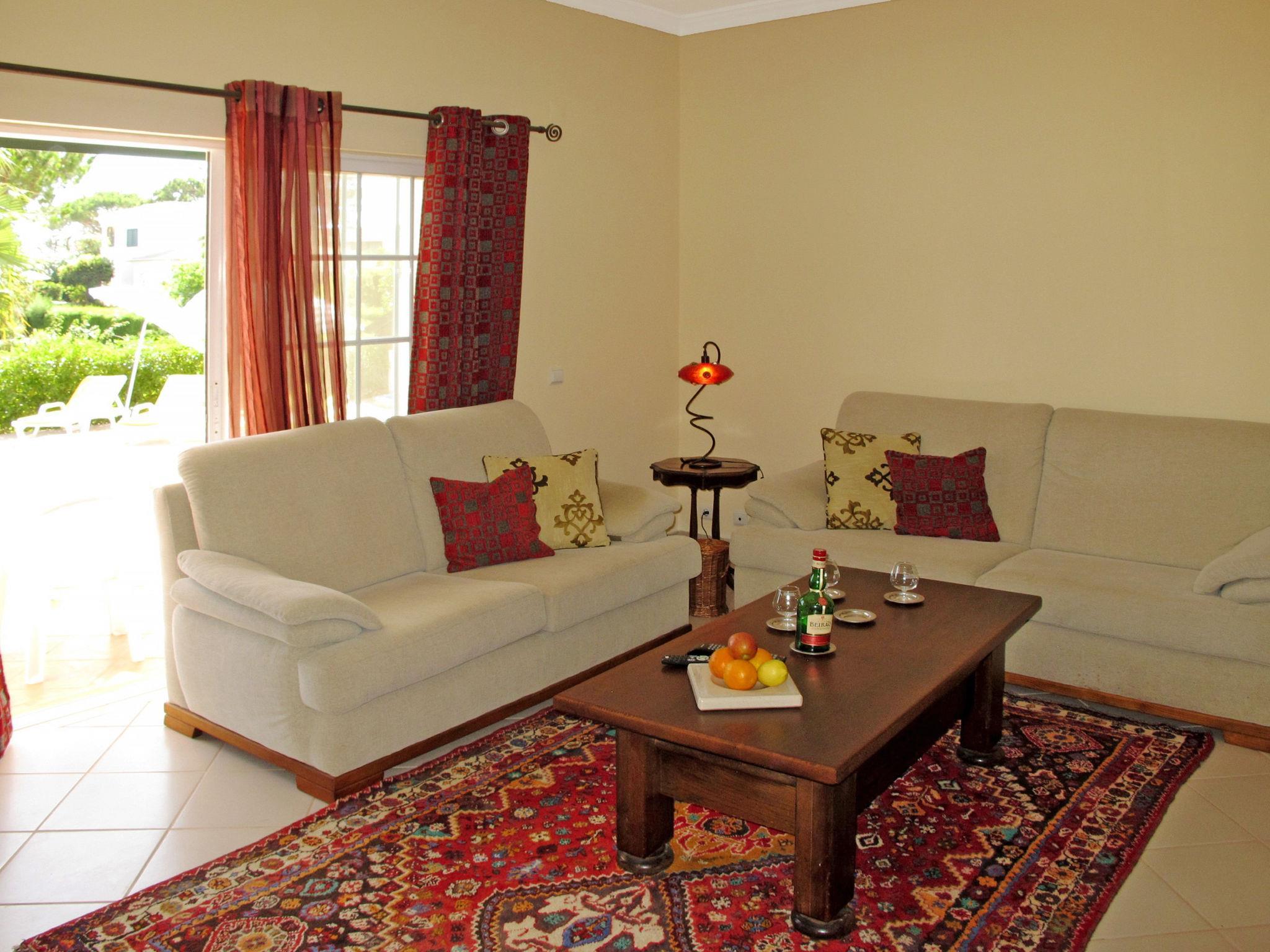 Doppelhaus "Vila Sol". 4.5 km vom Zentrum von Vilamoura, 10 km vom Zentrum von Loulé, in einem Wohnquartier, im Villenviertel, 4.5 km vom Meer. Zur Mitbenutzung: Grundstück 950 m2 (eingezäunt), gepflegter Garten mit Rasen. Zur Alleinbenutzung: Schwimmbad (9 x 4 m, 100 - 200 cm tief, saisonale Verfügbarkeit: 01.Jan. - 31.Dez.). Aussendusche, Poolpflege durch den Besitzer/Gärtner. Öffentliche Parkplätze. Supermarkt 1.8 km, Restaurant 650 m, Bushaltestelle 750 m, Bahnstation "Loulé" 4.8 km, Sandstrand "Quarteira" 4.5 km, Hallenbad 4.4 km. Jacht-Hafen 5 km, Golfplatz (27 Loch) 1 km, Tennis 5 km. Nahe gelegene Sehenswürdigkeiten: Aquapark 2.1 km, Casino Vilamoura 5.2 km. Der Besitzer akzeptiert keine Jugendgruppen. Bitte beachten: Der Besitzer wohnt im selben Haus.