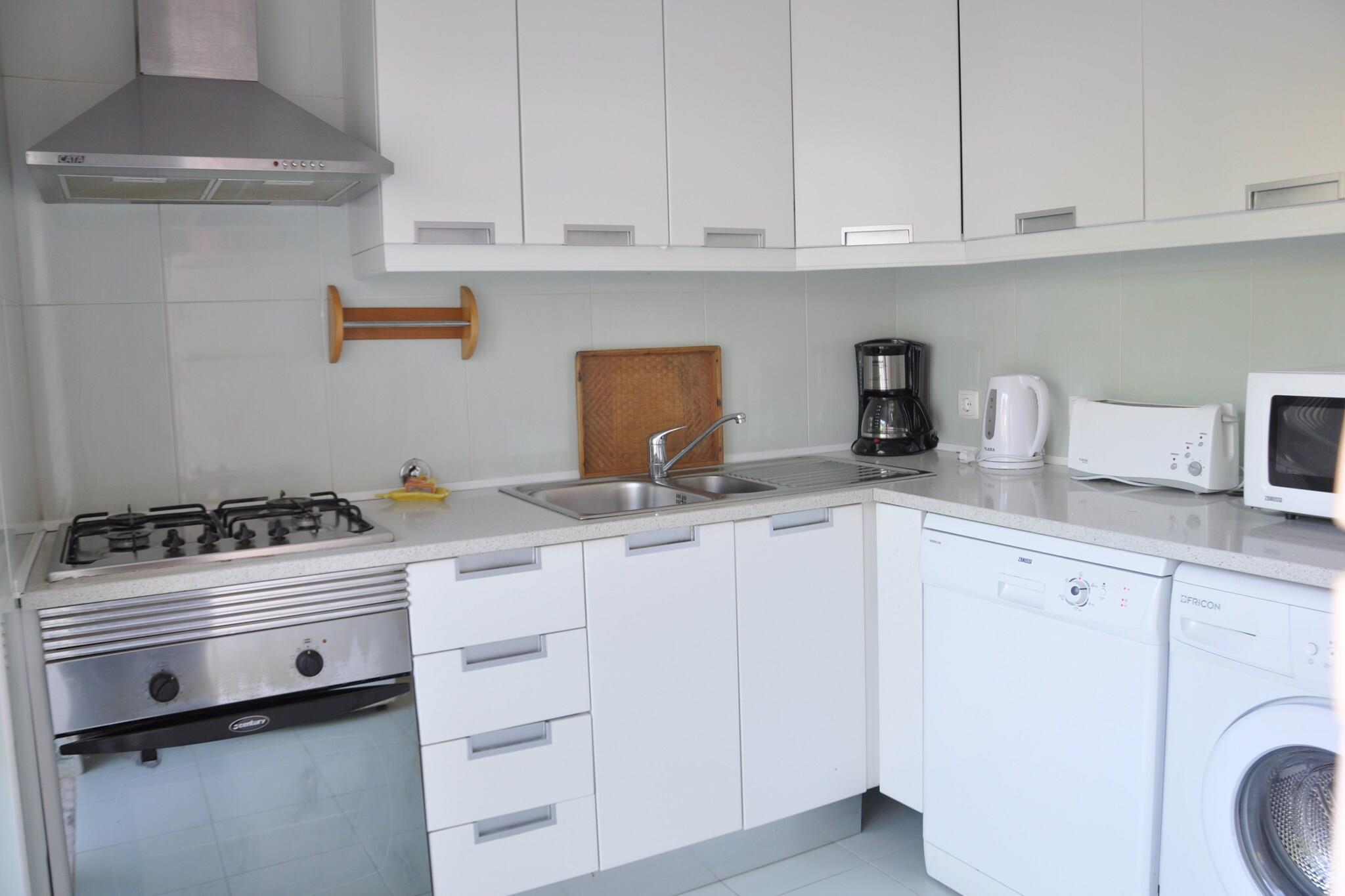 Parterre: (Küche(Kochherd(Ceranfeld), Backofen, Mikrowelle, Spülmaschine, Kühl-/Gefrierkombination), Wohn/Esszimmer(TV(Kabel), Kaminofen, DVD-Spieler, CD-Spieler, Stereoanlage, Klimaanlage), Schlafzimmer mit Badezimmer(Doppelbett, Dusche, 2x Waschbecken, Toilette, Bidet, Klimaanlage)) In der 1. Etage: (Schlafzimmer(2x Einzelbett, Klimaanlage), Schlafzimmer(2x Einzelbett, Klimaanlage), Badezimmer(Badewanne mit Dusche, 2x Waschbecken, Toilette, Bidet)) Herd, Kaffeemaschine, Badewanne oder Dusche, Dusche, Waschmaschine, Patio, Terrasse, Gartenmöbel, Liegen, Grill, Liegestühle, Sonnenschirm, Pool(alleinige Nutzung, 4 x 3 m.), Bügelbrett