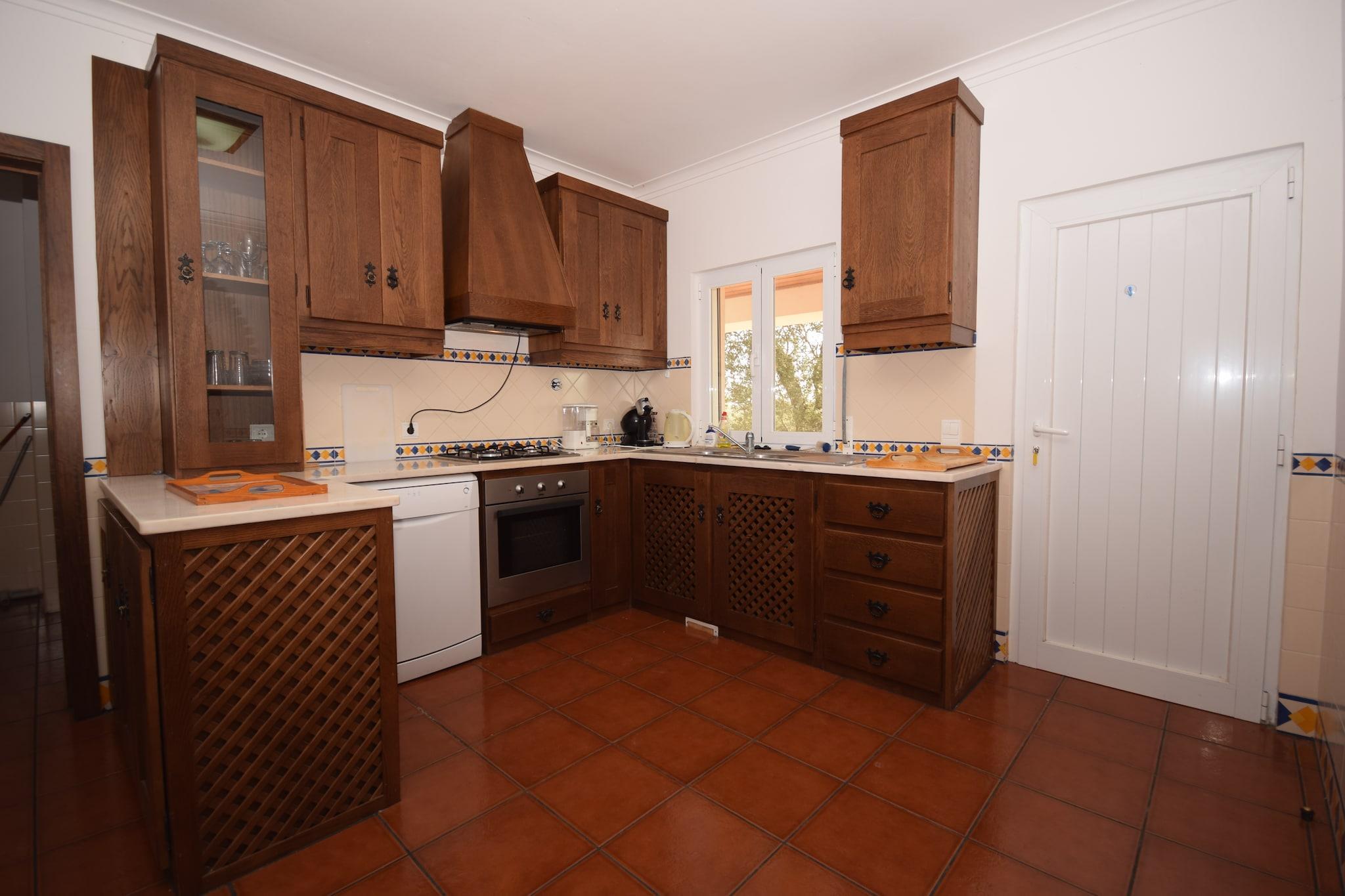 Tauchen Sie ein in die friedliche Landschaft von Vimieiro in dieser charmanten Villa mit privatem Swimmingpool und großem, umzäuntem Garten. Entspannen Sie sich auf den Sonnenliegen, treffen Sie sich zu einem Barbecue unter der überdachten Terrasse oder machen Sie es sich im gemütlichen Wohnzimmer mit Holzofen und Satellitenfernsehen gemütlich. Die Klimaanlage sorgt für Komfort im gesamten Haus, während ein Kinderbett und ein Hochstuhl es ideal für Familien machen. Der üppige Garten lädt zu gemütlichen Momenten mit einem Buch oder einem Essen im Freien inmitten der Natur ein. Nur 3 km vom Stadtzentrum von Vimieiro entfernt können Gäste lokale Geschäfte erkunden und den authentischen portugiesischen Charme erleben. Die historische Stadt Évora, die zum UNESCO-Weltkulturerbe gehört, ist ebenso leicht zu erreichen wie Praia de Porto Novo, wo Sie spazieren gehen, Rad fahren und wandern können. Entdecken Sie die Weinregion Alentejo, malerische Dörfer und die regionale Küche in den nahe gelegenen Tavernen, wo Gerichte wie "Migas", langsam gegartes Schweinefleisch und frische Meeresfrüchte die lokalen Aromen unterstreichen, ergänzt durch die berühmten Weine der Region.
