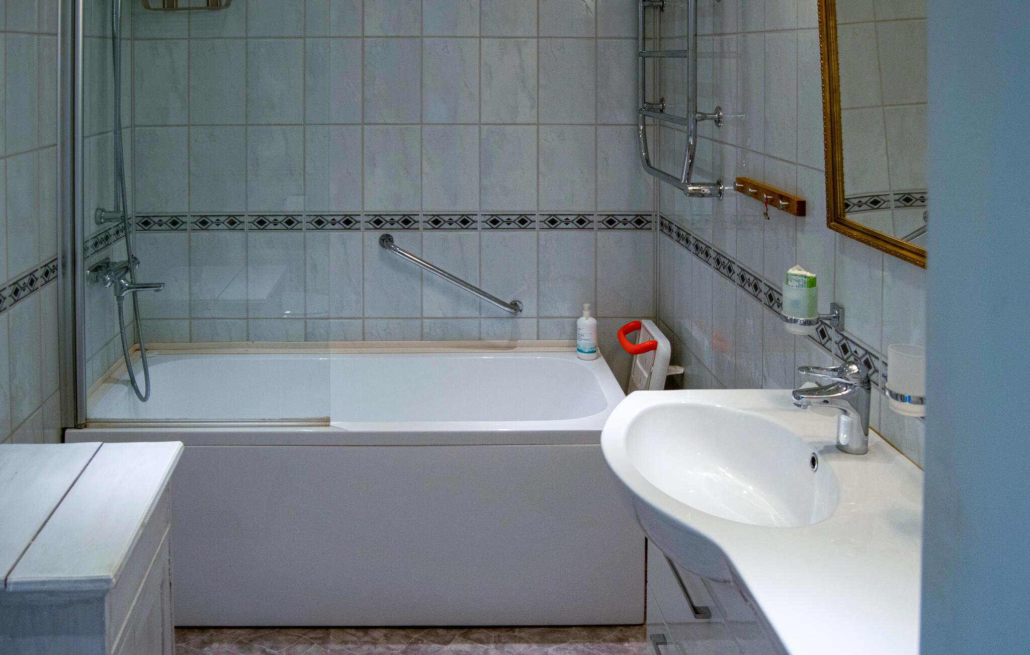 - WC mit warmem und kaltem Wasser, Handbrause und Badewanne
