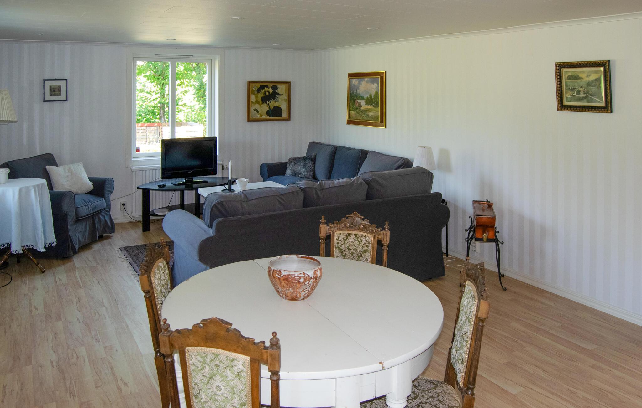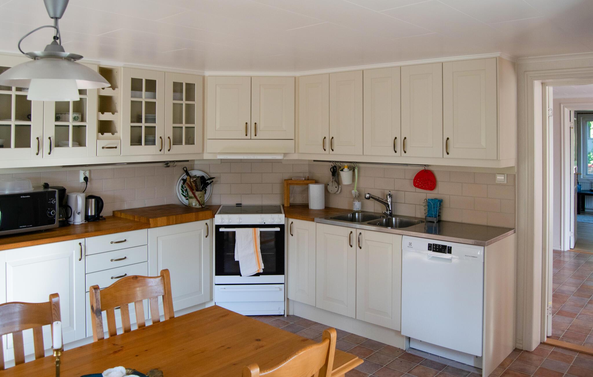 Willkommen in diesem charmanten Ferienhaus in Knappekulla, nahe dem idyllischen See Vindommen. Hier finden Sie Ruhe und Natur pur, ideal für einen erholsamen Urlaub mit der ganzen Familie. Das Haus empfängt Sie mit einem großzügigen und gemütlichen Wohnbereich, der zum Entspannen einlädt. Machen Sie es sich auf den Sofas bequem, lesen Sie ein Buch oder planen Sie Ihren nächsten Tagesausflug. Und musizieren Sie abends alle zusammen am Klavier. Die helle Küche mit dem großen Esstisch lädt zum gemeinsamen Kochen ein.