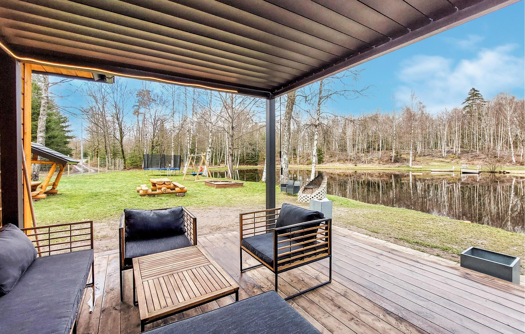 In diesem Ferienhaus wohnen Sie mitten in der schwedischen Natur. Und darüber hinaus bietet es Ihnen auch noch jede Menge verschiedener Aktivitätsmöglichkeiten. Der schlicht gehaltene Innenbereich besticht durch seine stilvolle Atmosphäre. Auf den weichen Sofas ist viel Platz zum gemeinsamen Entspannen bei einem guten Buch mit Blick auf Ihren Fischteich. Die großzügige Terrasse bietet die Möglichkeit zu grillen oder einfach nur die freie Urlaubszeit in vollen Zügen zu genießen.