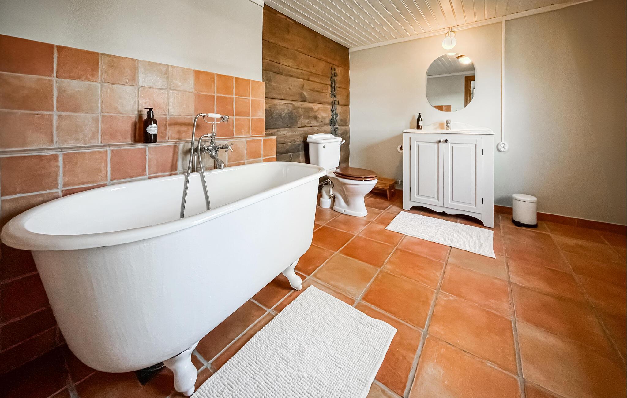 Badezimmer (nr. 1) - WC. Warmes und kaltes Wasser. Dusche und Badewanne