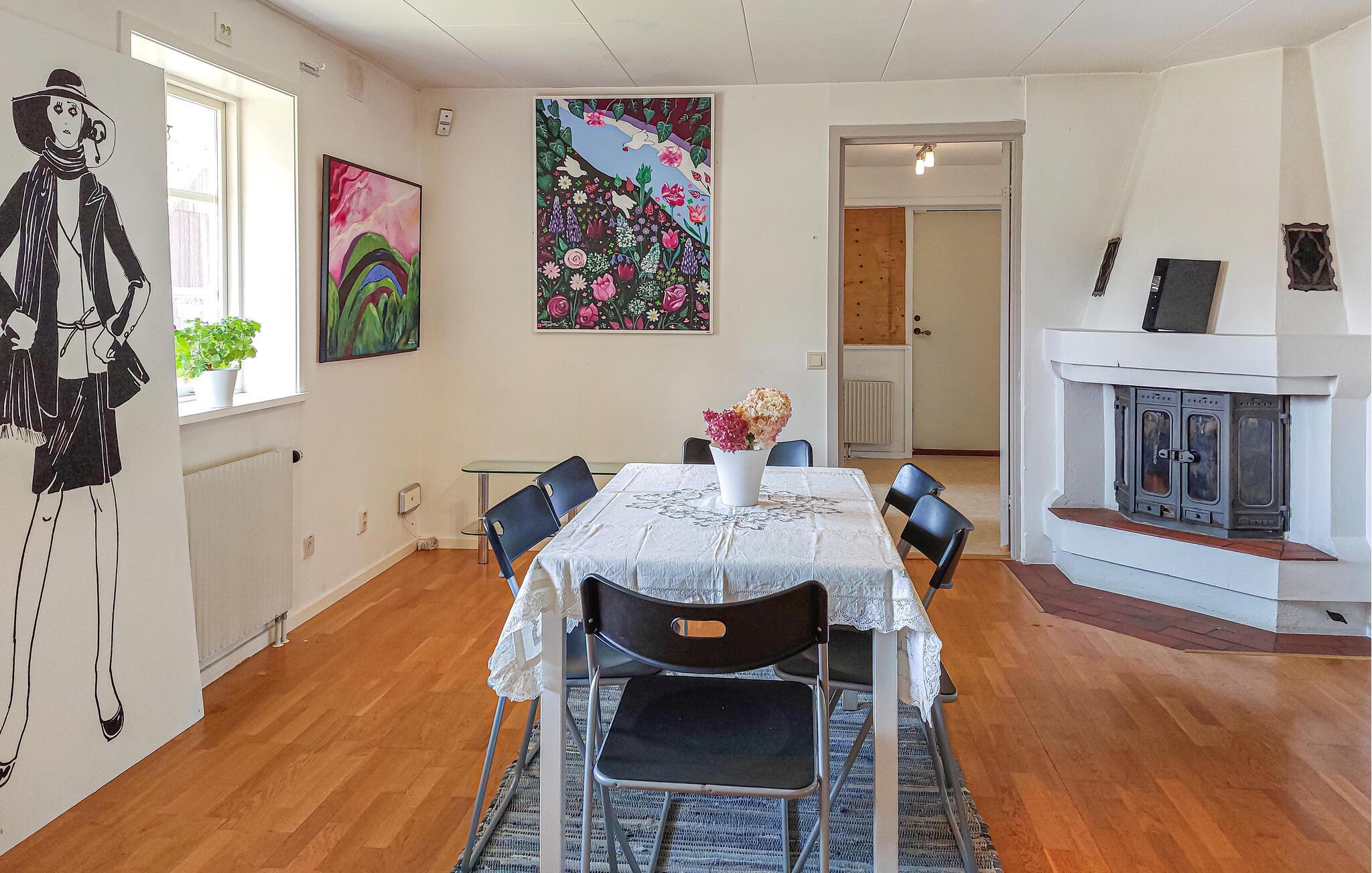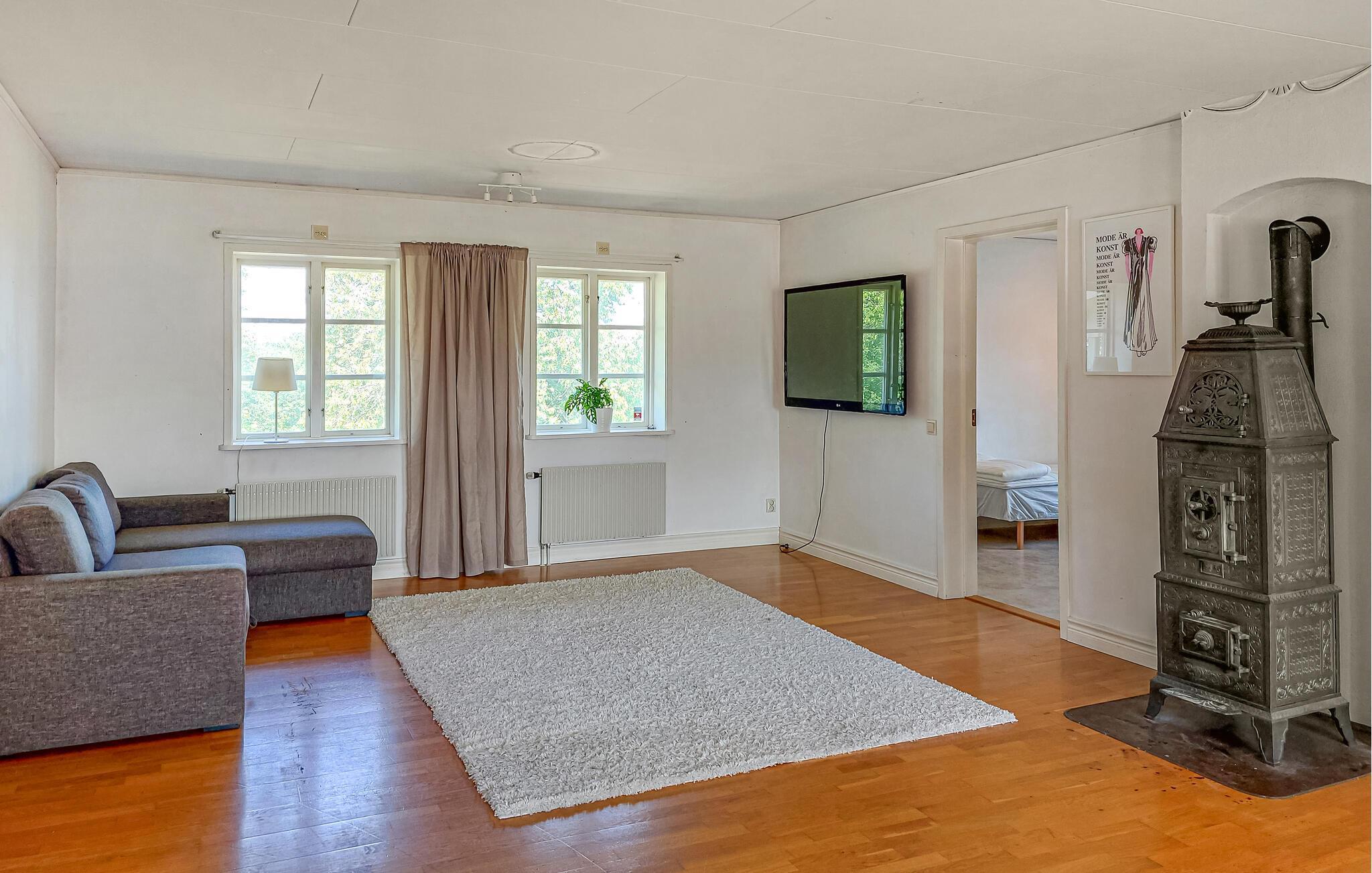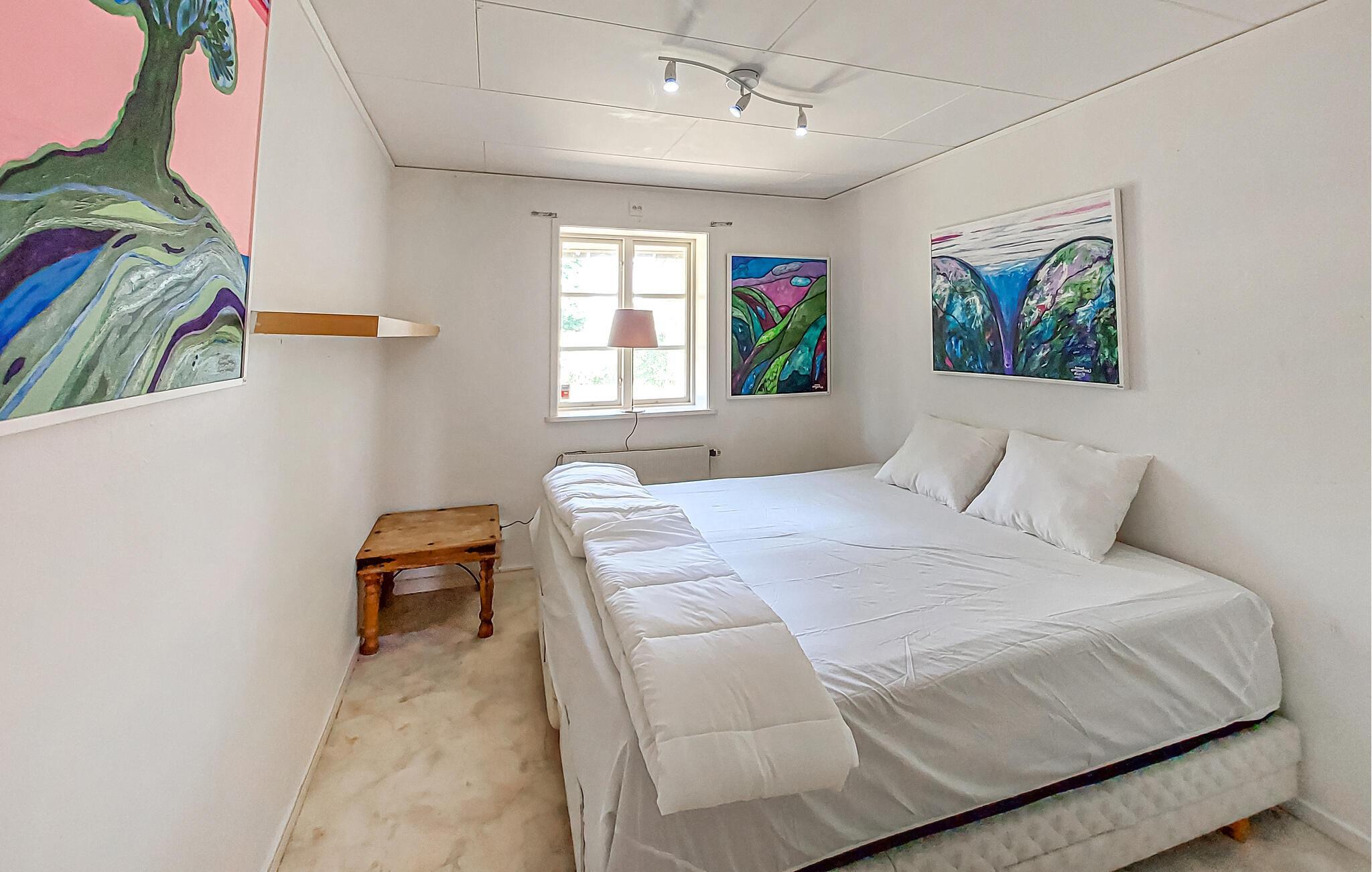 Ein heller, geräumiger Innenbereich mit farbenfrohen Akzenten heißt Sie in diesem Urlaubsdomizil willkommen, in dem Sie viel Platz zum Spielen, Speisen und Entspannen mit Ihren Liebsten vorfinden. Zaubern Sie gemeinsam Ihre Lieblingsmahlzeiten, planen Sie Ihre Unternehmungen mit Blick ins Grüne, entfachen Sie an kühleren Tagen den norwegischen Kaminofen und entspannen Sie nach einem langen Tag auf dem komfortablen Sofa.