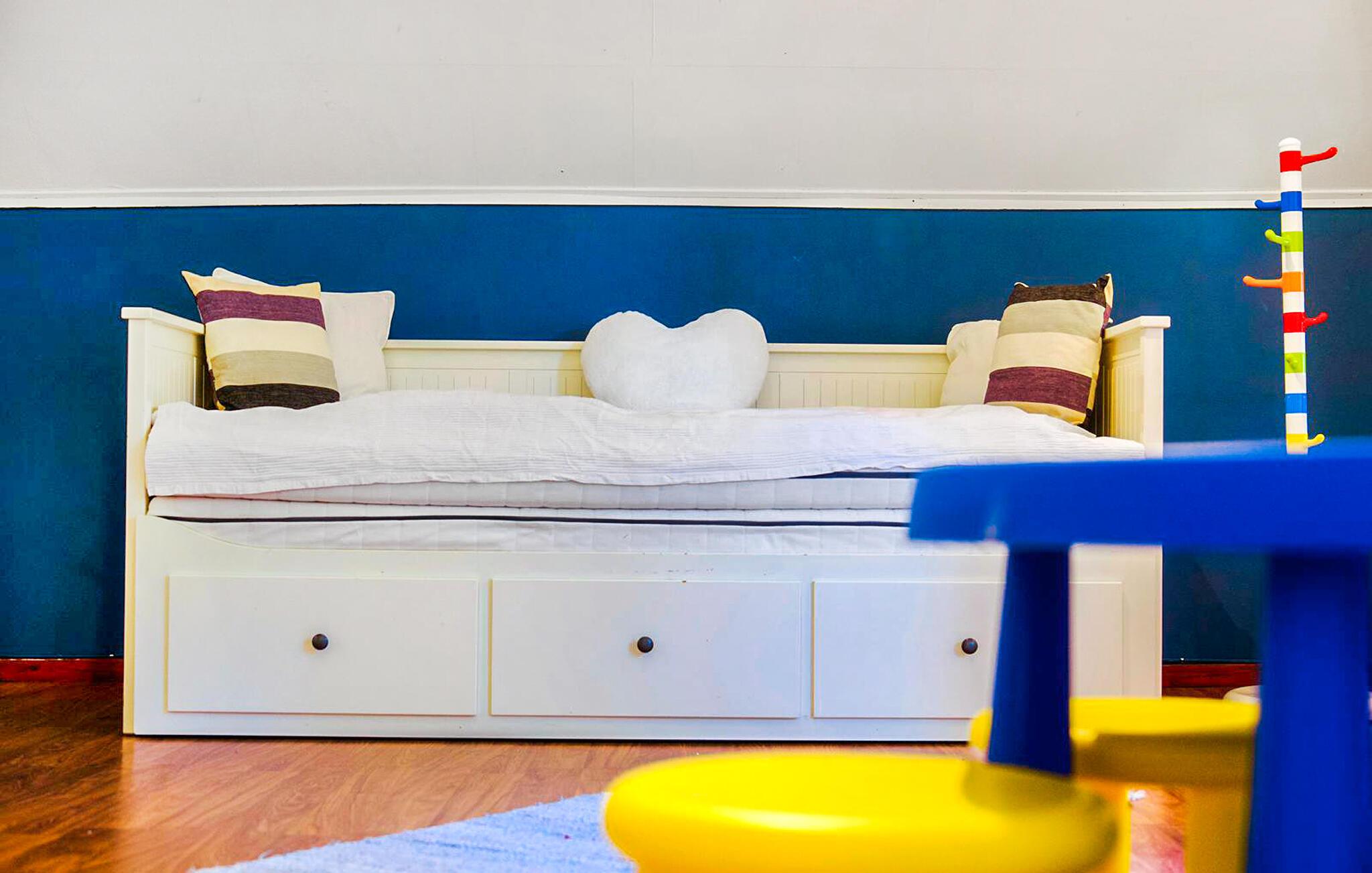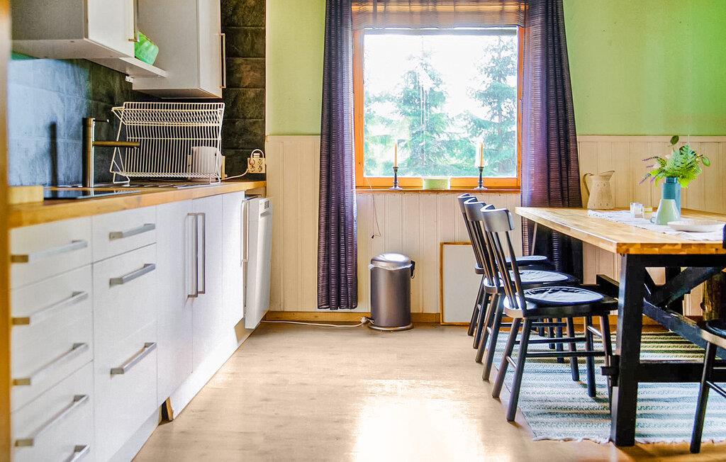 Genießen Sie einen Urlaub voller Ruhe, Natur und schwedischer Gemütlichkeit in diesem liebevoll eingerichteten Ferienhaus. Das traditionelle Holzhaus liegt in traumhafter Lage, umgeben von Wäldern, Wiesen und Seen. Entspannen Sie im großzügigen Wohnzimmer auf dem bequemen Sofa oder genießen Sie den Blick ins Grüne bei einem knisternden Feuer im Steinkamin. In der Küche mit Holzelementen und viel Licht können Sie gemeinsam kochen und am großen Esstisch gemütliche Mahlzeiten genießen. Nach einem aktiven Tag in der Natur lädt die private Sauna zu wohltuender Entspannung ein.