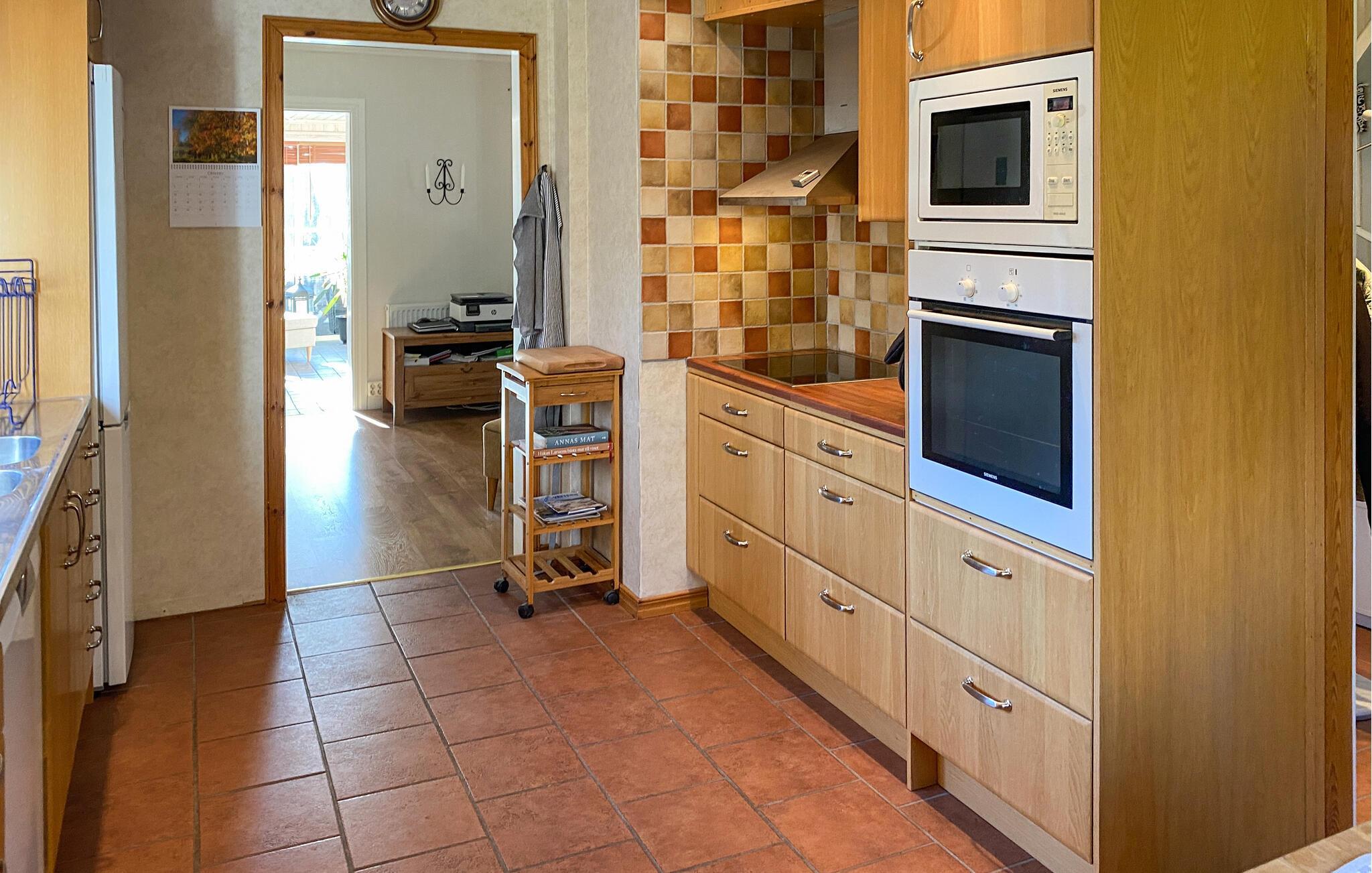 Beim Betreten des Hauses werden Sie von einem einladenden Flur empfangen, dahinter befindet sich eine gut ausgestattete Küche mit reichlich Koch- und Aufbewahrungsmöglichkeiten. Machen Sie es sich auf dem großzügigen Ecksofa im Wohnzimmer gemütlich, das zu Beisammensein am Kaminofen einlädt. Das Abendessen genießen Sie am besten im Wintergarten oder auf der Terrasse, wo ein Gasgrill zur Verfügung steht.