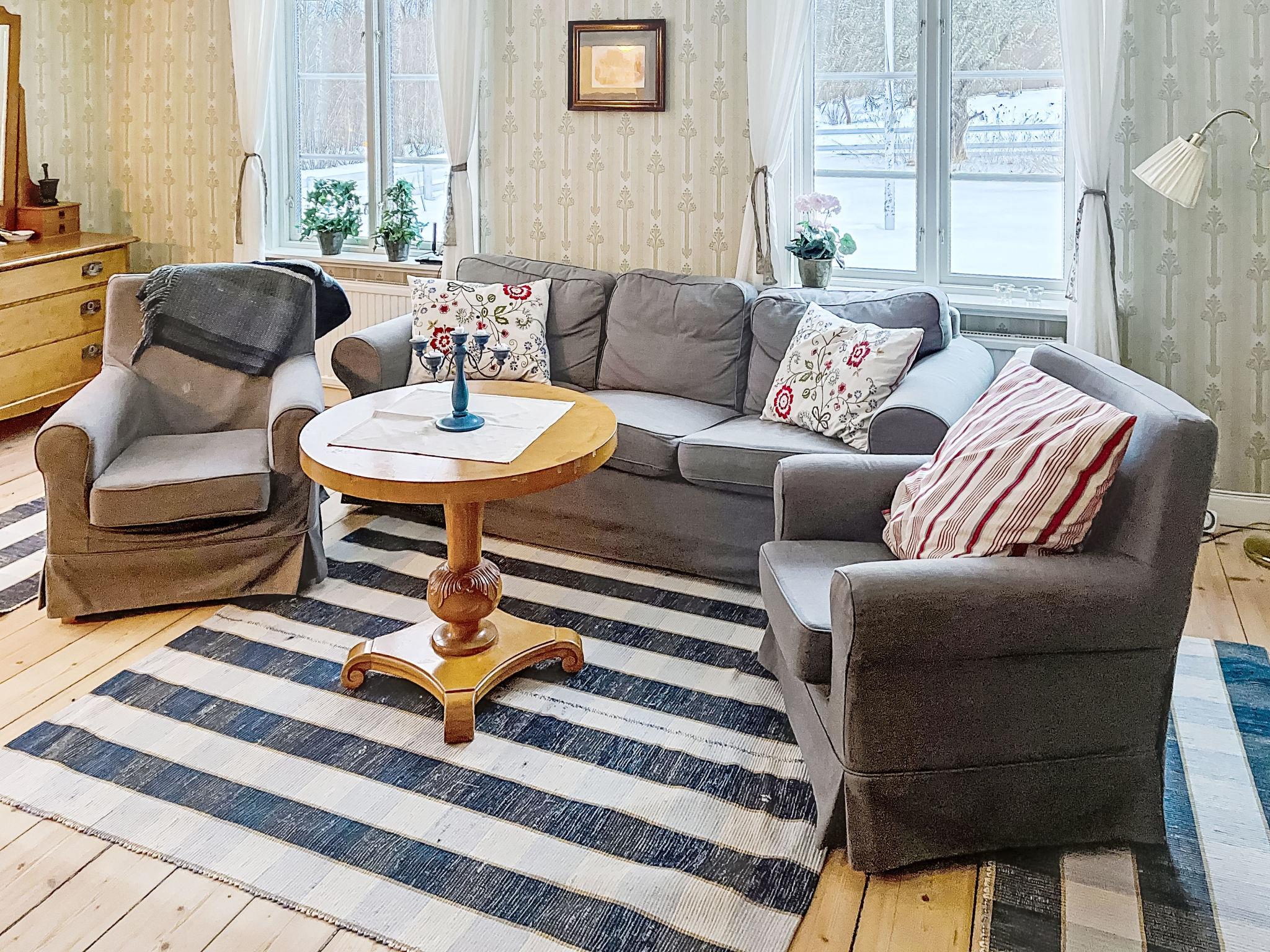 "Torpet i Småland", 3-Zimmer-Haus 60 m2 auf 2 Stockwerken. Komfortabel eingerichtet: Wohnzimmer mit TV. 1 Zimmer mit 1 Doppelbett (160 cm, Länge 200 cm). Küche (4 Kochplatten, Backofen, Geschirrspüler, Toaster, Wasserkocher, Mikrowelle, Tiefkühler, elektrische Kaffeemaschine) mit Esstisch. Dusche/WC. E-Heizung. Obergeschoss: 1 Zimmer mit 1 Bett (90 cm, Länge 200 cm). 1 Zimmer mit 2 Betten (90 cm, Länge 200 cm). Holzdielenboden. Sehr schöne, auf die Landschaft und den Wald. Zur Verfügung: Waschmaschine. Internet (WLAN, gratis). Bitte beachten: Nichtraucher-Haus.