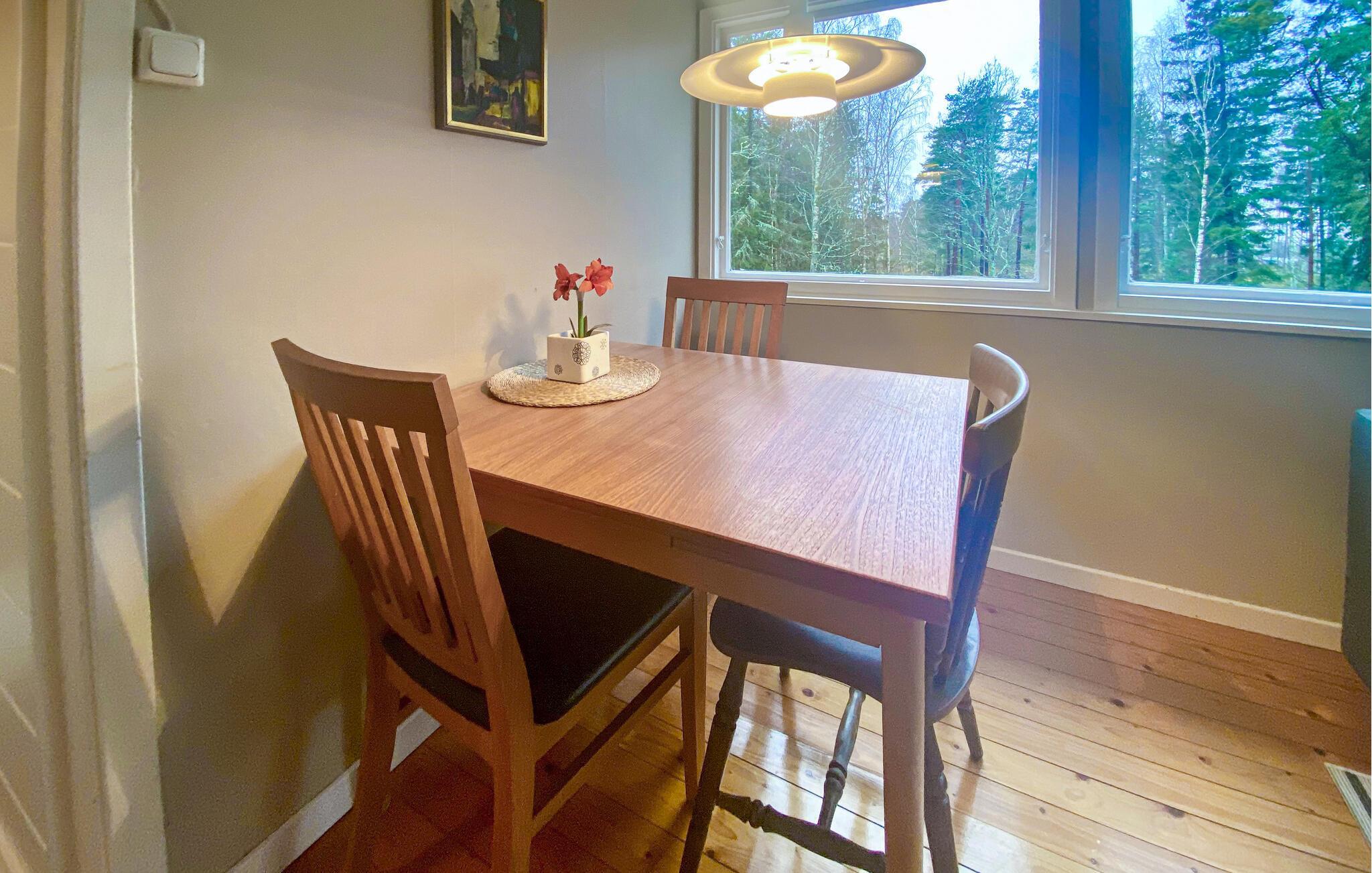 Nach einem Tag voller Entdeckungen kehren Sie in dieses charmante Ferienhaus zurück, das mit rustikaler Gemütlichkeit und einer warmen Atmosphäre begeistert. Die stilvolle Einrichtung sorgt für Komfort, während die großen Fenster den Blick in die Natur freigeben. Lassen Sie den Tag mit einem Glas Wein auf der Holzterrasse ausklingen oder entspannen Sie im behaglichen Wohnbereich. Hier können Sie zur Ruhe kommen und den Alltag hinter sich lassen.