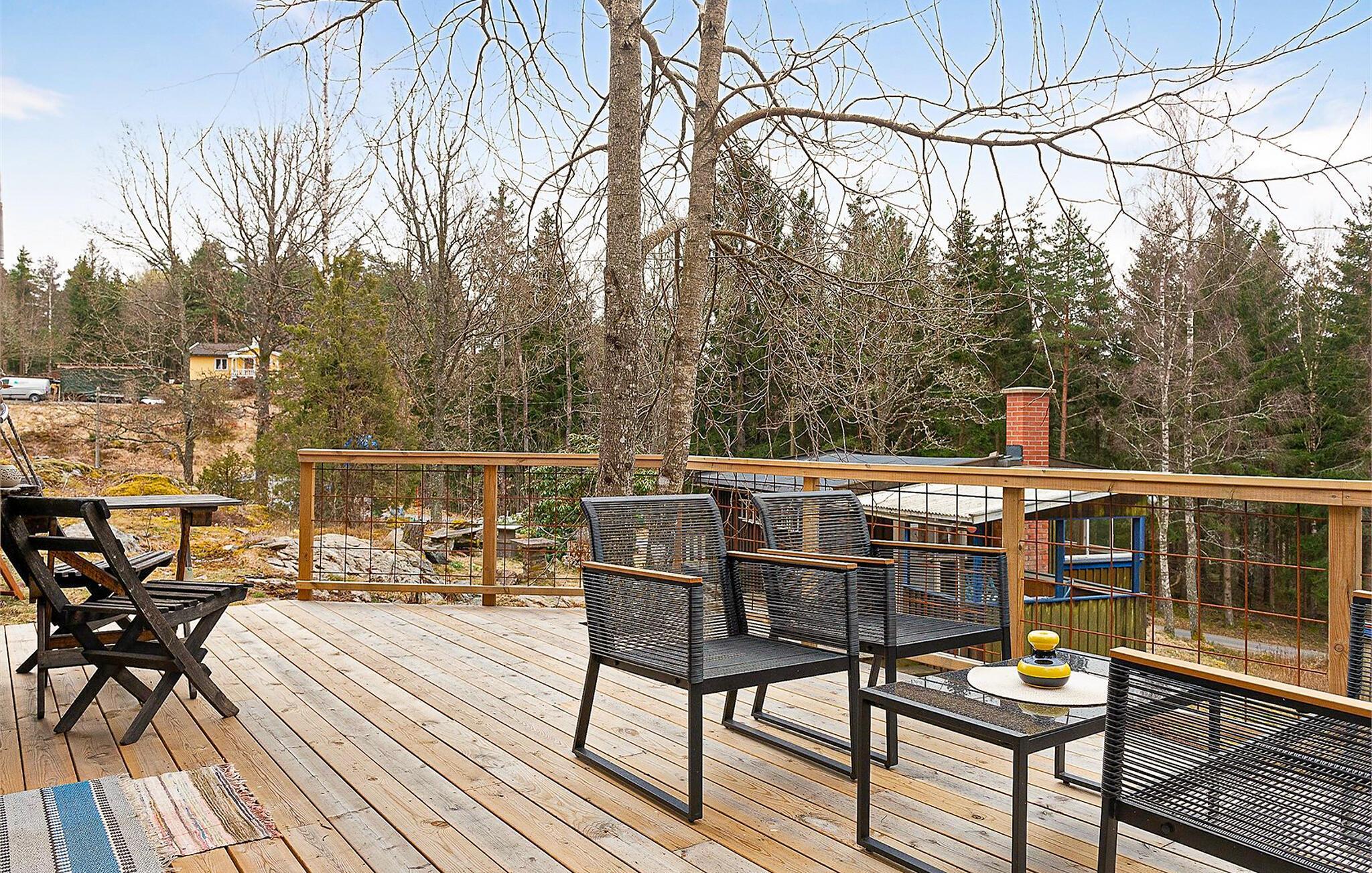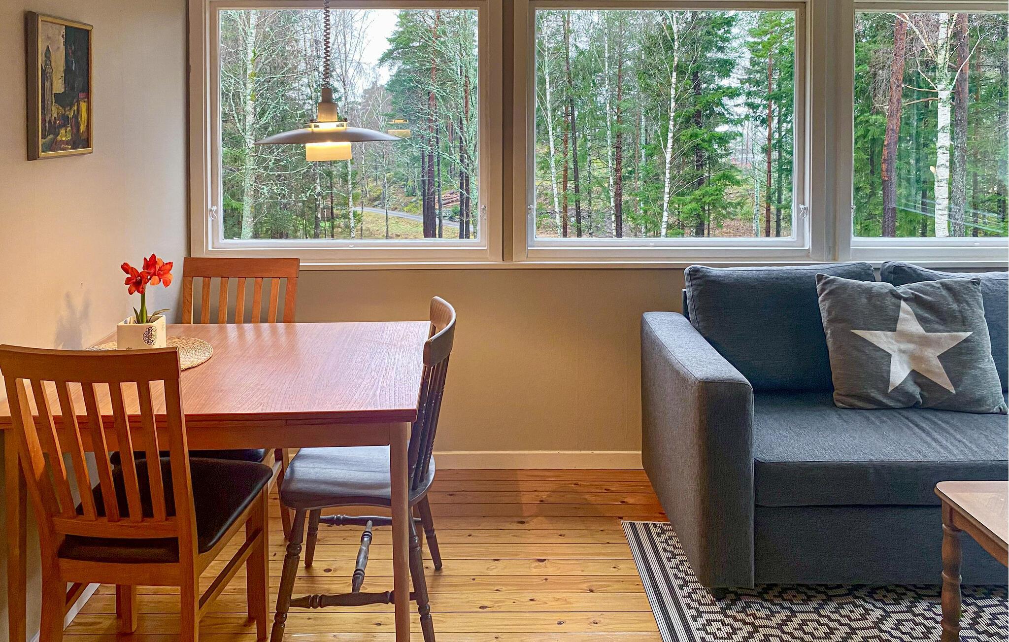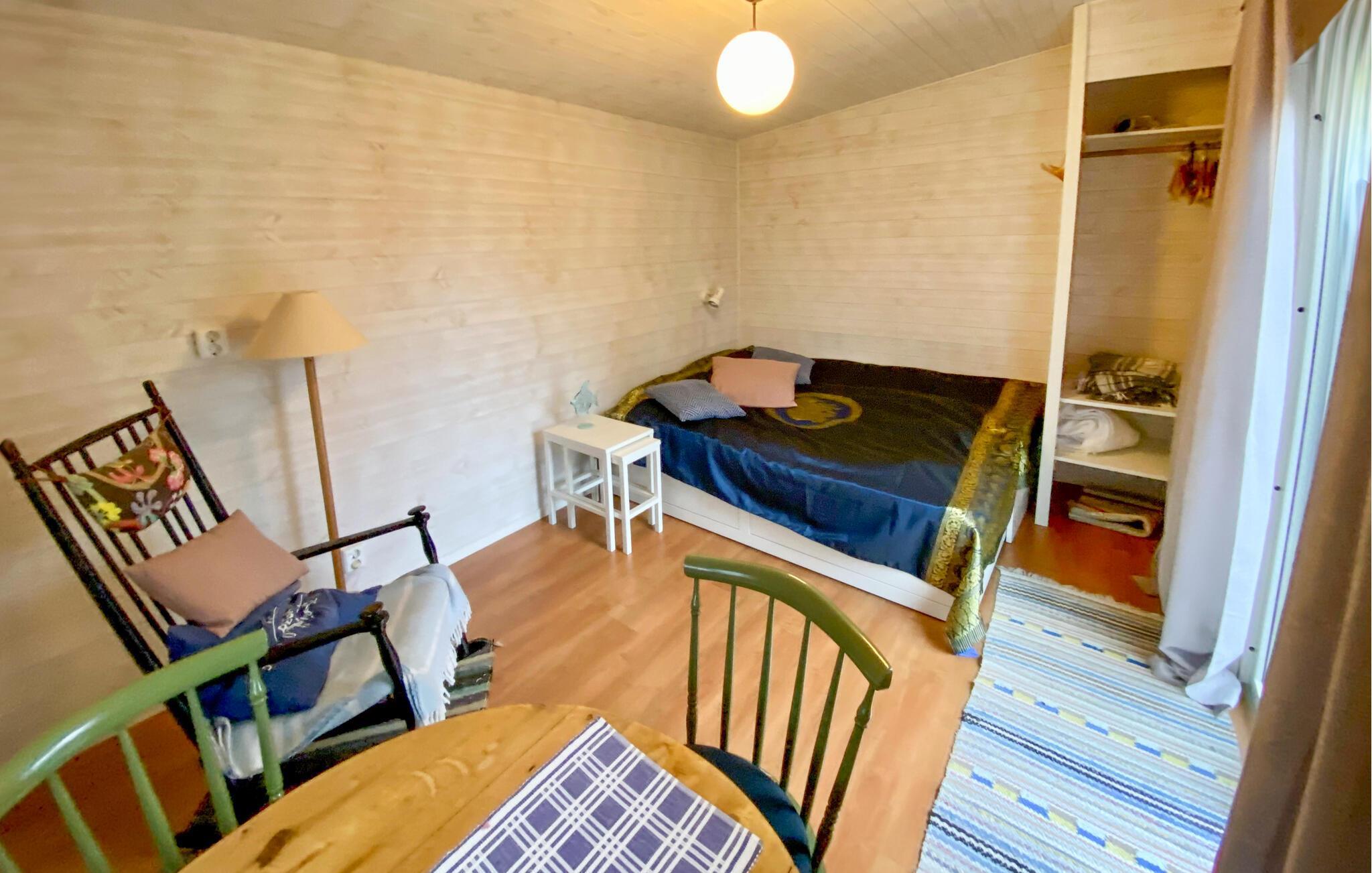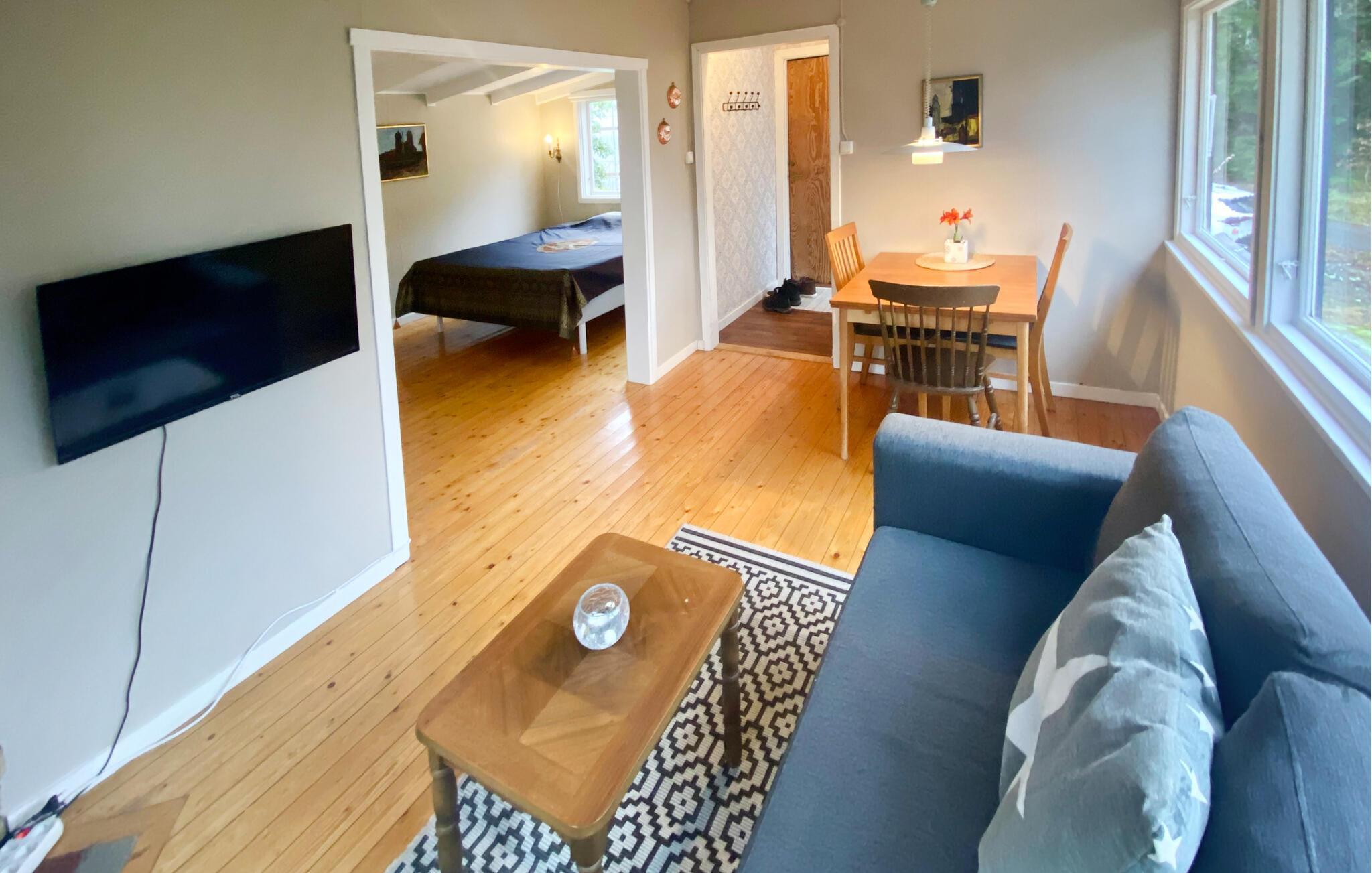 Erleben Sie diese gemütliche Hütte inmitten von Bäumen – Ihr Rückzugsort an der Westküste Schwedens.