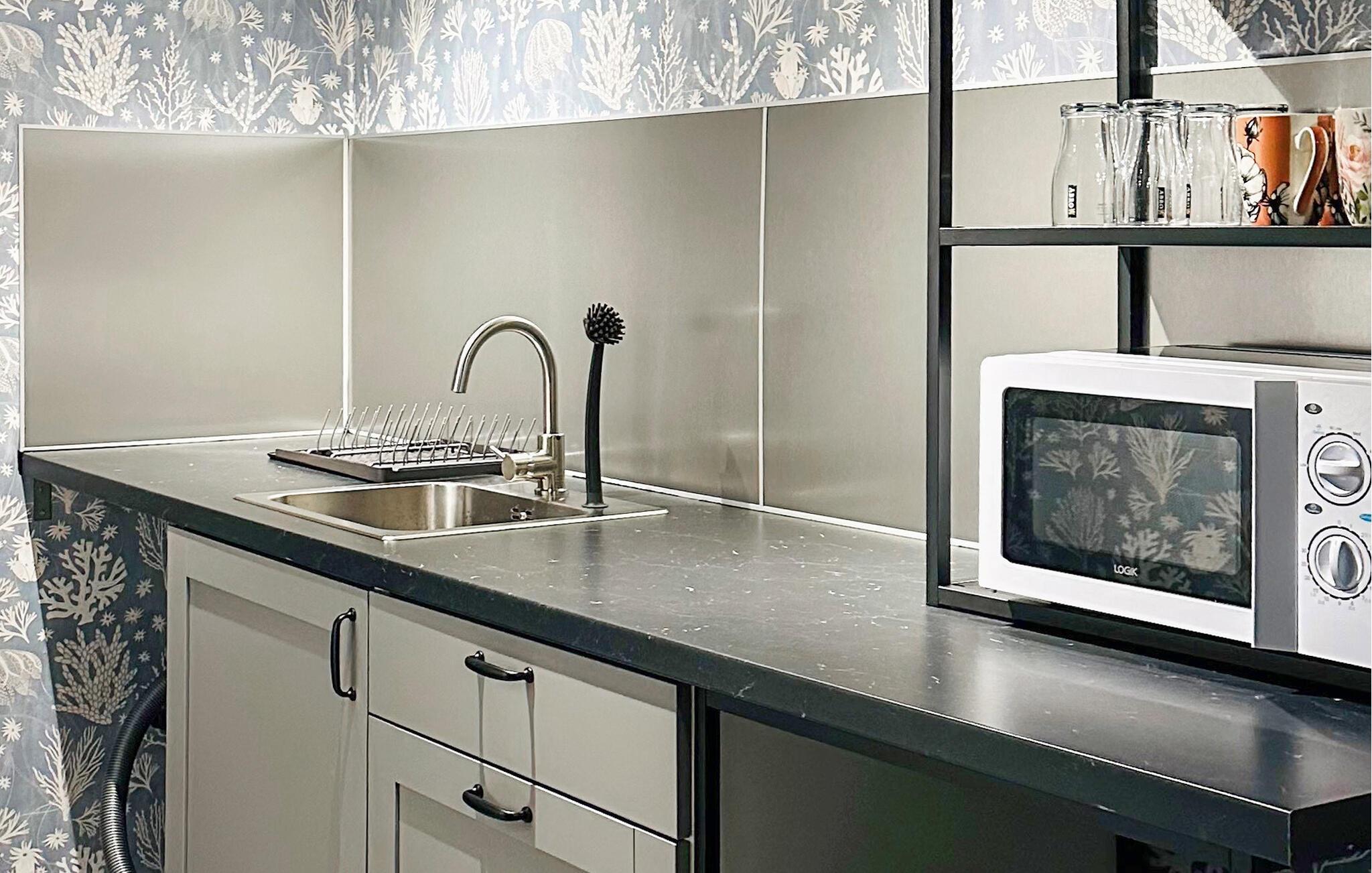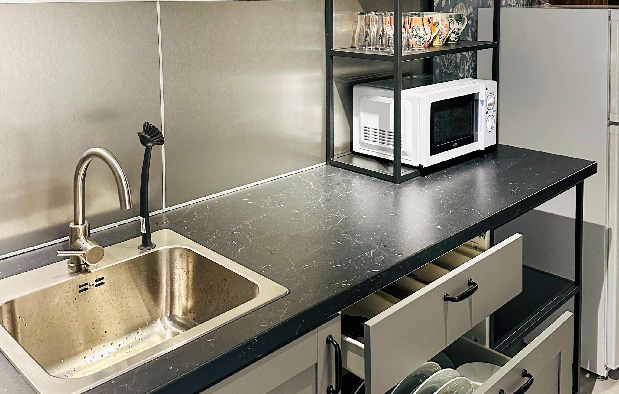 Gehen Sie hinaus in den kleinen Garten und setzen Sie sich an die bereitgestellten Gartenmöbel. Die ruhige Umgebung schafft eine angenehme Atmosphäre für Pausen im Freien. Nutzen Sie den Grill für einfache Mahlzeiten und verbringen Sie unbeschwerte Stunden im Grünen.
