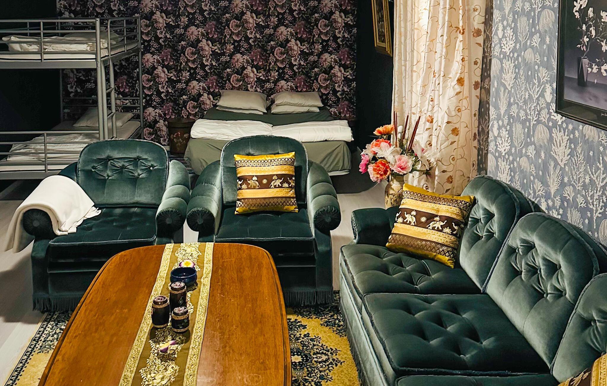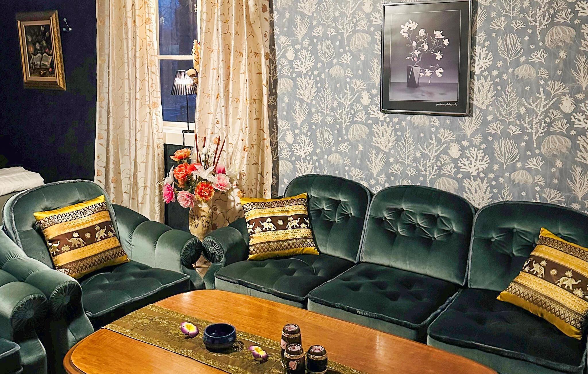 Freuen Sie sich auf die heimelige Einrichtung im Wohnbereich mit traditionellen Polstermöbeln. Die Sitzgruppe ist großzügig gestaltet und eignet sich gut für entspannte Abende. Nutzen Sie den angrenzenden Essbereich mit seinem klassischen Holztisch für gemeinsame Mahlzeiten oder ruhige Spielrunden. Bereiten Sie Ihre Speisen in der kompakten Küchenzeile zu. Die offene Raumgestaltung sorgt für ein angenehmes Miteinander.