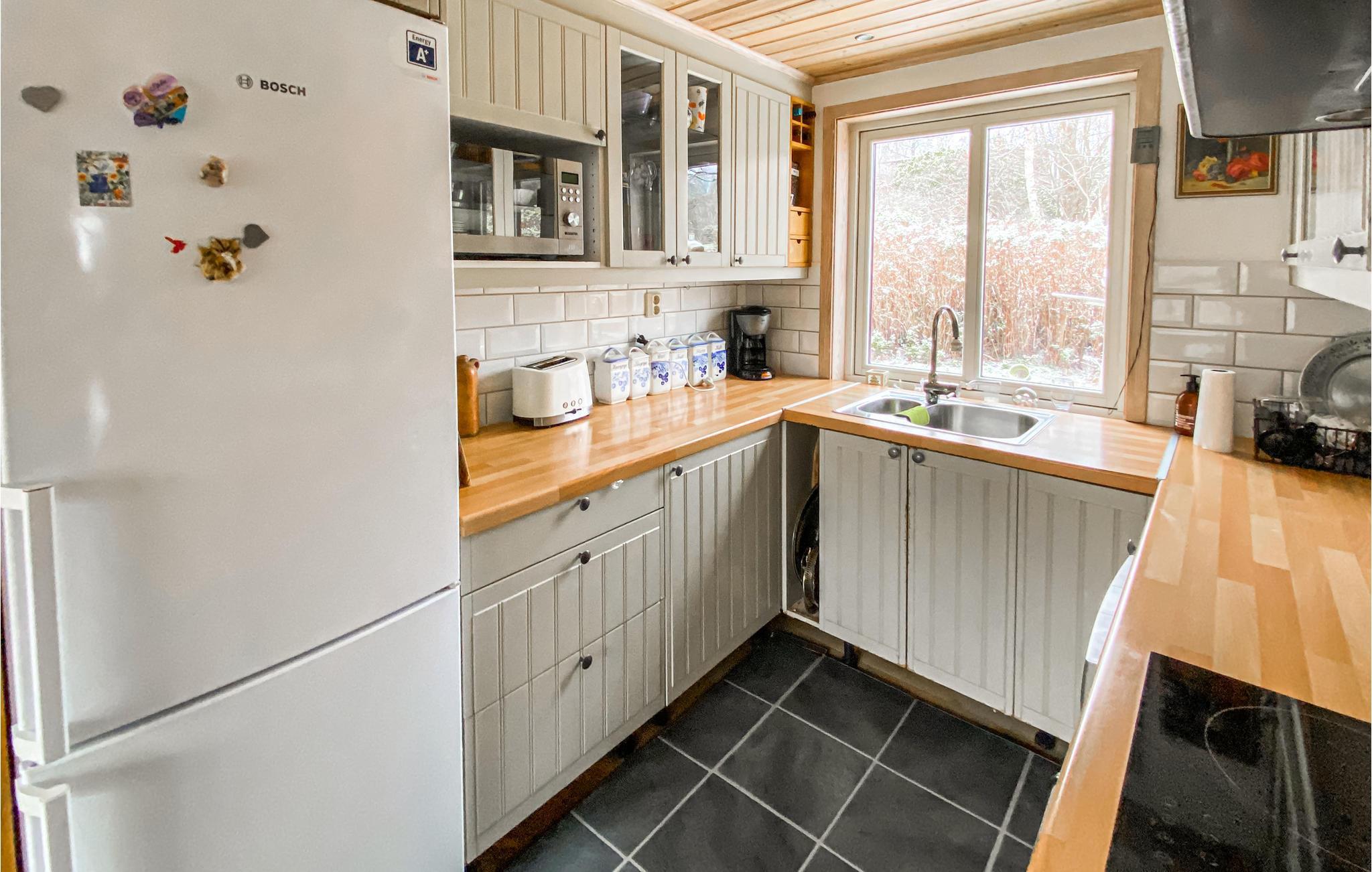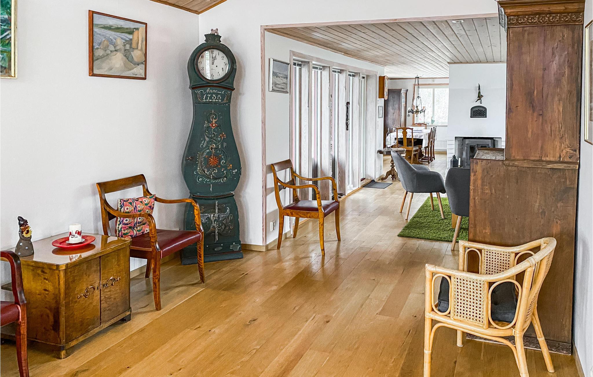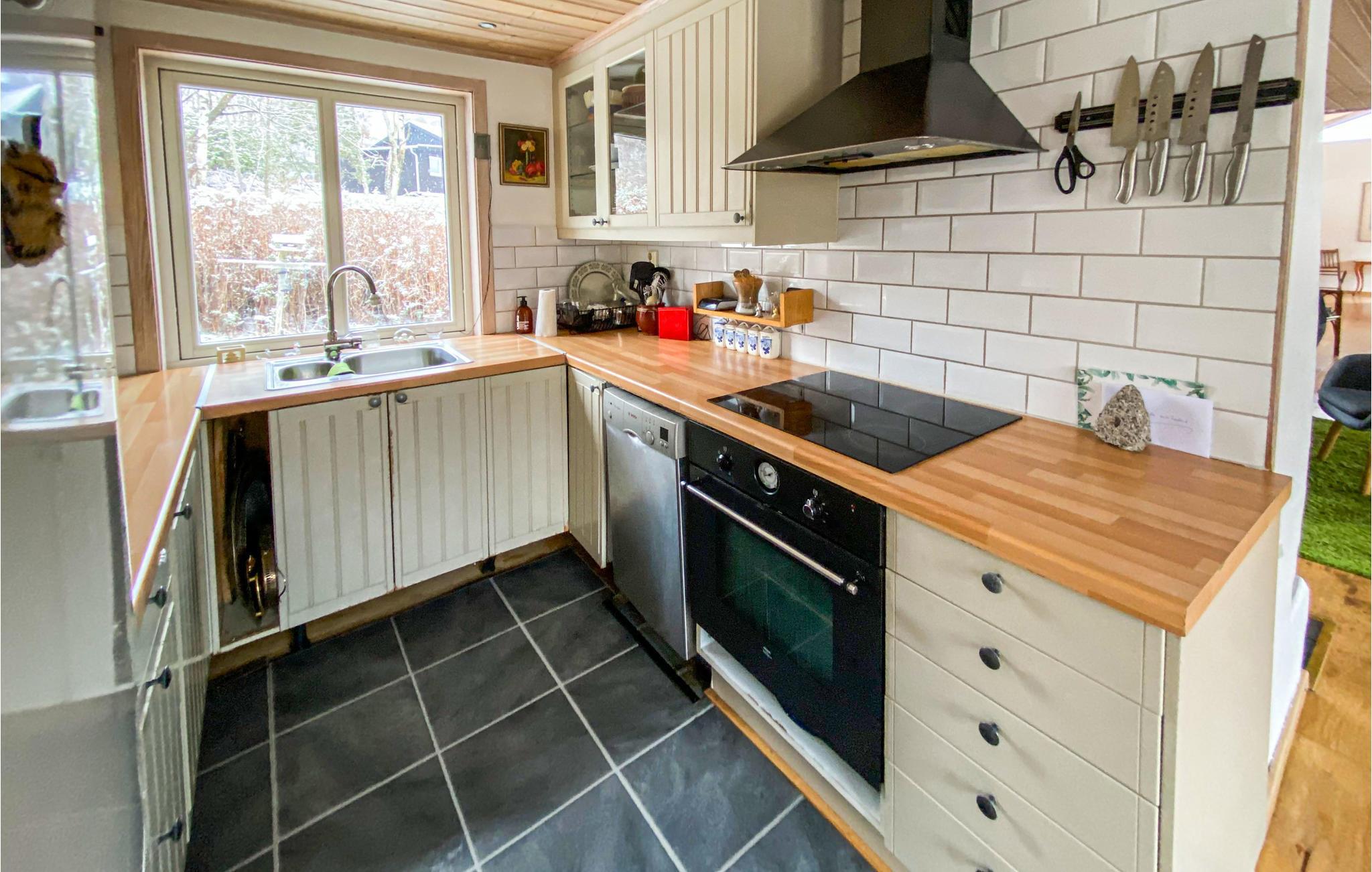 Das Haus empfängt Sie in schöner Natur auf Grimsholmen und bietet Ihnen beste Bedingungen für eine angenehme Auszeit mit Ihren Lieben. Mit seiner wohnlichen Einrichtung und großen Panoramafenstern, durch die Sie einen herrlichen Blick auf die Natur der Umgebung genießen, ist es der ideale Ort zum Abschalten und Entspannen. Machen Sie es sich abends auf dem Sofa so richtig gemütlich, feuern Sie im Kaminofen an, lassen Sie die Erlebnisse des Tages noch einmal Revue passieren und genießen Sie die gemeinsame Zeit.