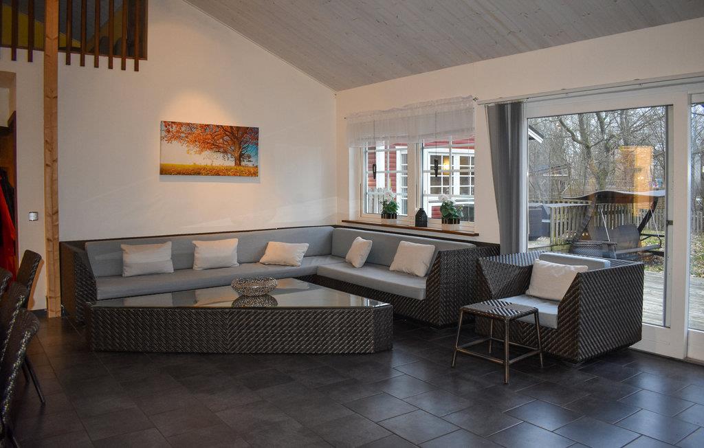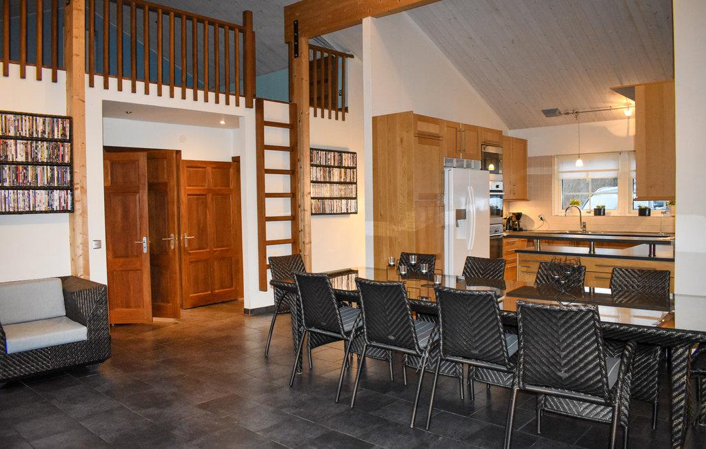 Verbringen Sie mit Ihrer Großfamilie oder einer befreundeten Familie einen entspannten sowie unterhaltsamen Urlaub in diesem großen Ferienhaus, das Ihnen im offenen und hohen Wohnraum den idealen Ort bietet, mit einer großen Gruppe zusammen zu kommen, zu kochen, zu essen, zu spielen oder einfach nur auf dem Sofa zu entspannen. Für Ihre Entspannung steht Ihnen eine Sauna zu Verfügung sowie für fröhliche Abende eine Bar im Nebengebäude. Genießen Sie in den Sommermonaten auch die große Terrasse. die Sie zum Sonnenbaden und Relaxen einlädt.