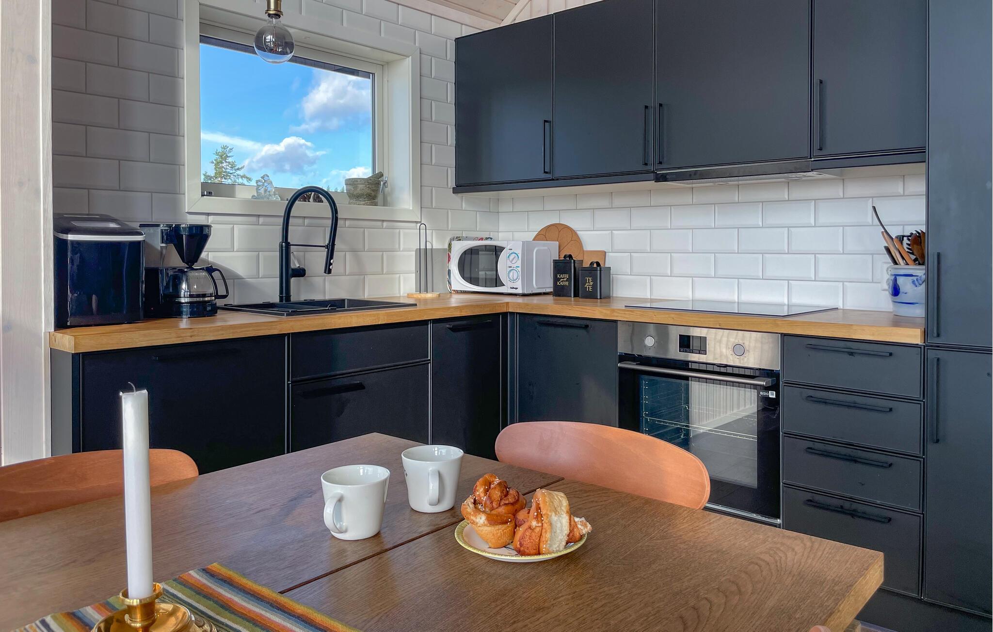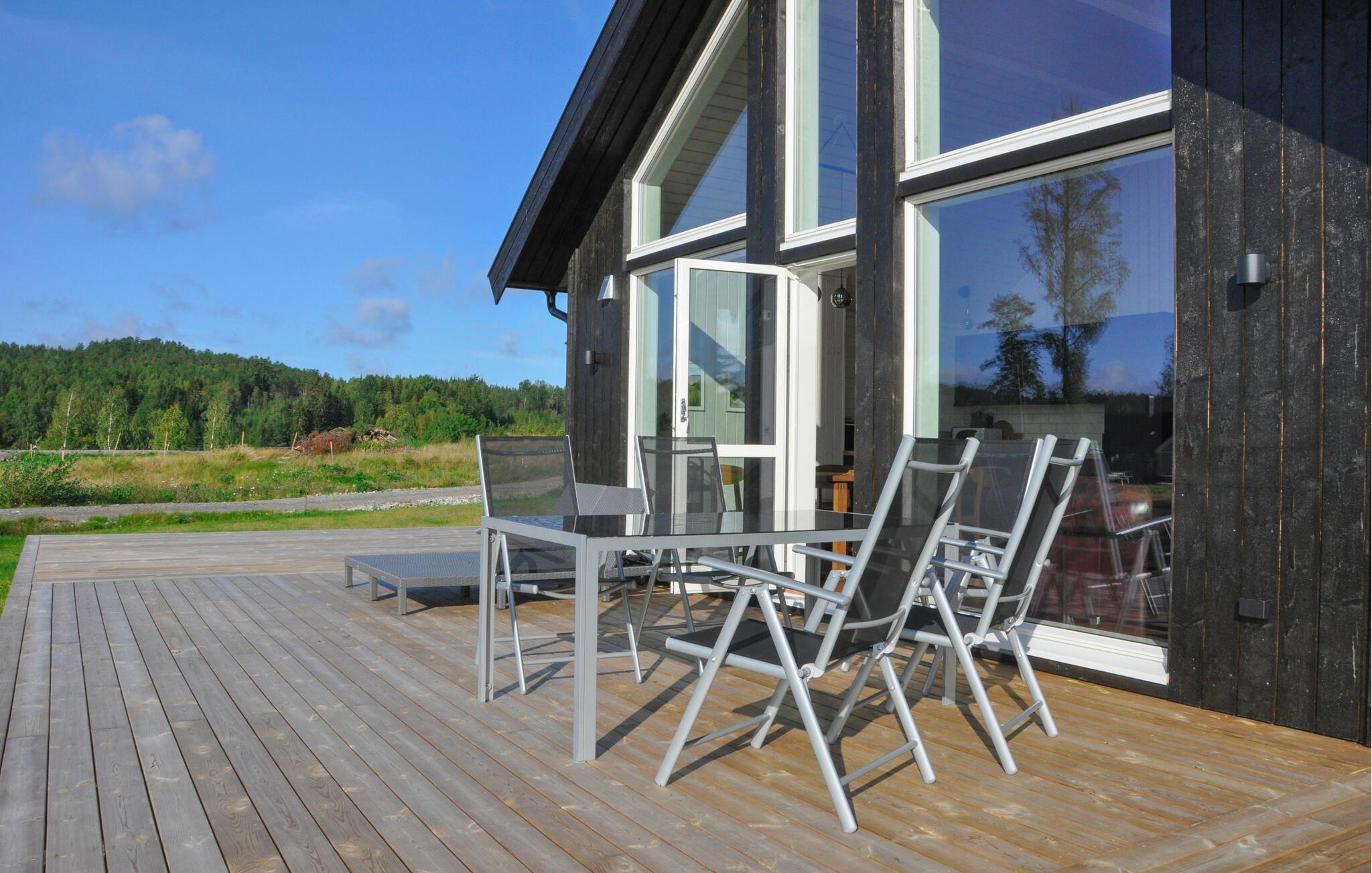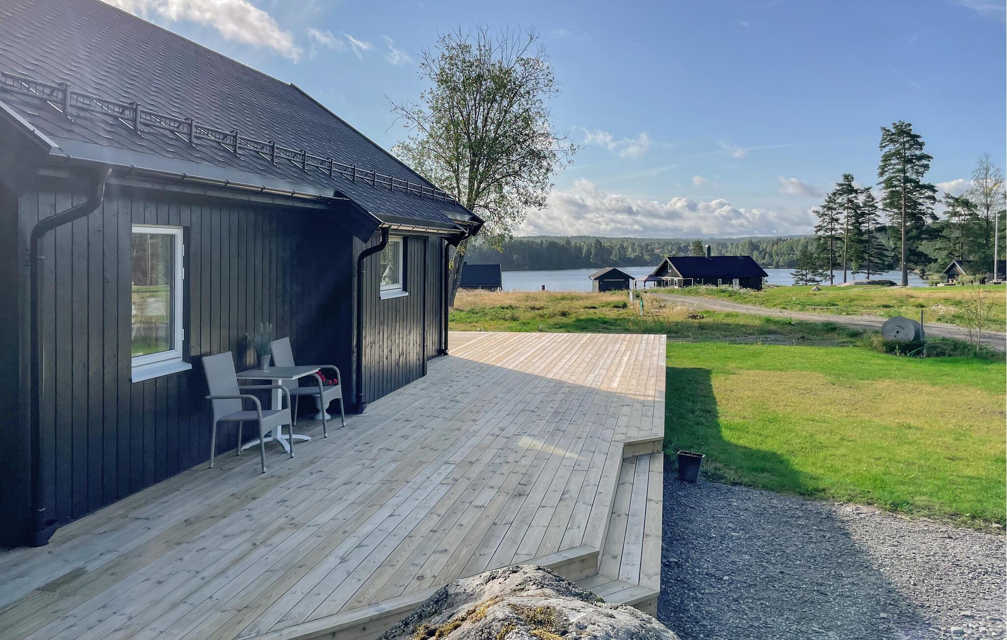 Ihr Ferienhaus befindet sich auf einer idyllischen Landzunge in der Nähe des Wassers. Genießen Sie die ruhige Umgebung und lassen Sie den Blick durch die großen Fensterfronten schweifen, die Ihnen eine beeindruckende Aussicht auf die umliegende Natur und den See bieten. Machen Sie es sich auf der großzügigen Terrasse gemütlich und genießen Sie die frische Luft bei einer Tasse Kaffee oder einem entspannten Abendessen im Freien. Entspannen Sie in dem geschmackvoll eingerichteten Wohnzimmer mit seinen eleganten Sofas und der gemütlichen Atmosphäre. Lassen Sie die Seele baumeln und genießen Sie die Ruhe, die dieses Haus bietet.