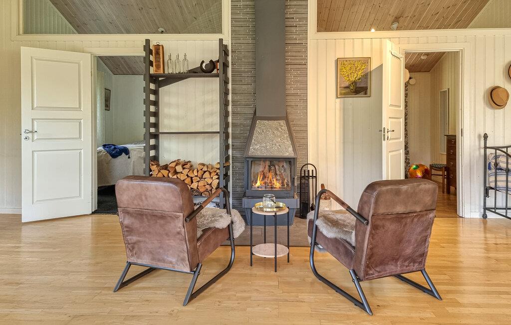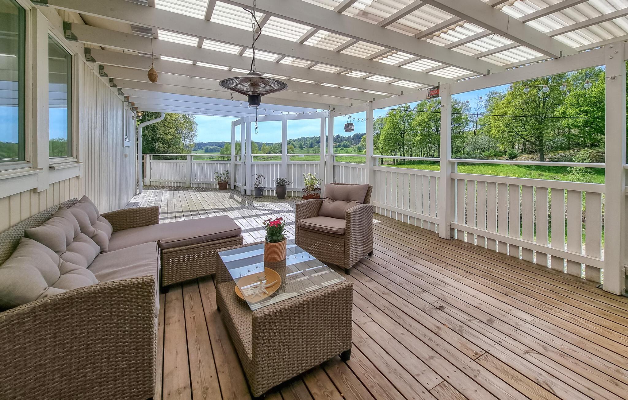 Auf der malerischen Insel Orust an der schwedischen Westküste erwartet Sie diese Oase der Ruhe und Erholung. Umgeben von üppigen Wäldern und weiten Wiesen verspricht es einen entspannten Aufenthalt. Nutzen Sie die geräumige Küche, um mit der ganzen Familie ein üppiges Frühstück sowie die übrigen Mahlzeiten des Tages zuzubereiten. Der gemütliche Holzesstisch ist der ideale Ort für die gemeinsamen Mahlzeiten und um die Tagespläne zu besprechen. Auch auf der überdachten Terrasse ist viel Platz zum Genießen der frischen Luft und der herrlichen Aussicht sowie für eine Tasse Kaffee am Nachmittag.