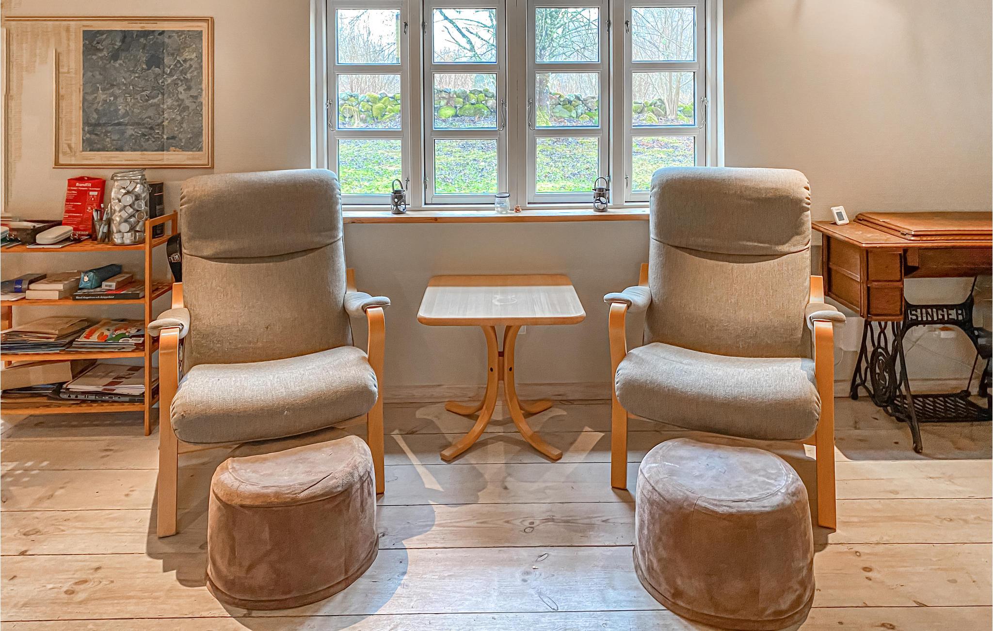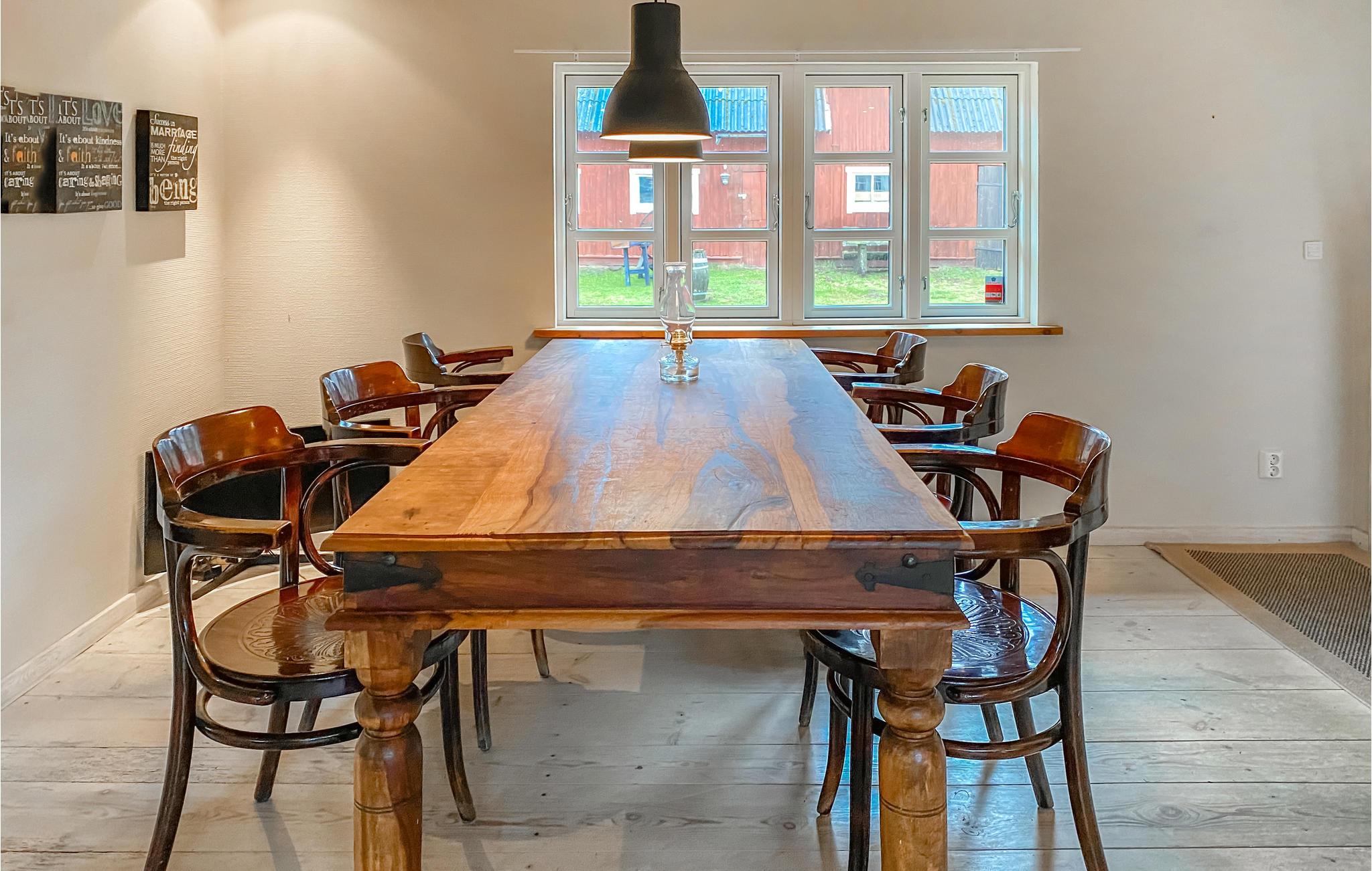 Hier sind Sie von schönen, hochragenden Bäumen umgeben. Dieses alte Haus in wunderschöner Naturumgebung bietet einen hohen Wohnkomfort. Modern eingerichtet und mit warmer Atmosphäre sowie historischem Flair. Treten Sie in den großen Eckwohnraum mit Heizofen ein. Hier finden Sie ein riesiges Ecksofa und einen großen Fernseher für die ganze Verwandtschaft. Machen Sie es sich hier gemütlich und unterhalten Sie sich im Heimkino. Schöne Sessel mit Hockern für abendliches Plaudern. Angeln Sie im schönen See, der nur 500 Meter vom Haus entfernt ist. Genießen Sie abends im Freien gegrillten Fisch.