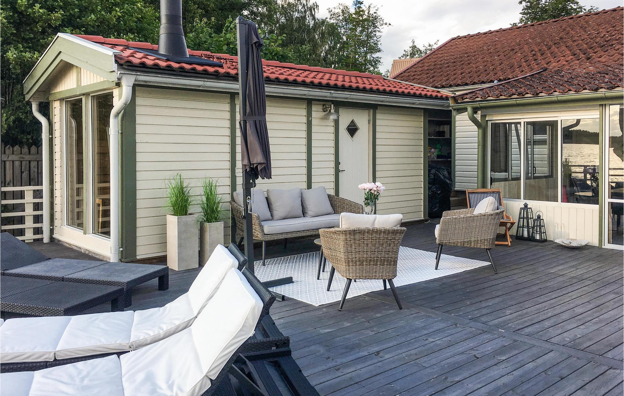 Freuen Sie sich auf dieses komfortable und geräumige Ferienhaus direkt am Hjältensee.