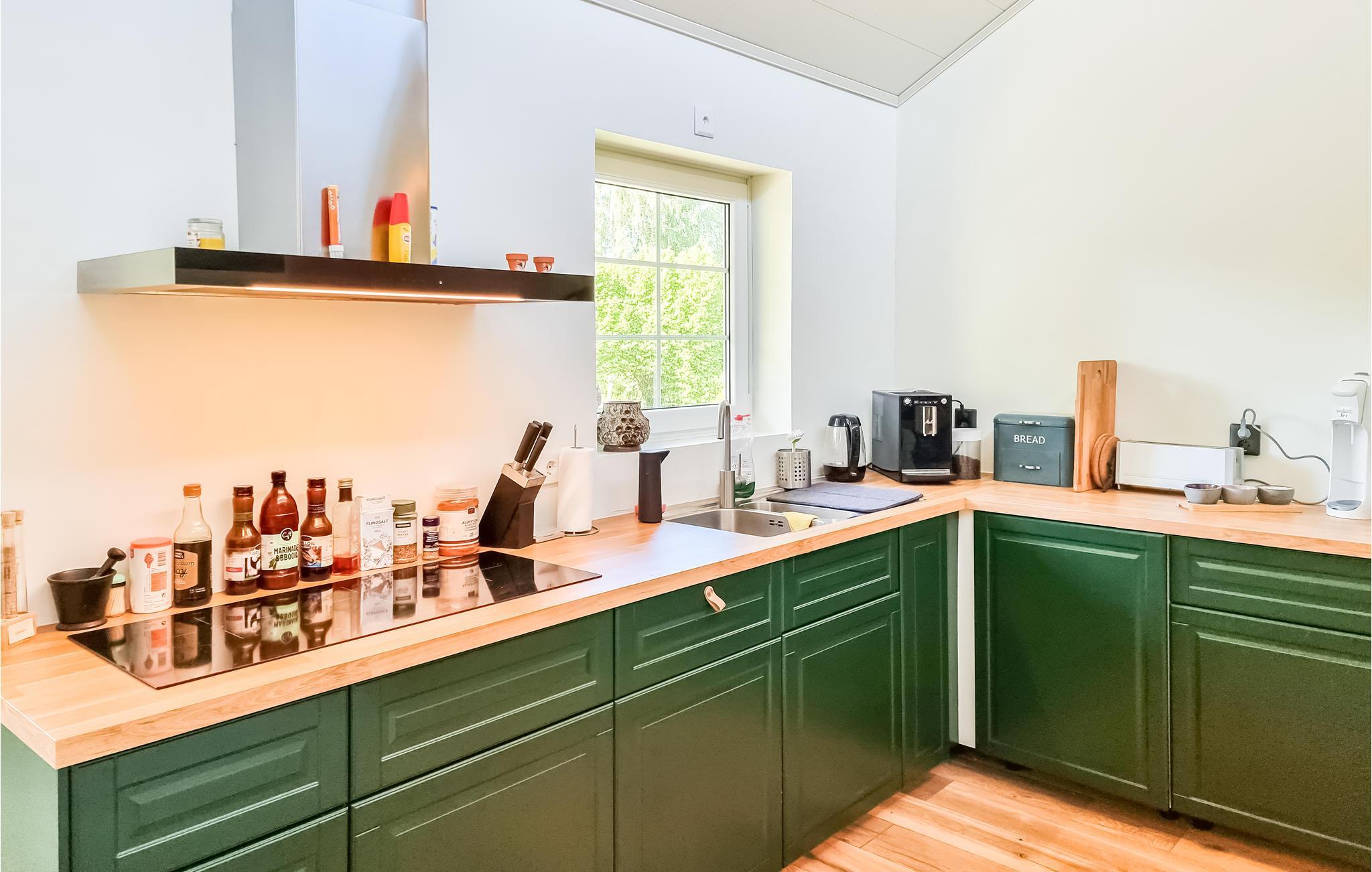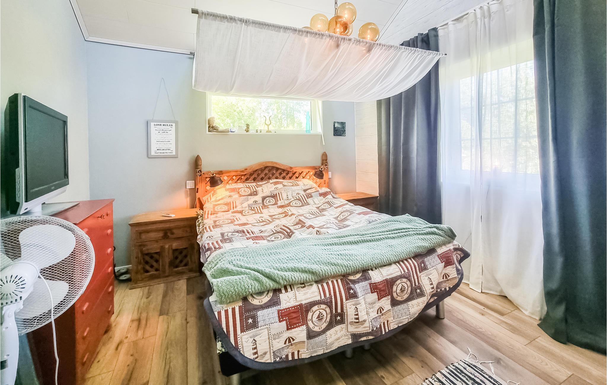 Sind Sie ein eifriger Angler und vielleicht auch ein echter Naturliebhaber mit einer Vorliebe für Kanu- und Kajakfahren? Dann passt dieses Haus mit eigenem Ruderboot wunderbar zu Ihrem nächsten Urlaub! Hier wohnen Sie dicht am Wald, in Gehweite zum glitzernden Angelsee, Skagern. Der Wohnbereich, die gemütliche Beleuchtung, die geschmackvolle Einrichtung und die warme Farbpalette tragen zu einer Wohlfühlatmosphäre bei. Machen Sie zusammen in der grünen Küche die Lieblingsgerichte der Familie. Vielleicht veranstalten Sie sogar einen Kochwettbewerb? Genießen Sie es, nicht früh aufstehen zu müssen, und verbringen Sie lange Grillabende auf der überdachten Terrasse. Die offene Terrasse lädt zu einem sonnigen Spiele-Nachmittag ein und im Garten können alle fröhlich spielen. Vom Haus gibt es nur einen kurzen Spaziergang zum See, wo Sie herrlich angeln können.