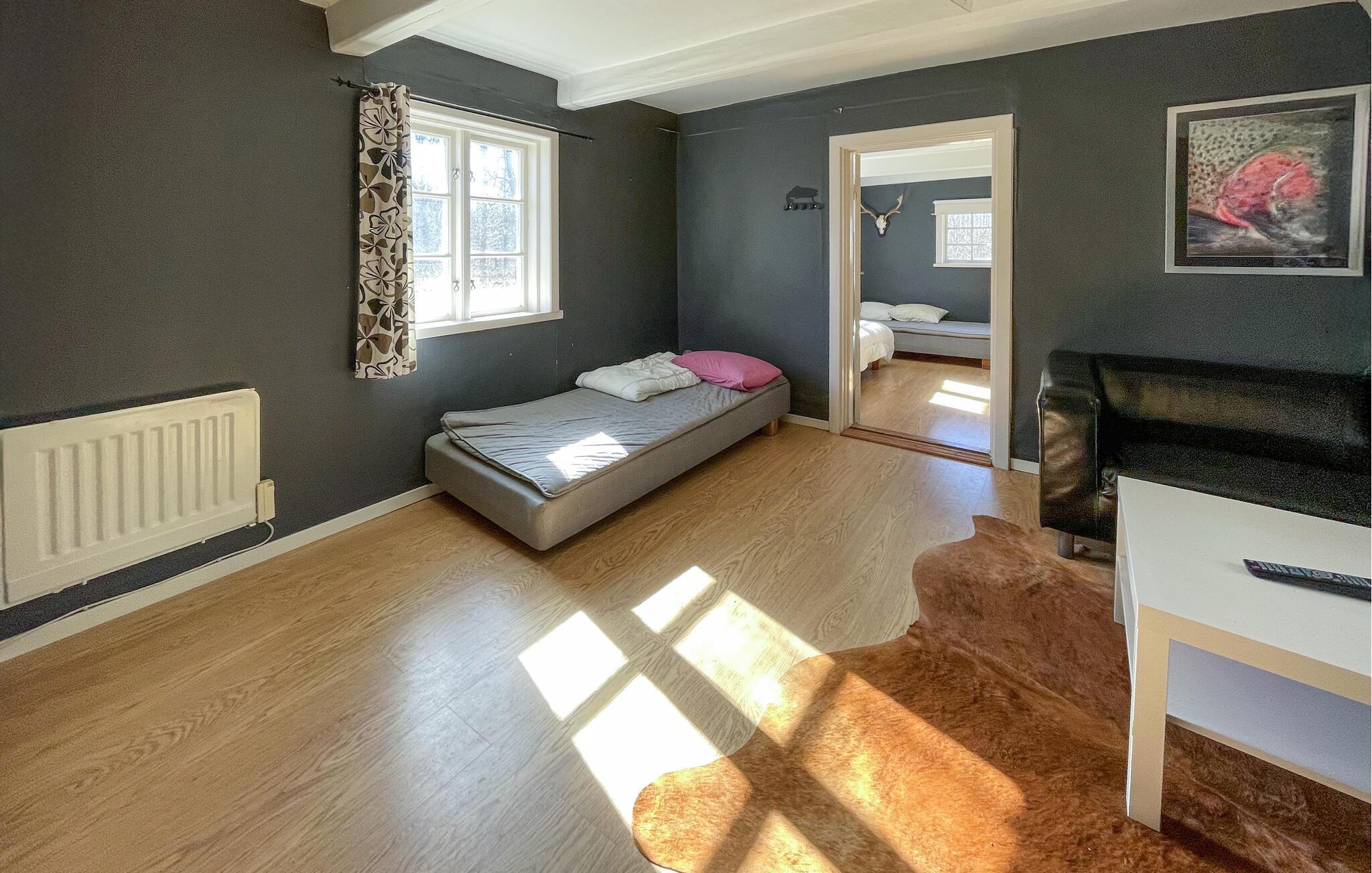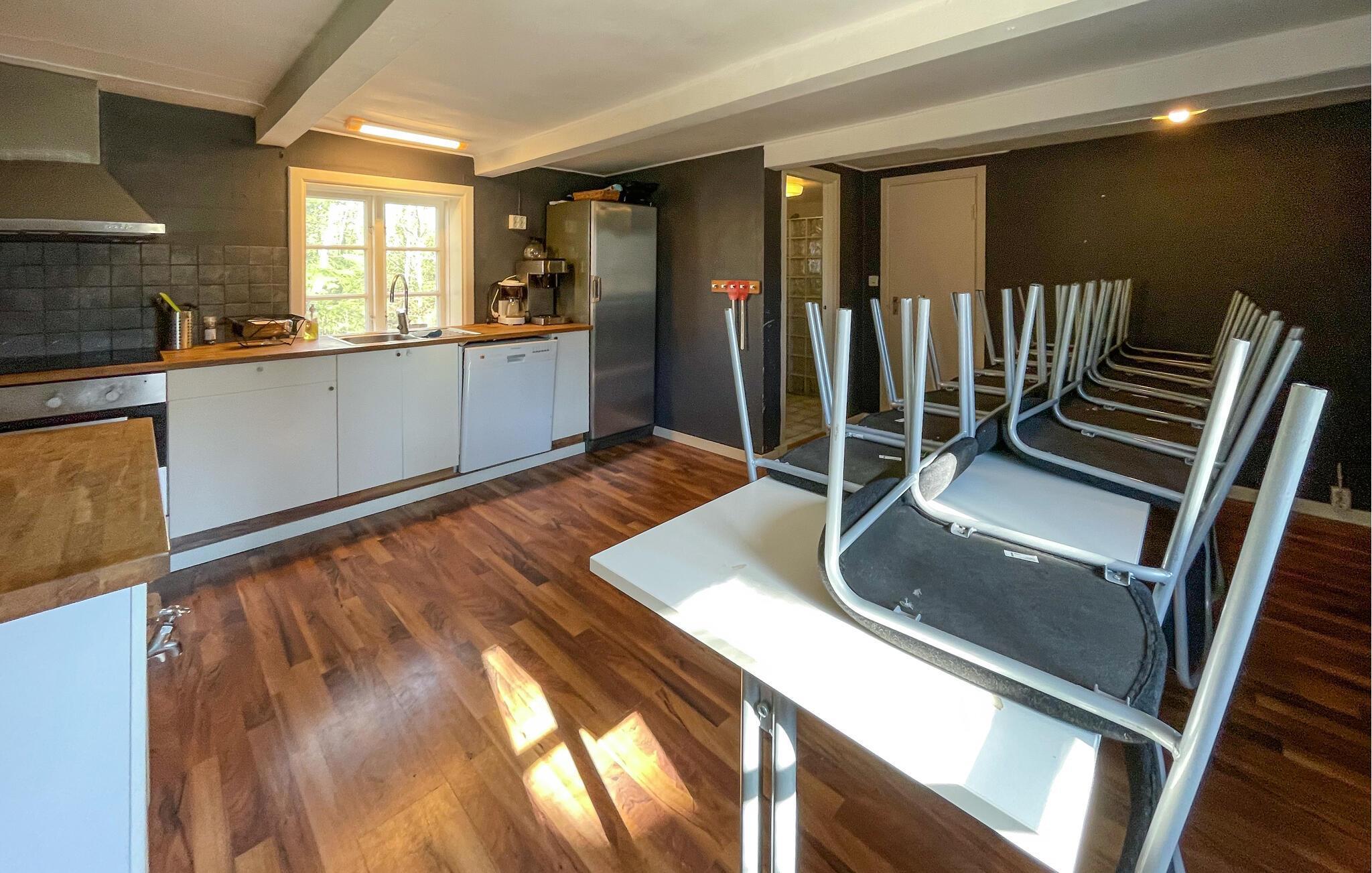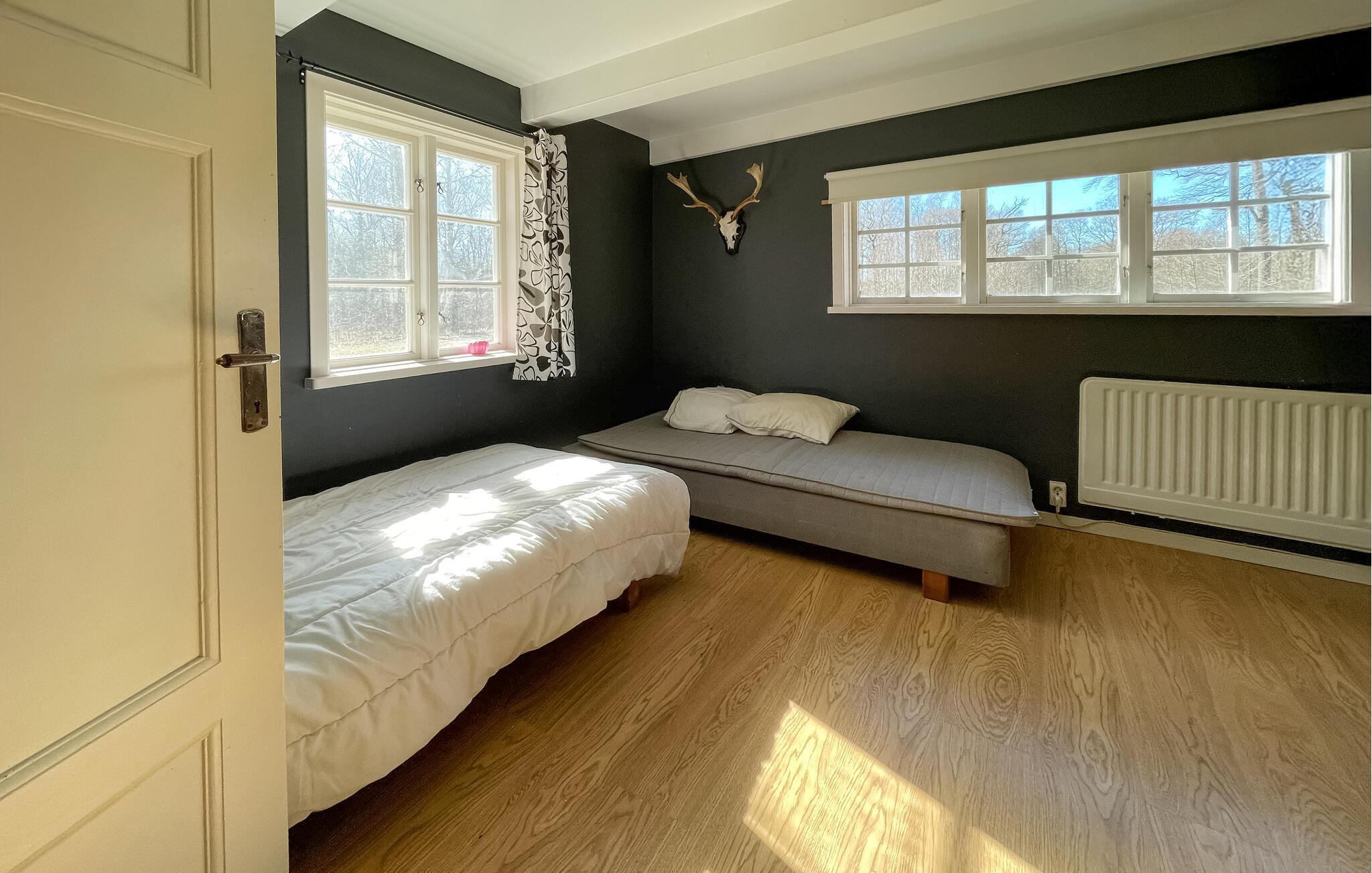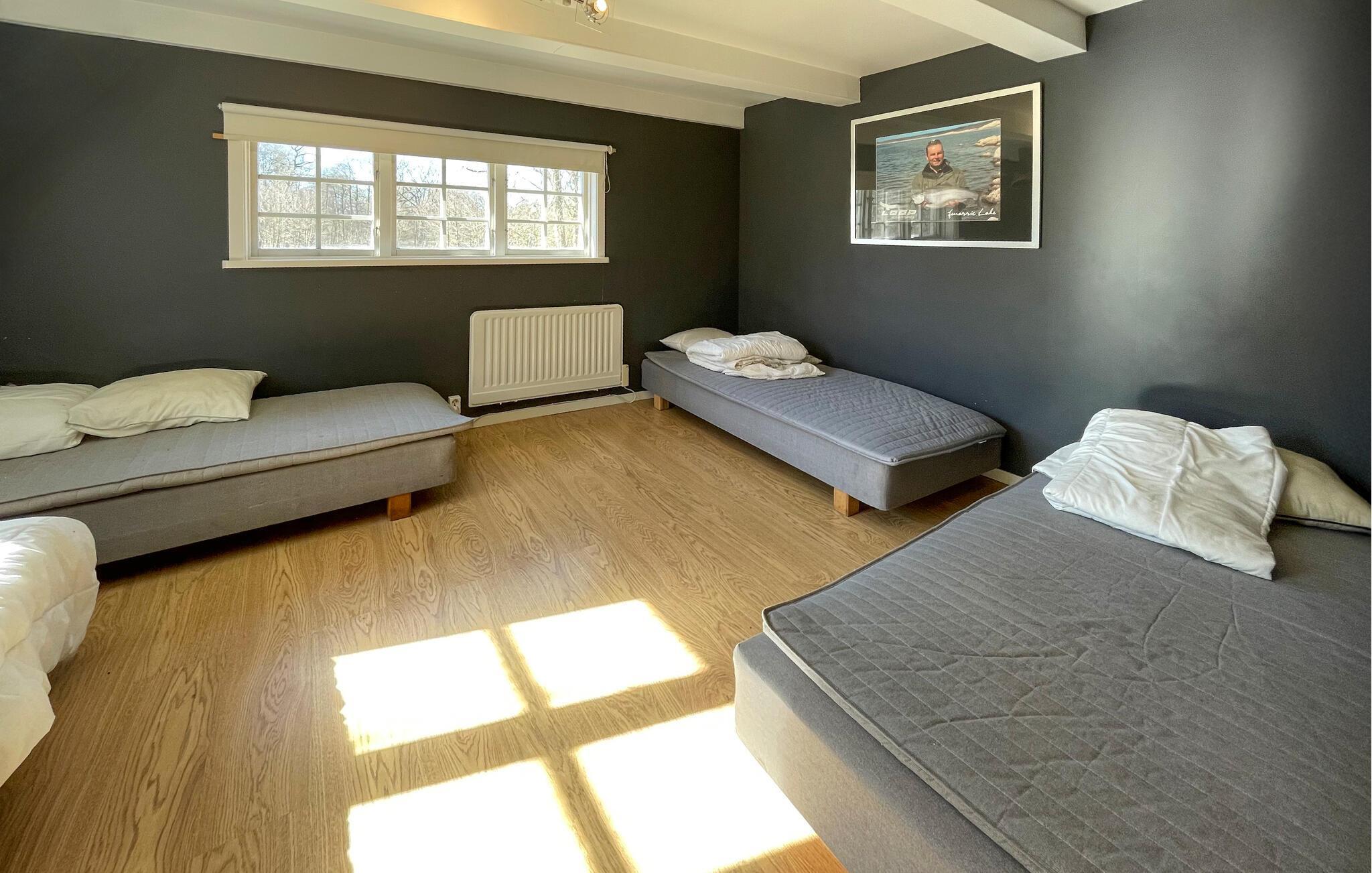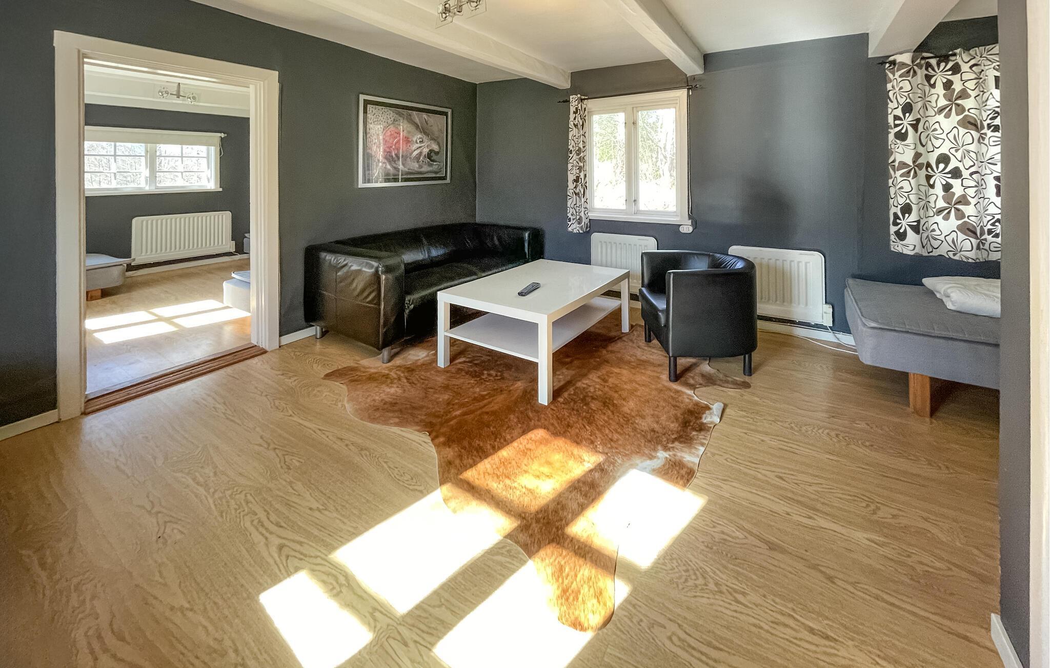 Erleben Sie einen entspannten Urlaub in diesem charmanten Haus. Umgeben von Wiesen, alten Bäumen und der weiten Landschaft genießen Sie hier eine Auszeit fernab vom Trubel. Treten Sie ein in den freundlich gestalteten Wohnbereich. Entspannen Sie auf dem Sofa oder in einem der bequemen Sessel, während durch die Fenster das Tageslicht fällt. Der Raum ist offen gehalten und bietet auch Schlafmöglichkeiten, ohne an Gemütlichkeit zu verlieren. Kochen Sie gemeinsam in der großzügigen Essküche und nehmen Sie Ihre Mahlzeiten am großen Tisch ein, an dem alle Platz finden.