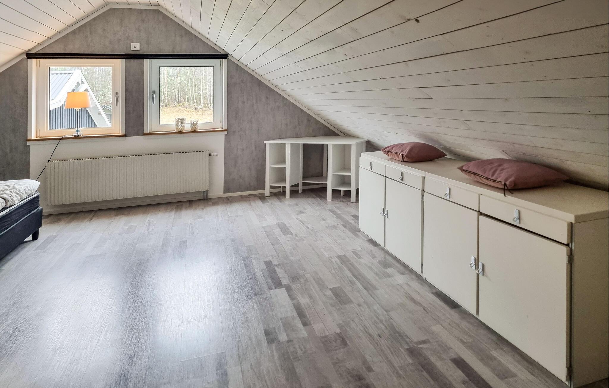 Diese gemütliche Ferienwohnung auf zwei Ebenen ist der perfekte Rückzugsort für ein Paar, das die schwedische Natur in vollen Zügen genießen möchte. Die warme und einladende Einrichtung schafft eine entspannte Atmosphäre, in der Sie sich sofort wohlfühlen. Hier finden Sie alles, was Sie für einen erholsamen Urlaub brauchen. Machen Sie es sich im Wohnbereich gemütlich oder genießen Sie die frische Luft auf der großen Terrasse. Lauschen Sie den Geräuschen der Natur und beobachten Sie die Wildtiere, die sich in der ruhigen Umgebung zeigen – ein wahrer Ort der Entschleunigung.