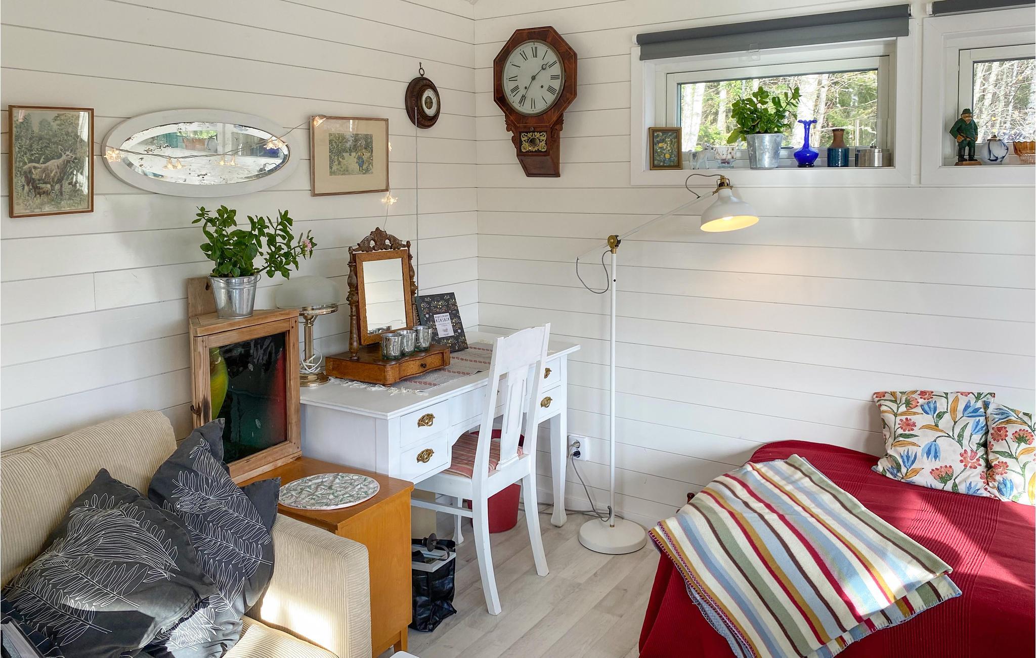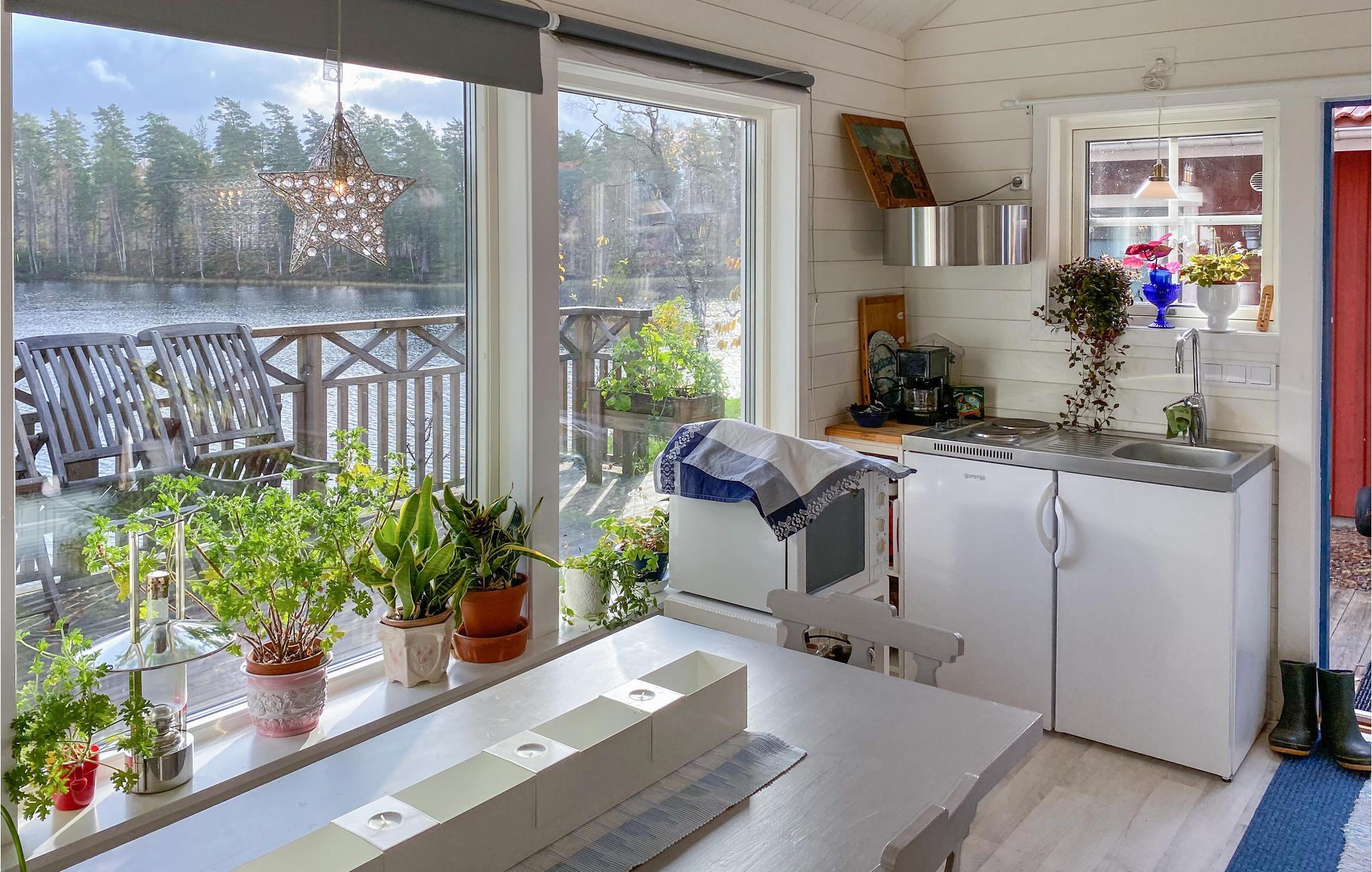 Westlich von Jönköping begrüßt Sie mitten im Wald dieses ruhige, kleine Ferienhaus. Das rot und weißgestrichene Holzhaus bietet ein helles und liebevoll dekoriertes Interieur, das einen persönlichen und gemütlichen Eindruck macht. Freuen Sie sich jeden Morgen beim Aufstehen, den Blick auf den See und den Wald zu genießen. Bei schönem Wetter können Sie einen frisch gebrühten Kaffe mit auf die Terrasse nehmen und den Tag beim Sonnenschein und die Geräusche der Natur anfangen lassen.