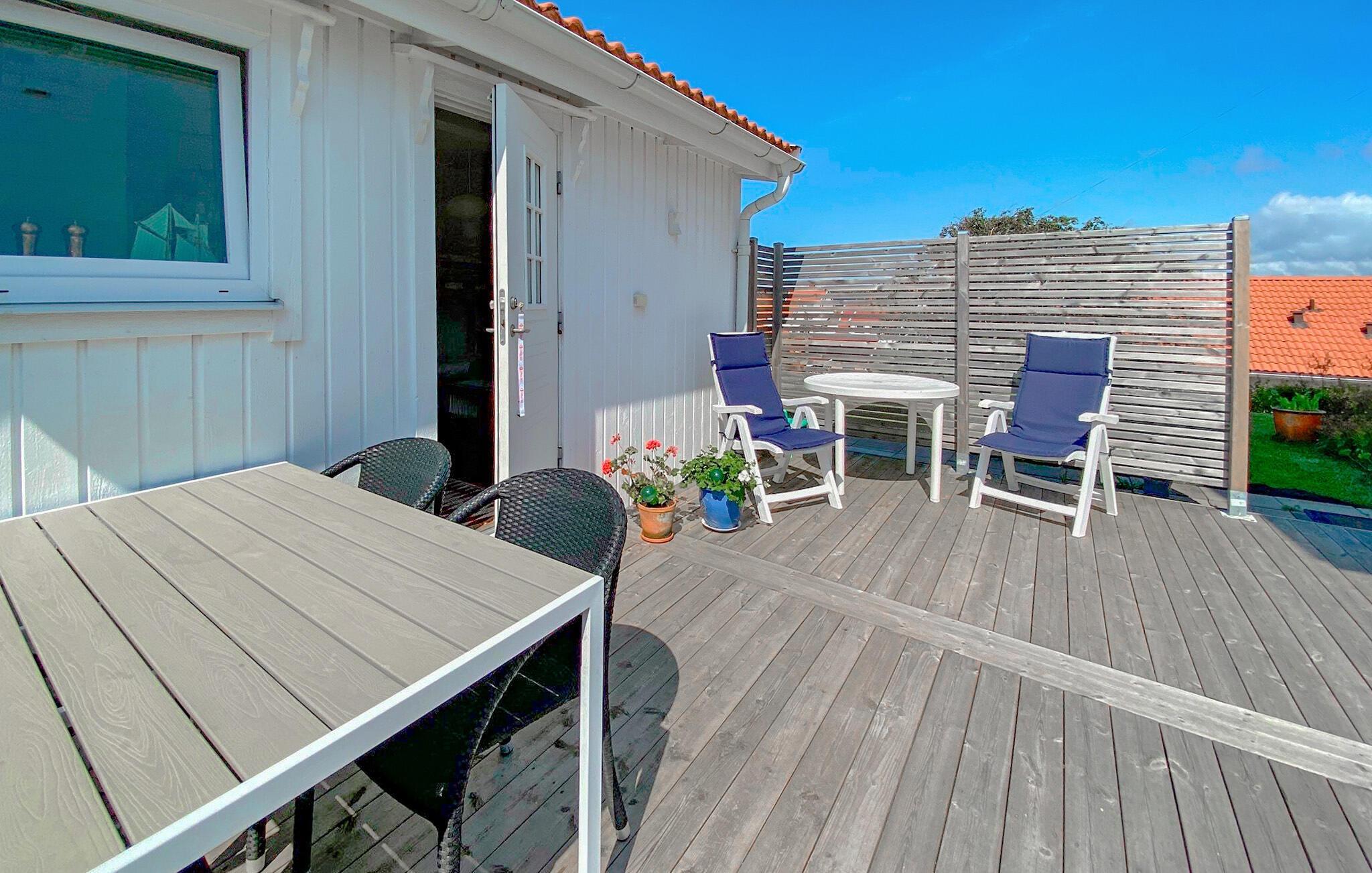 Schlendern Sie zum Strand und erfrischen Sie sich in den Wellen. Erkunden Sie die malerische Schärenküste bei einer Bootstour oder wandern Sie entlang der felsigen Ufer und genießen Sie atemberaubende Ausblicke auf das Meer. Besuchen Sie die nahe gelegene Insel Smögen mit ihren farbenfrohen Fischerhäusern, schlendern Sie entlang der beliebten Promenade und gönnen Sie sich einen Kaffee oder ein Eis mit Blick aufs Wasser. Für Aktivurlauber bieten sich Möglichkeiten zum Kajakfahren, Angeln oder Radfahren durch die unberührte Natur.