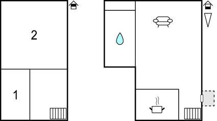 Badezimmer (nr. 1) - WC. Warmes und kaltes Wasser. Dusche