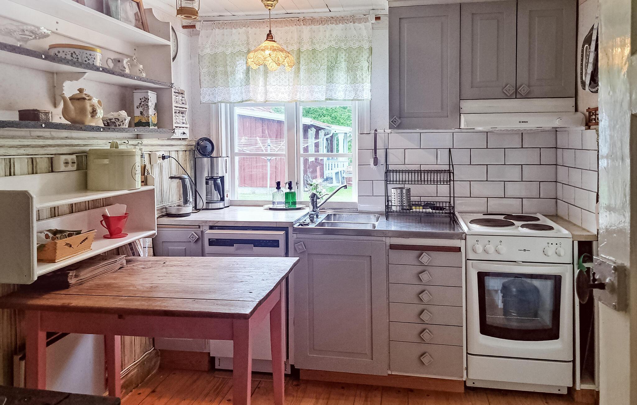 Ihr gemütliches Ferienhaus bietet Ihnen eine stimmungsvolle Kulisse für eine erholsame Auszeit in ruhiger, naturnaher Lage. Lassen Sie sich vom traditionellen Stil des liebevoll gestalteten Hauses empfangen und genießen Sie die familiäre Atmosphäre. Entspannen Sie im wohnlich eingerichteten Esszimmer mit klassischen Möbeln, Schaukelstuhl und Holzofen. Die sanften Farbtöne, Holzfußböden und floralen Tapeten schaffen ein harmonisches Ambiente. Kochen Sie in der Küche mit modernem Komfort und nostalgischem Herd. Genießen Sie Ihre Mahlzeiten am rustikalen Esstisch mit Blick ins Grüne. Die obere Etage eignet sich wunderbar zum Zurückziehen und Träumen.