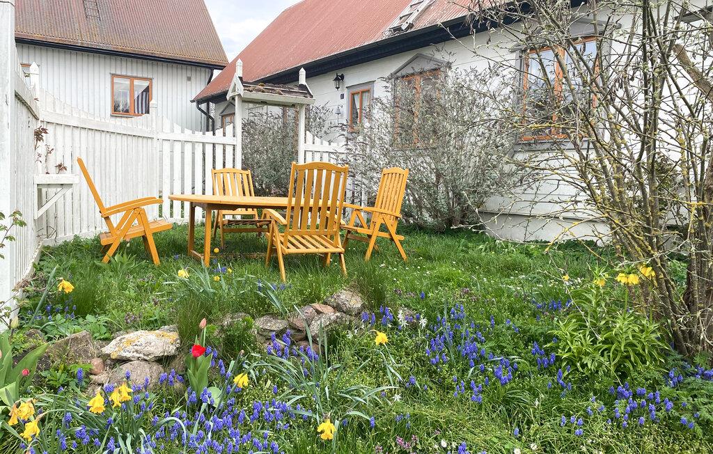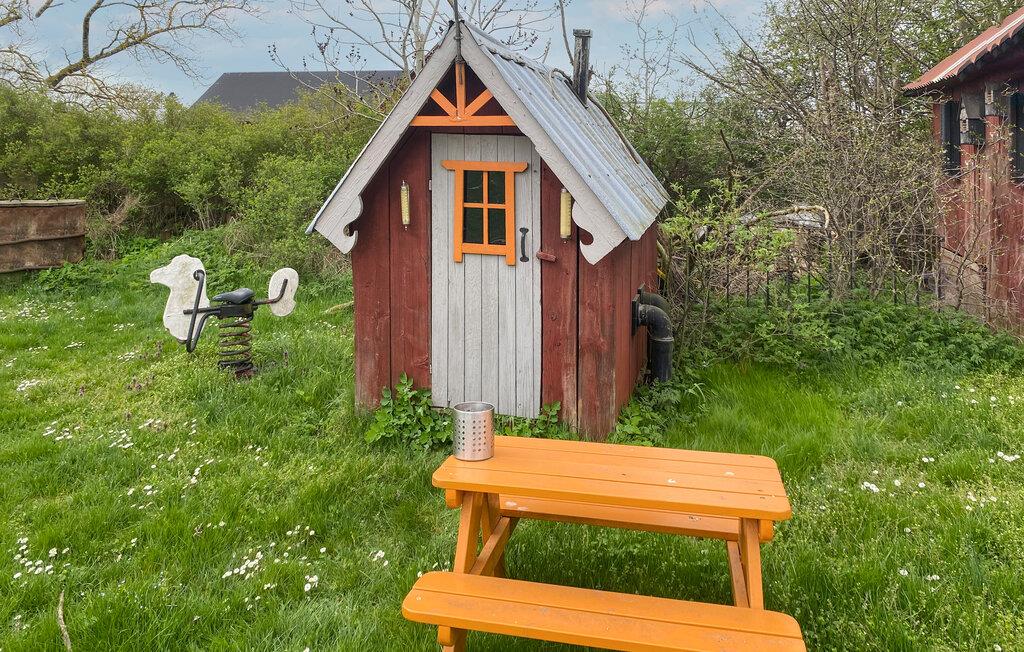Draußen erwartet Sie ein romantisches Gartengrundstück mit einem Spielhaus für die jüngeren Gäste. Servieren Sie sich an sonnigen Tagen Ihre Mahlzeiten am Picknicktisch oder vertiefen Sie sich im Schatten in eine spannende Lektüre.