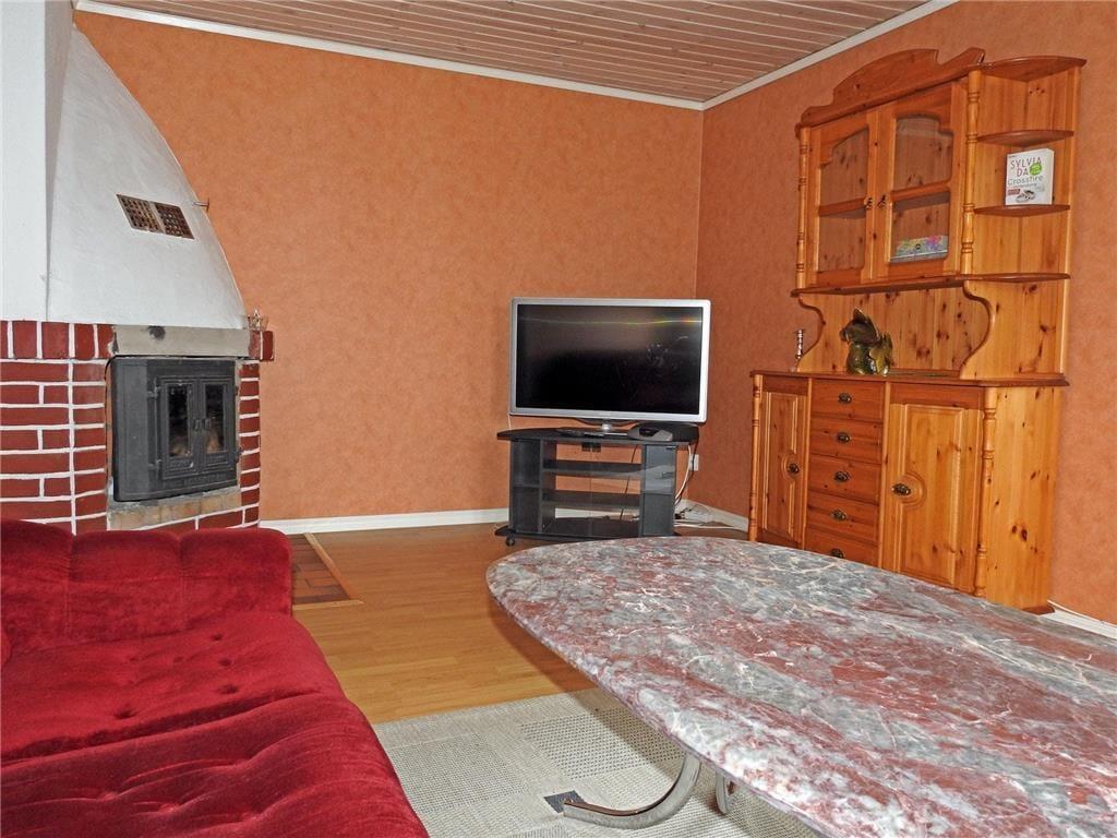 Das 2000 erbaute, eineinhalbgeschossige Ferienhaus verfügt im Erdgeschoß auf einer Wohnfläche von etwa 90 m² über ein geräumiges Wohnzimmer sowie zwei Schlafzimmer, eine Wohnküche, Duschbad und einen Hauswirtschaftsraum. Das Obergeschoß ist bisher nicht abschließend ausgebaut und steht den Gästen nicht zur Verfügung. An zentraler Stelle im Hausflur wurde zwischen den Zimmern ein Kaminofen platziert, mit dem der gesamte Wohnbereich beheizt werden kann. Das Wohnzimmer ist mit einem Ecksofa, SAT-TV (deutsche Programme) sowie einem weiteren Kaminofen ausgestattet. Eines der Schlafzimmer verfügt über einen großen Kleiderschrank und ein Doppelbett, das andere über zwei Einzelbetten. In der modernen Wohnküche befinden sich ein großer Esstisch sowie ein Elektroherd mit Glaskeramikkochfeld, separatem Backofen und Warmhaltefach, eine große Kühl-Gefrierkombination, Geschirrspüler, Kaffeemaschine, Toaster sowie Brotbackautomat. Das Duschbad ist mit WC und Handwaschbecken ausgestattet. Im separaten Hauswirtschaftsraum gibt es außerdem eine Waschmaschine. Bei Bedarf kann den Gästen ein Kinderreisebett sowie ein Hochstuhl zur Verfügung gestellt werden. Auf der über Eck am Haus angebauten großen Veranda stehen den Gästen Gartenmöbel mit Sonnenschirm und ein Holzkohlegrill zur Verfügung.
