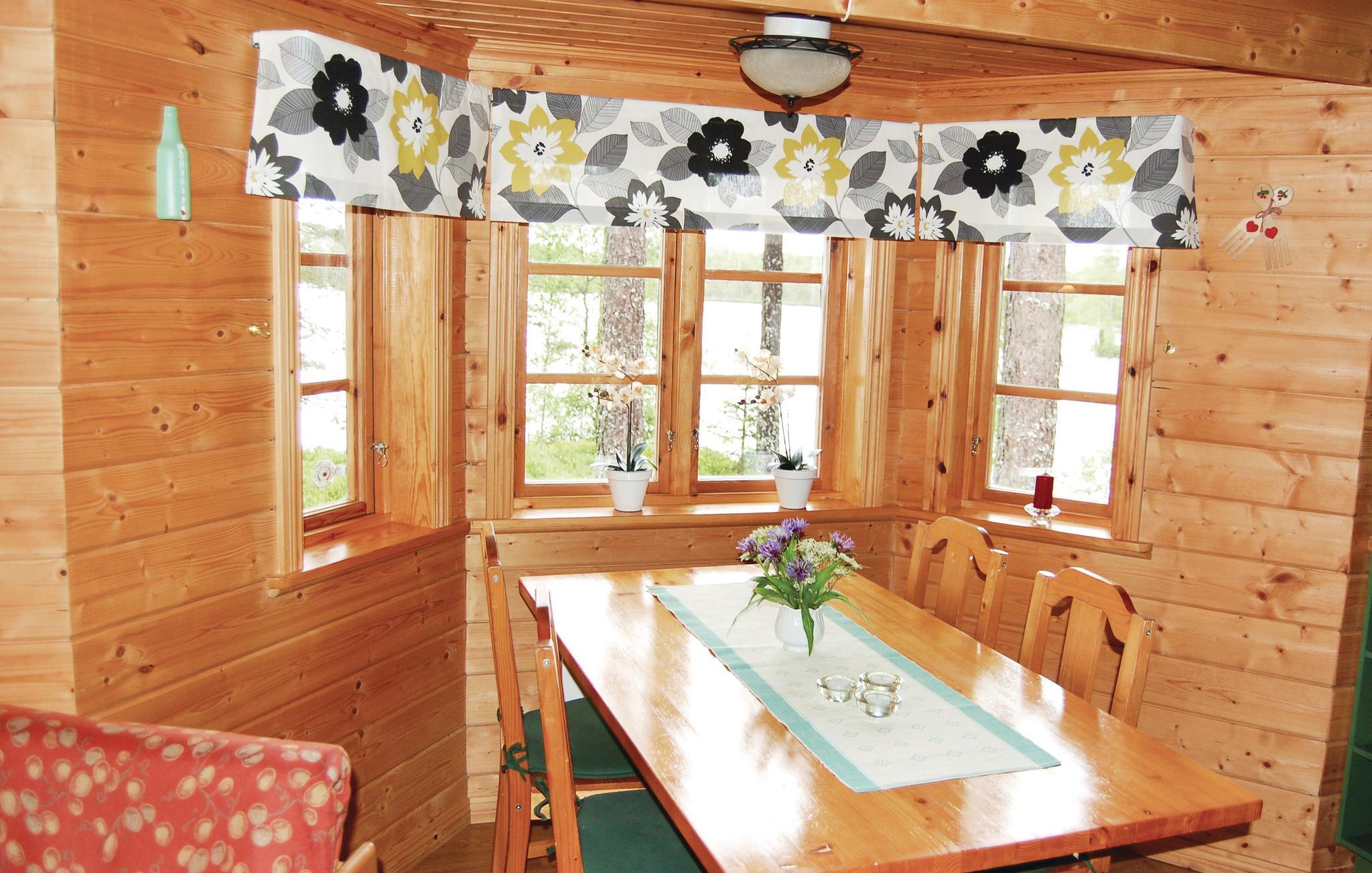 Willkommen in diesem schönen Haus auf einer kleinen bewaldeten Landzunge am langgestreckten See Linnesjön. Sehr schöne und ungestörte Lage. Echtes Holzfeeling im Haus. Vom Essbereich mit dem schönen Erkerfenster haben Sie einen herrlichen Blick auf den See. Das Haus hat eine schöne überdachte und auch eine schöne offene Terrasse mit einer kleinen Bucht des Sees. Das Ruderboot lädt zum Angeln und Baden ein. 1 Zustellbett (170 cm) kann vom Eigentümer arrangiert werden.