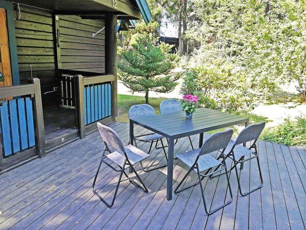 Das 2008 erbaute Ferienhaus bietet dir auf etwa 75 m² modernen Komfort, ergänzt durch ein etwa 10 m² großes Saunahaus. Das Haus verfügt über drei Schlafzimmer: ein offen gestaltetes Schlafzimmer mit Doppelbett, das zweite mit zwei Einzelbetten und Schreibtisch und das dritte mit einem Einzelbett und einem Babybett ausgestattet. Die Küche ist mit einem Elektroherd mit Glaskeramikkochfeld und Backofen, Geschirrspüler, Kühlschrank mit Gefrierfach, Mikrowelle, Toaster, Kaffeemaschine, Esstisch sowie einem Kinderhochstuhl ausgestattet. Im Wohnzimmer findest du eine gemütliche und moderne Sofaecke mit Kamin und einen Fernseher mit DVD- und CD-Player. Darüber hinaus gibt es WLAN. Das Badezimmer verfügt über eine moderne Biotoilette (geruchsfreie elektrische Verbrennungstoilette), Dusche, Waschmaschine sowie fließend warmes und kaltes Wasser. Wellness genießen könnt ihr im separaten Saunahaus mit Ruheraum. Die Terrasse am Haus mit Gartenmöbeln und Grill lädt zum Verweilen ein, während eure Kinder auf der Spiel- und Liegewiese herumtollen können. Das Auto kann auf dem Grundstück parken.