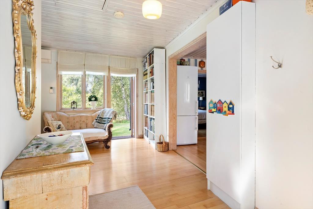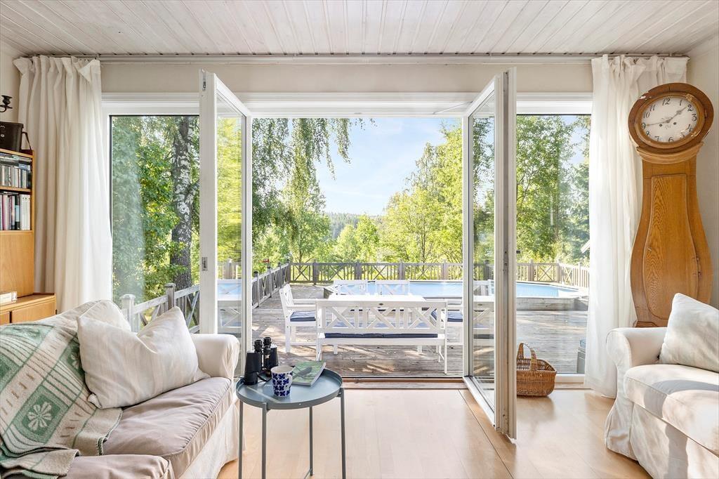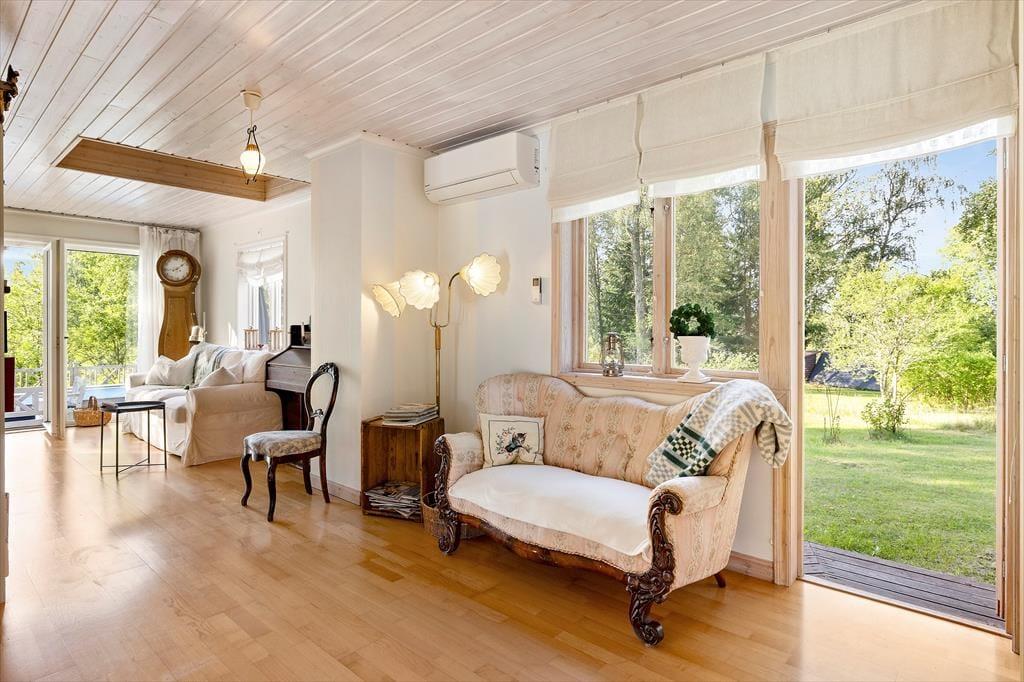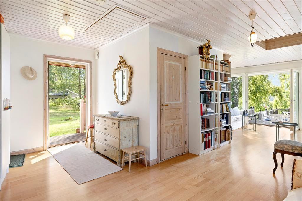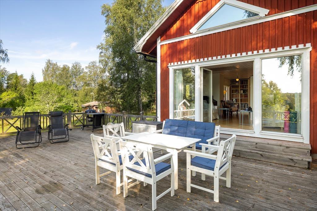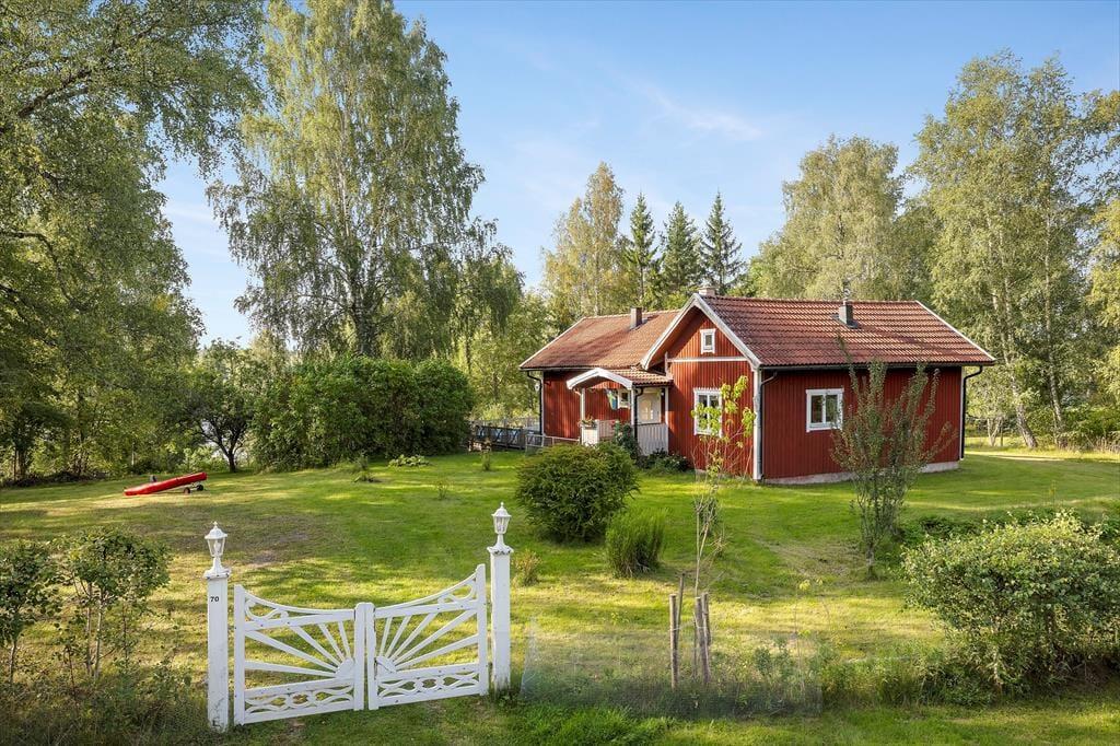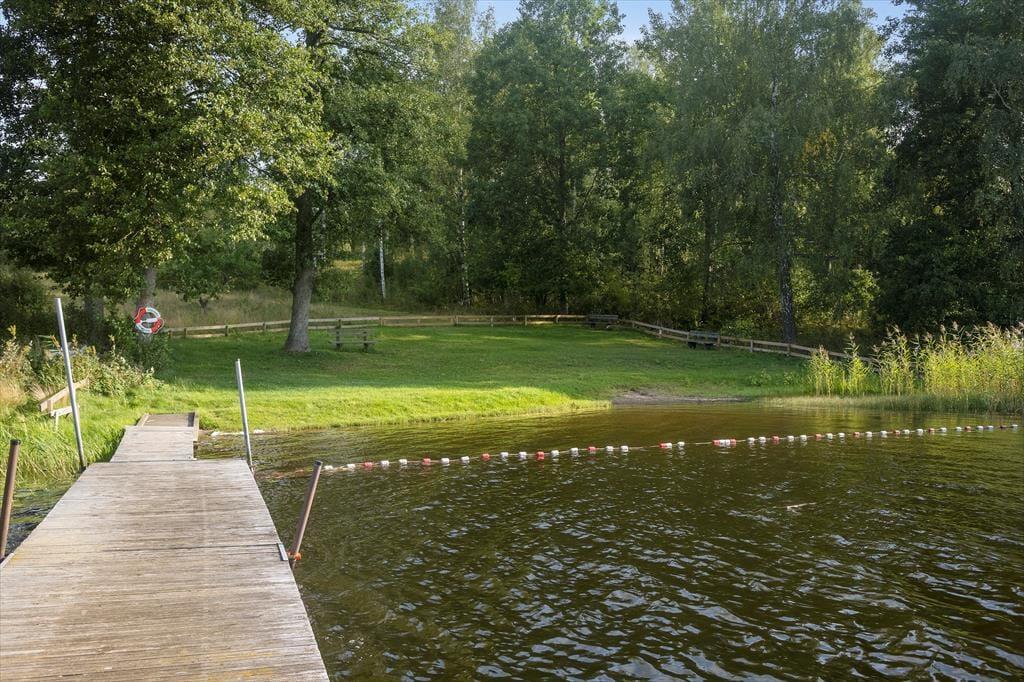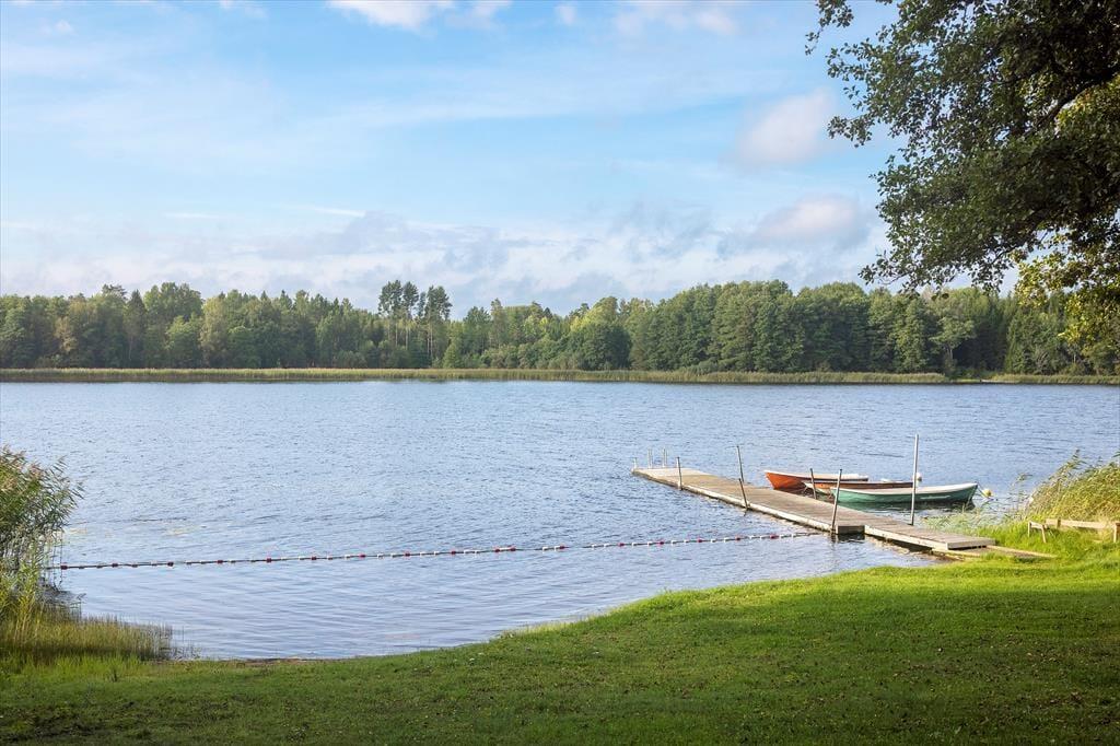 Das Ferienhaus Addarn liegt idyllisch auf einem etwa 3.000 m² großen Wiesengrundstück nur etwa 200 m vom Ufer des gleichnamigen Sees entfernt. Der nächste Nachbar wohnt in etwa 60 m Entfernung. Ein kinderfreundlicher Badestrand mit Steg ist nach etwa 300 m erreichbar – perfekt für entspannte Tage am Wasser. Zum Einkaufen fährt man in den 6 km entfernten Ort Finsta oder ins größere Nörrtälje in etwa 15 km.