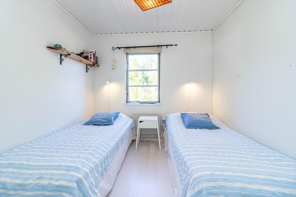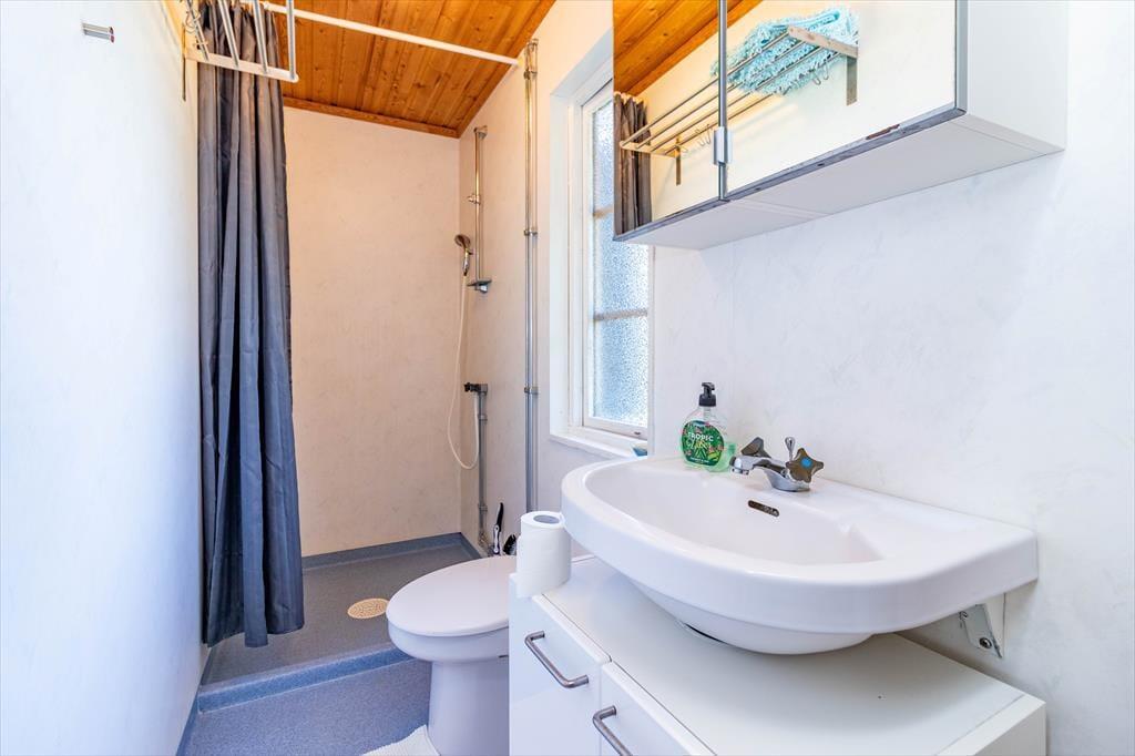 Das Haupthaus bietet auf etwa 70 m² Wohnfläche Platz für 4 Personen. Über die große Terrasse gelangst du in die Küche, die mit einem 4-Platten-Cerankochfeld und einer Kühl- und Gefrierkombination ausgestattet ist. Angrenzend befindet sich ein kleiner Essbereich. Der offene Wohnbereich mit Kamin, Sofa und TV bietet einen gemütlichen Rückzugsort. Die beiden Schlafzimmer verfügen jeweils über zwei Einzelbetten, das Badezimmer ist mit Dusche und einer Mulltoa (Komposttoilette ohne Wasserspülung, die alle 1-2 Wochen geleert werden muss) ausgestattet. Auf Anfrage kannst du dir ein Babyreisebett leihen.