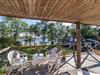 Am anderen Ende der Insel findest du eine Außenküche mit Spüle, Kühlschrank, mehreren Sitzmöglichkeiten und einer gemütlichen Feuerstelle – perfekt für entspannte Abende draußen.