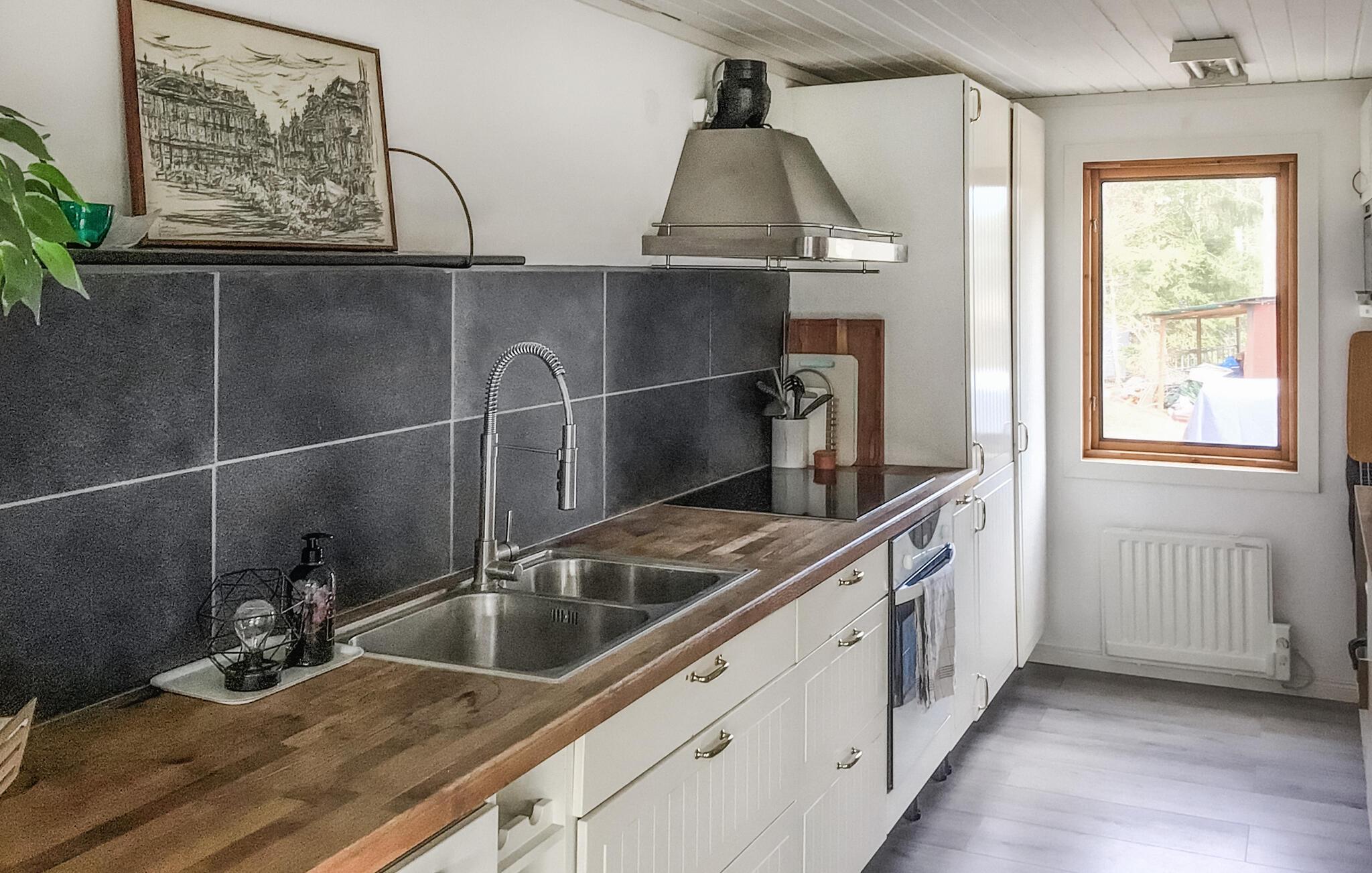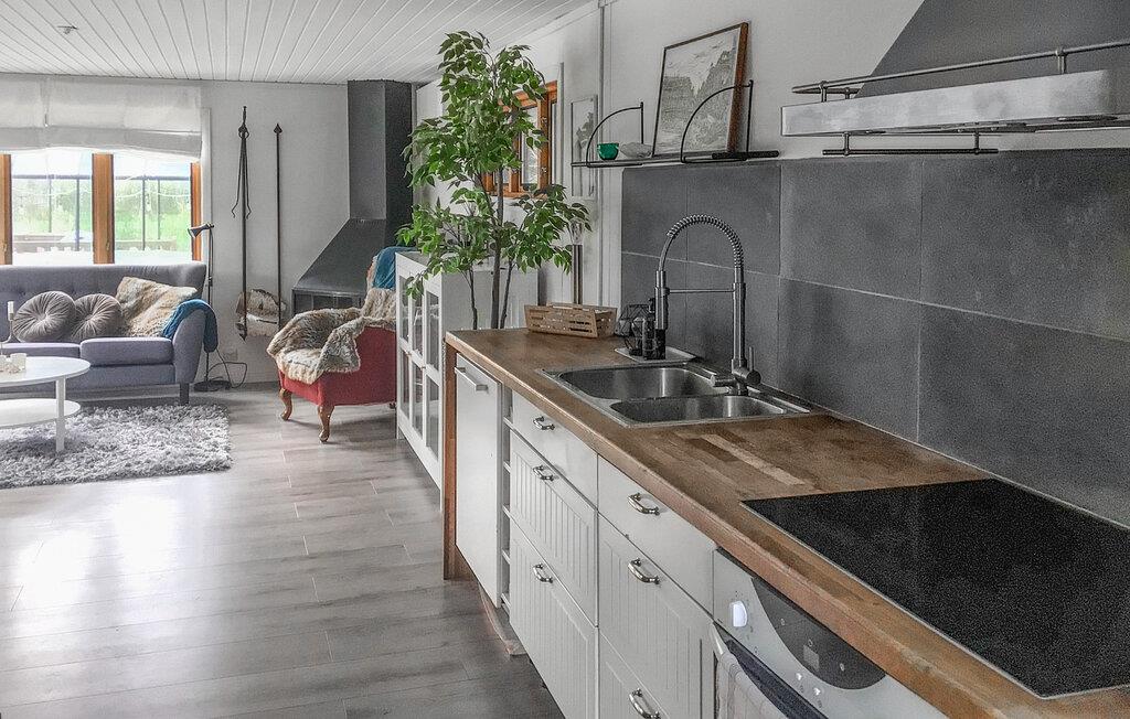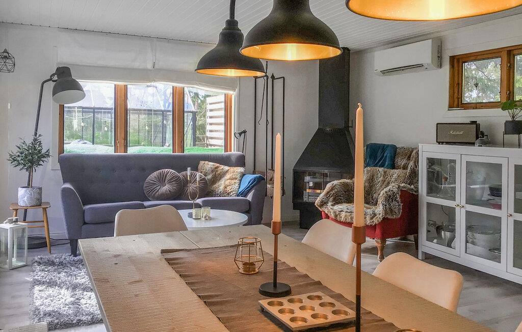 Erleben Sie in Ihrem behaglichen Ferienhaus eine gelungene Mischung aus schwedischer Naturidylle und modernen Annehmlichkeiten. Gelegen in der Nähe einer Vielzahl von Sehenswürdigkeiten und Aktivitäten, bietet Ihnen diese Unterkunft sowohl die Möglichkeit, sich in aller Ruhe zu entspannen, als auch aufregende Abenteuer zu erleben. Verleben Sie angenehme Tage in Ihrem urgemütlichen Ferienhaus, das mit einer praktischen, offenen Küche, einem rustikalen Holzesstisch und einer kuscheligen Sofaecke sowie vielen stilvollen Details für echte Wohlfühlstimmung sorgt. Das kinderfreundliche Grundstück bietet Ihnen zahlreiche Aktivitätsmöglichkeiten. Spielen Sie mit der ganzen Familie Kubb, Tischtennis, Federball, Cricket, Dart oder Fußball. Ausruhen können Sie sich anschließend auf dem großen Außensofa auf der Terrasse.