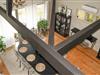 Betreten Sie den großzügigen Wohnbereich und machen Sie es sich am Esstisch gemütlich. Die offene Gestaltung mit sichtbaren Balken und den weiten Fensterflächen verleiht dem Raum eine luftige Atmosphäre. Setzen Sie sich in die Sofaecke und genießen Sie die Ruhe oder einen Filmabend. Nutzen Sie die Küche mit ihren langen Arbeitsflächen und dem Essplatz am Fenster, um Ihre Mahlzeiten komfortabel vorzubereiten und zu servieren. Der Kaminofen mit seiner markanten Natursteinwand sorgt zusätzlich für wohltuende Wärme.