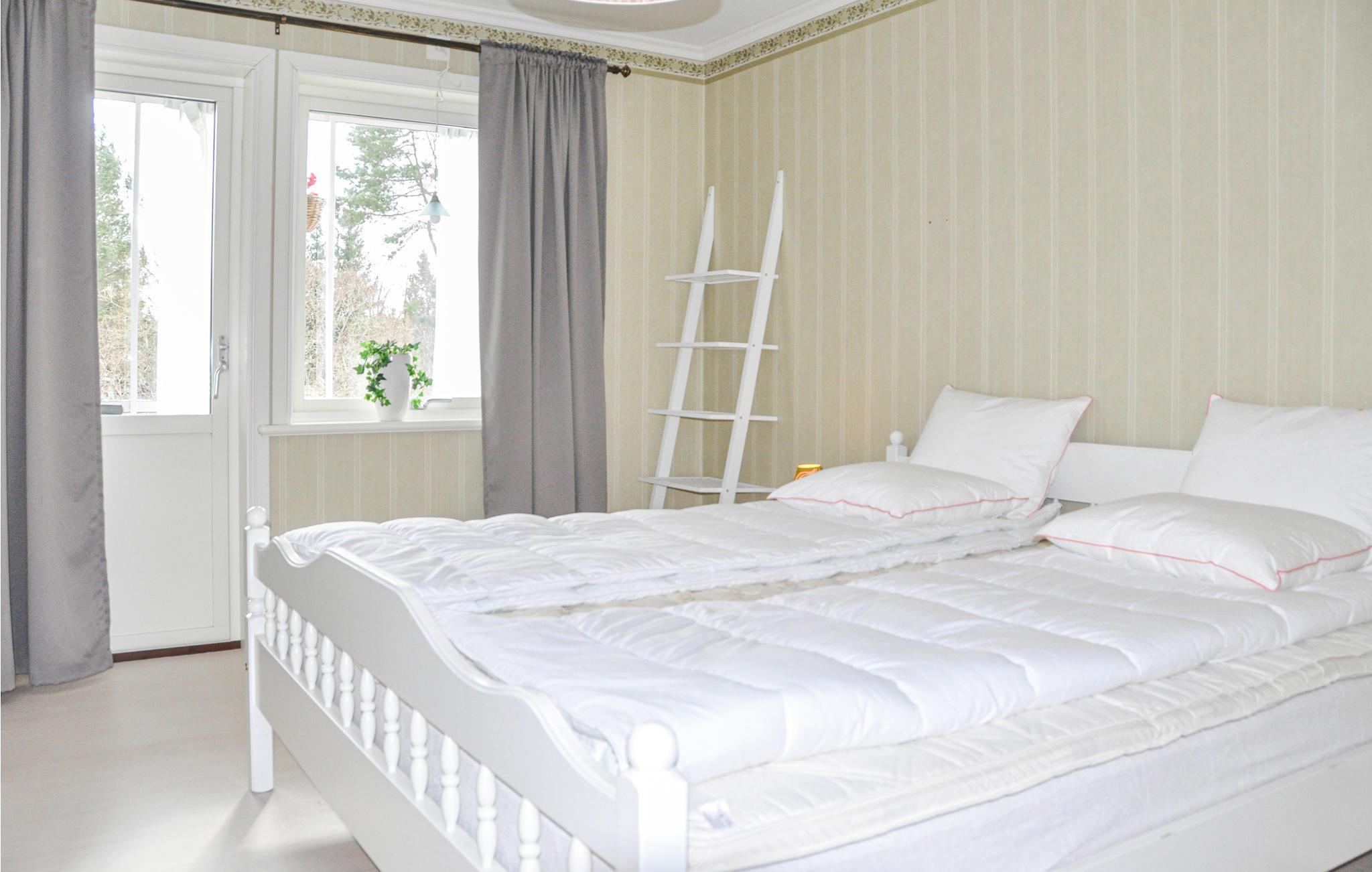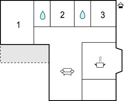 Das Haus verfügt über 6 Betten in 3 Schlafzimmern. Ein Schlafzimmer hat ein Doppelbett und die anderen beiden Schlafzimmer haben zwei Einzelbetten. Das Wohnzimmer und die Küche sind geräumig. Das Schlafzimmer mit Doppelbett ist ein Durchgangsraum zum Badezimmer mit Dusche. Der Eingang zum WC liegt im Flur. Auf dem Grundstück gibt es einen Spielplatz mit Schaukel und Rutsche für Kinder. Kinderbett und Hochstuhl können ausgeliehen werden.