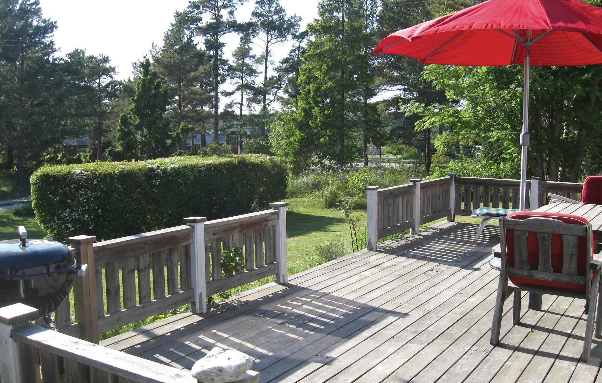 Ferienhaus mit Gästehaus in Valleviken. Im Ort gibt es ein Sommerrestaurant und einen Strand mit einem Steg. 2 km vom Haus liegt Furillen, eine Insel mit einer Brücke, denn auf ihr wurde einst Kalk abgebaut. In den alten Fabriksgebäuden liegt nun ein Hotel und im Sommer ein Restaurant. In Lergrav finden Sie ein beeindruckendes Raukengebiet. Die höchste hat den Namen Modonna mit Kind. Im Fischerdorf können Sie geräucherte Flunder kaufen, sich auf eine der Brücken setzten und die Ruhe genießen. Norra Gotland beherbergt mehrere ehemalige Kalksteinbrüche mit Badeseen. Wenn Sie nicht immer Sand beim Baden zwischen Ihren Zehen haben wollen, dann schwimmen Sie in einem dieser Seen. In Rute finden Sie auch das Naturreservat Bräntings Haid mit einer artenreichen Flora (Sand-Thymian, Fetthennen, Disteln) und die Vogelarten Heidelerche und Ziegenmelker. In das Gästehaus dürfen Sie kein Haustier mitnehmen. Visby 52 km.