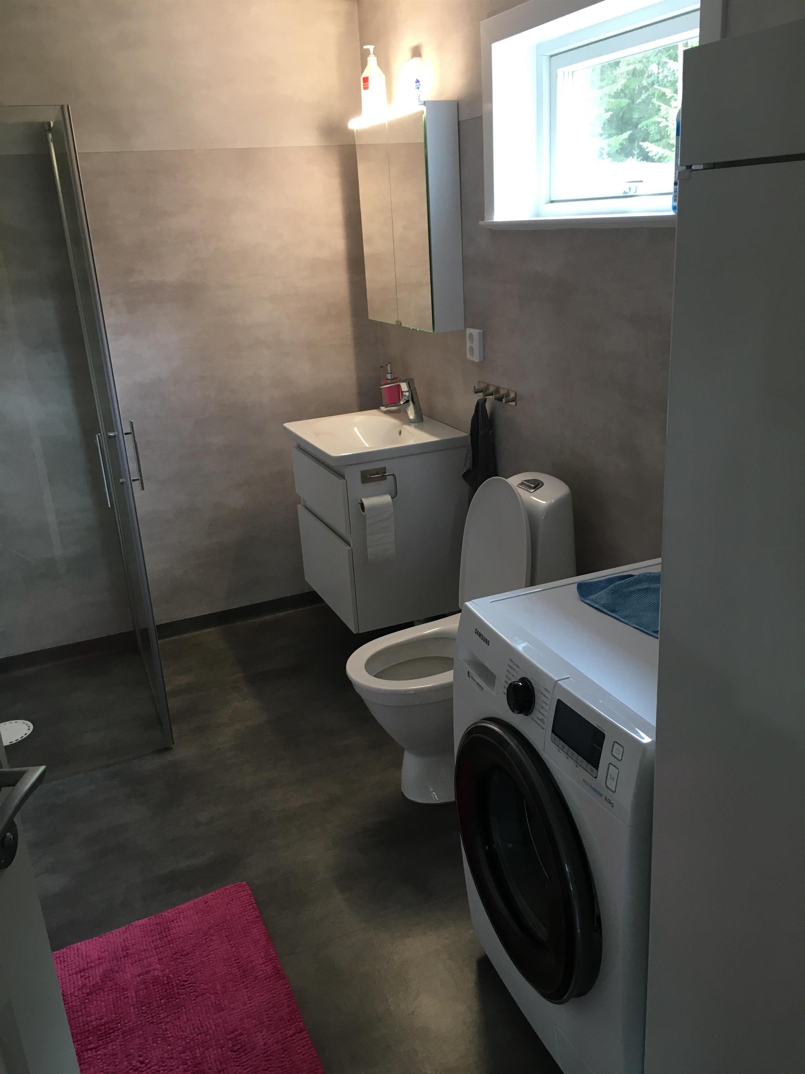 Das Ferienhaus ist 111 m2 groß, davon 88 m2 im Erdgeschoss. Hier gibt es ein großes Wohnzimmer in Verbindung mit der offenen Küche und dem Holzofen. Es gibt zwei Schlafzimmer. Eines ist mit einem Doppelbett und das andere mit einem Etagenbett ausgestattet. Es gibt ein großes Bad mit Dusche, WC, Waschmaschine und Trockenschrank sowie ein kleineres Bad mit WC.
