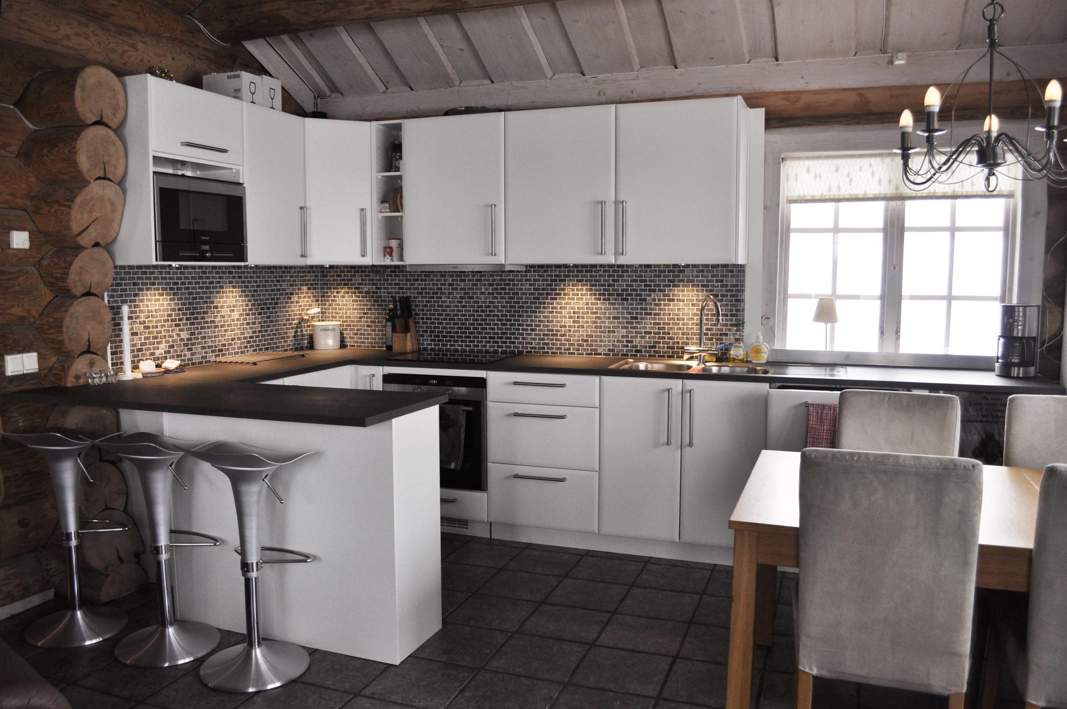 Die Wohnküche ist ein richtig schöner Aufenthaltsort, nicht zuletzt wenn im Holzofen ein knisterndes Feuer entzündet wird, das Wärme und Duft im Haus verbreitet. Es gibt einen Fernseher mit Telias Basispaket + Netflix und WLAN-Glasfaserkabel.