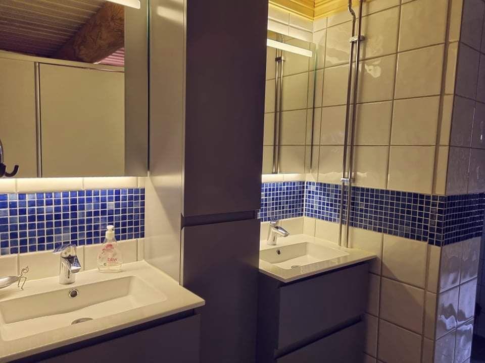 Im großen Haus befindet sich ein Badezimmer mit 2 Toiletten und 2 Duschen und im Nebengebäude befindet sich ein Badezimmer mit Toilette und Badewanne.