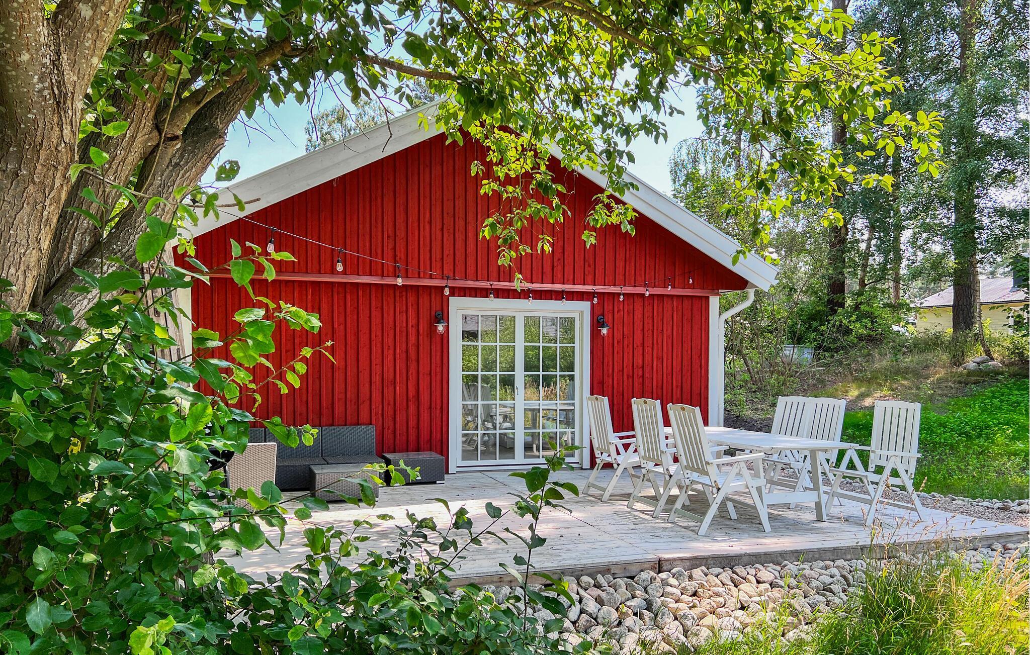 Im Außenbereich können Sie auf dem Naturgrundstück die frische schwedische Luft genießen. Die Nähe zur Küste verspricht spaßige Tage am Wasser. Spielen Sie mit Ihren Kindern an dem bezaubernden weißen Sandstrand und genießen Sie erfrischende Badefreuden.