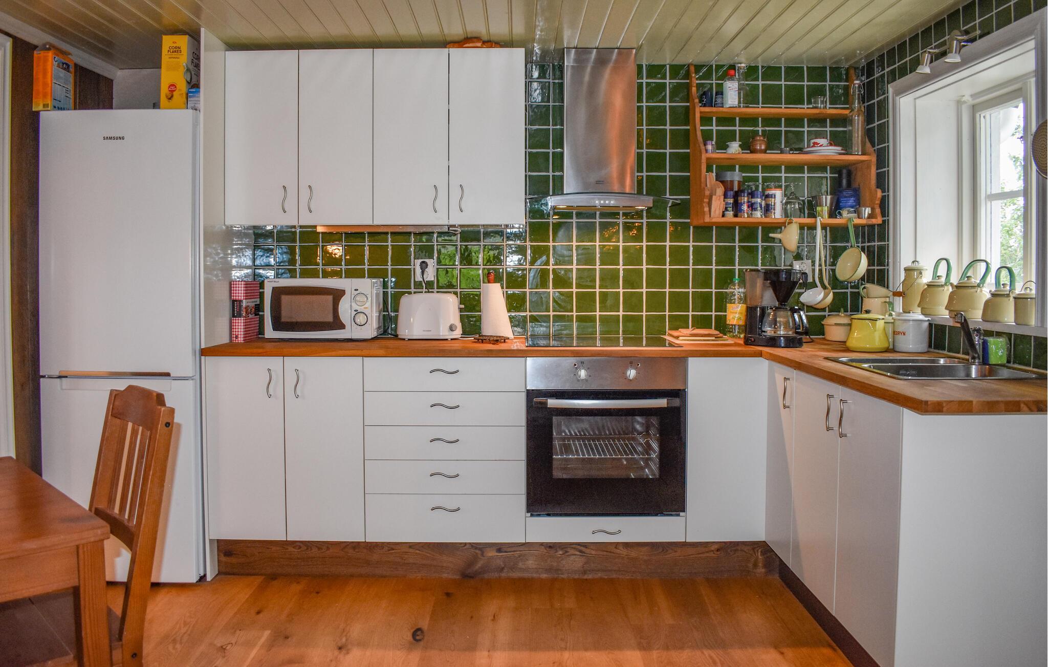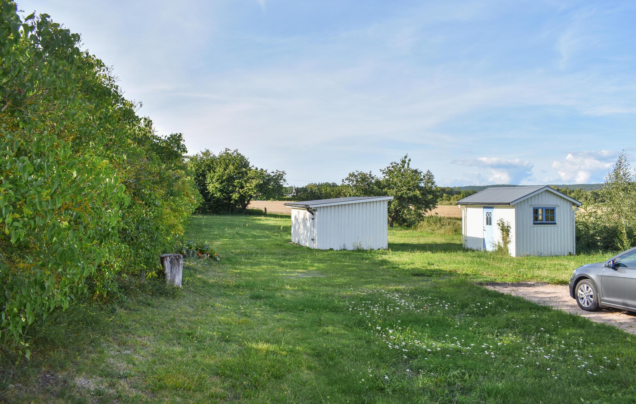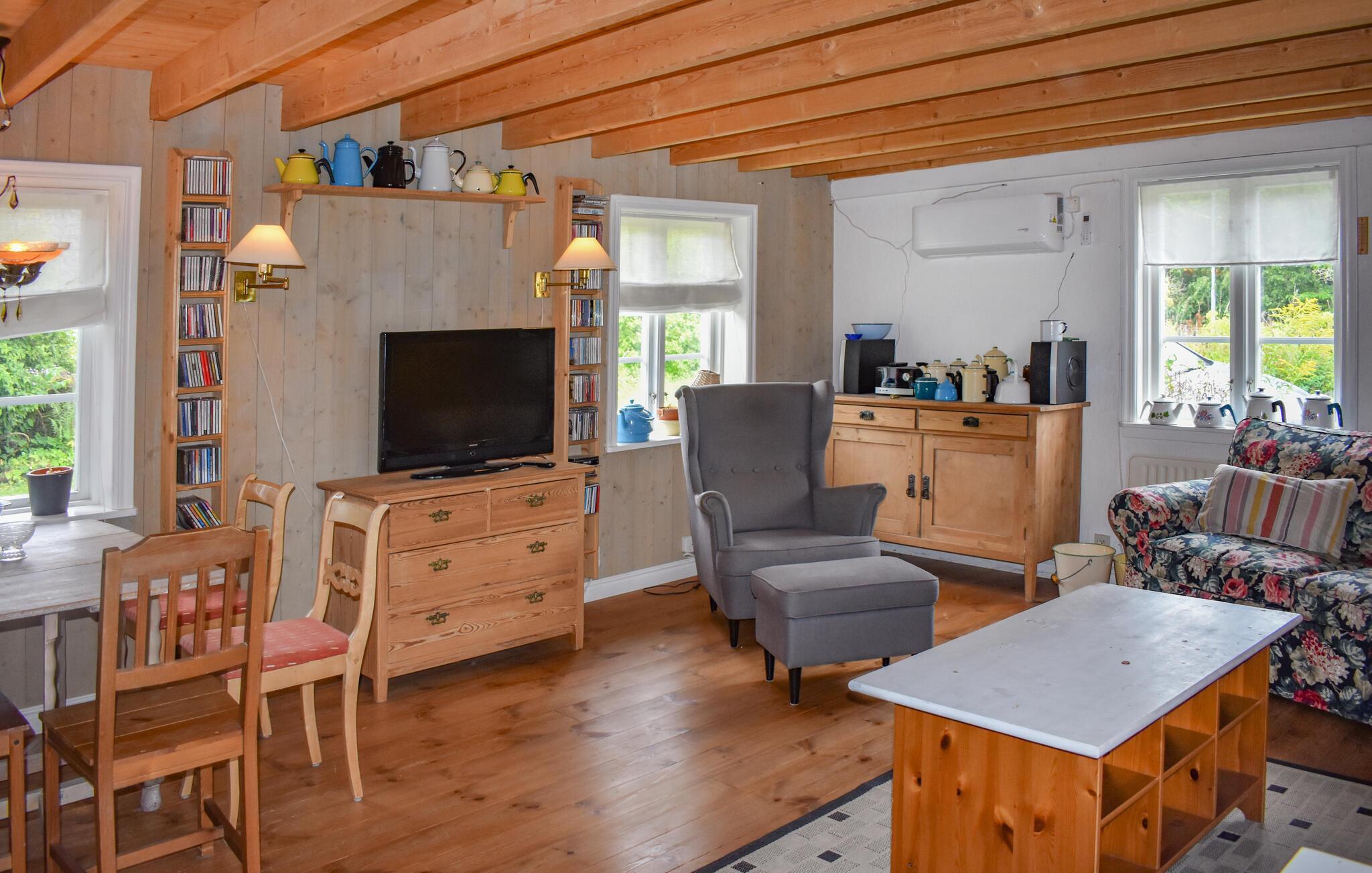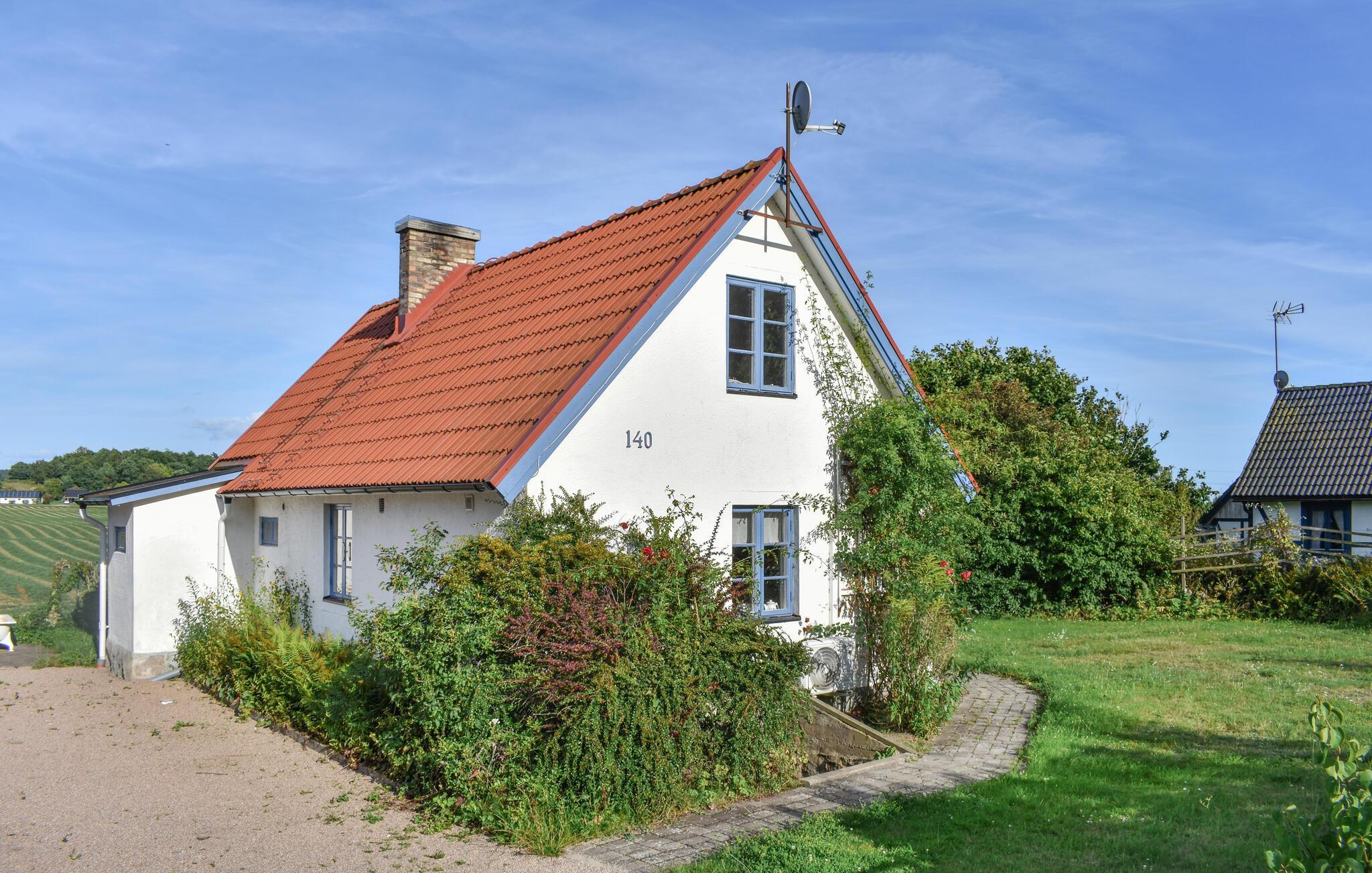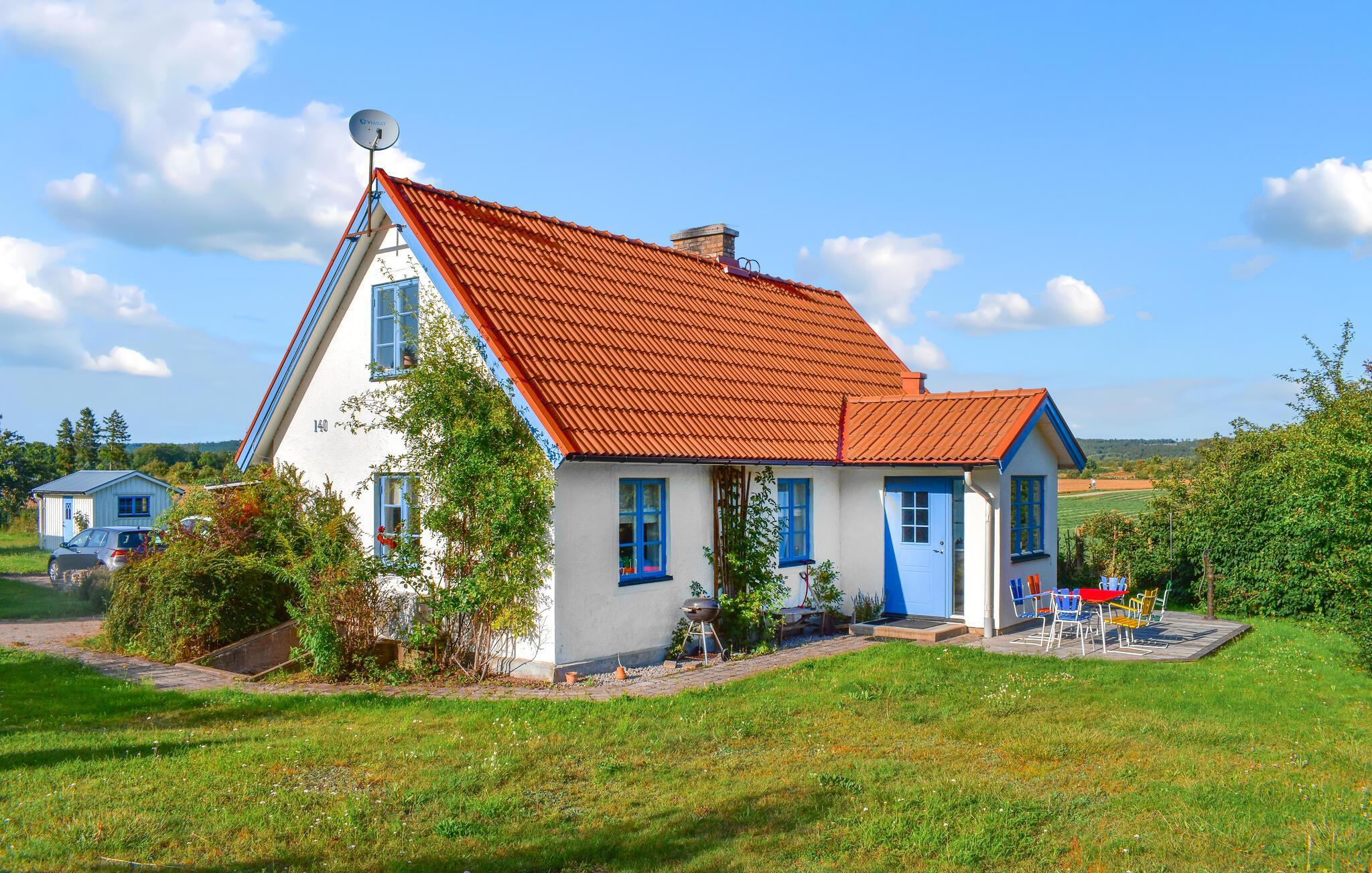 Erleben Sie einen erholsamen Urlaub in diesem charmanten Ferienhaus, das idyllisch zwischen Sölvesborg und Bromölla liegt. Schon von außen ist Ihr Ferienhaus ein echter Hingucker. Genießen Sie die Ruhe auf dem weitläufigen Grundstück und lassen Sie den Blick über die umliegenden Felder schweifen. Machen Sie es sich auf der Terrasse bequem und genießen Sie die sonnigen Stunden im Freien. Die gemütliche Einrichtung des Hauses lädt zu entspannten Stunden im Wohnzimmer ein, wo Sie nach einem ereignisreichen Tag vor dem Kaminofen entspannen können. Nutzen Sie die gut ausgestattete Küche, um leckere Mahlzeiten zuzubereiten, die Sie dann im Essbereich oder auf der Terrasse genießen können. Hier werden Sie sich wie zu Hause fühlen.