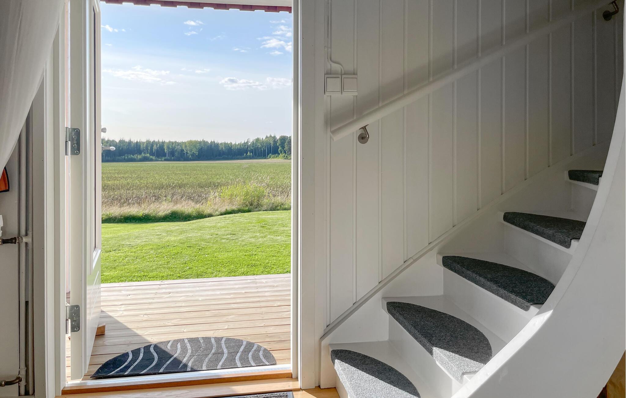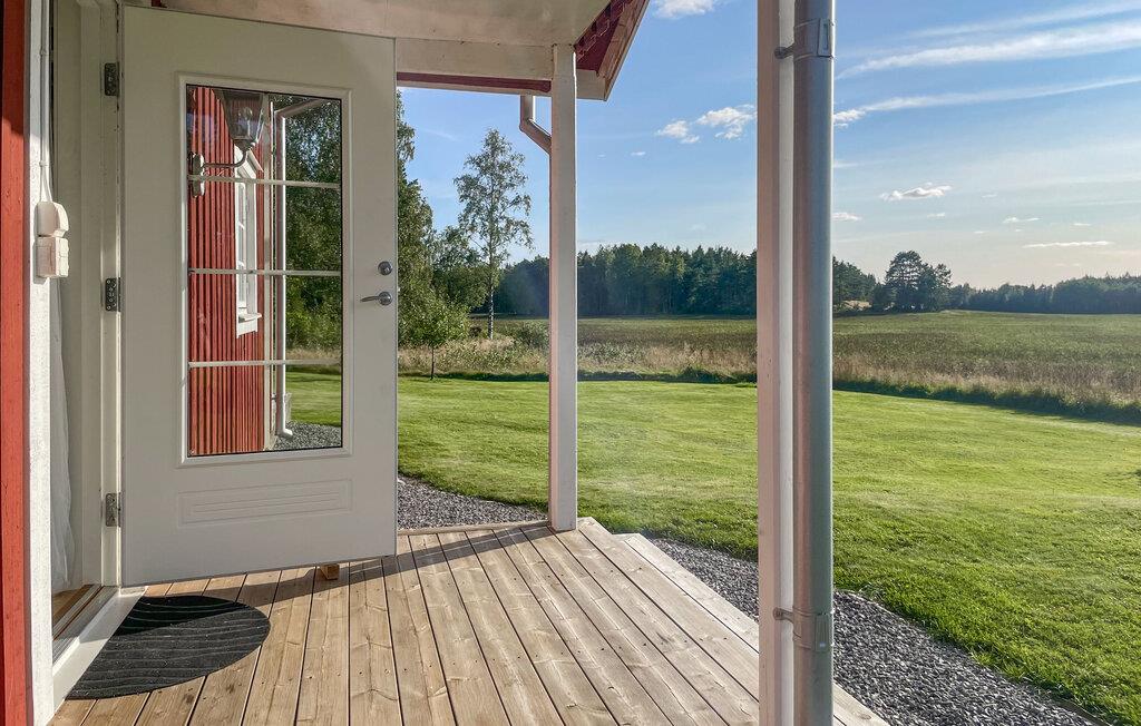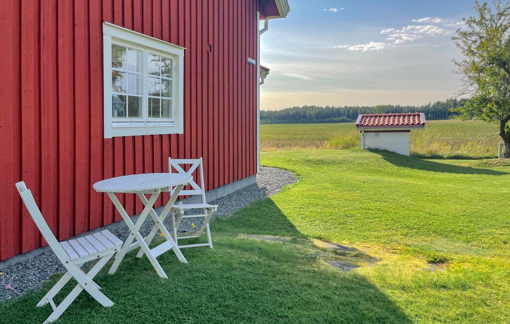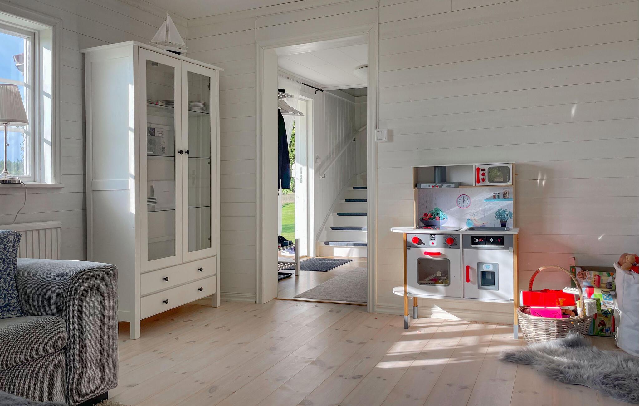 In diesem gemütlichen Ferienhaus erwartet Sie eine ruhige Auszeit auf einem großen, ungestörten Grundstück. Erkunden Sie die Räume auf zwei Etagen und fühlen sich inmitten des weißen Ambientes und der komfortablen Einrichtung wie zuhause. Die einladende Atmosphäre und die große Terrasse mit schöner Aussicht auf die Landschaft laden zum Entspannen ein. Mit viel Platz und einer idyllischen Lage nahe dem Vänernsee ist das Haus ideal für alle, die Ruhe und Natur suchen. Genießen Sie gemütliche Abende im Haus oder auf der Terrasse und lassen Sie den Blick über die weiten Felder schweifen.