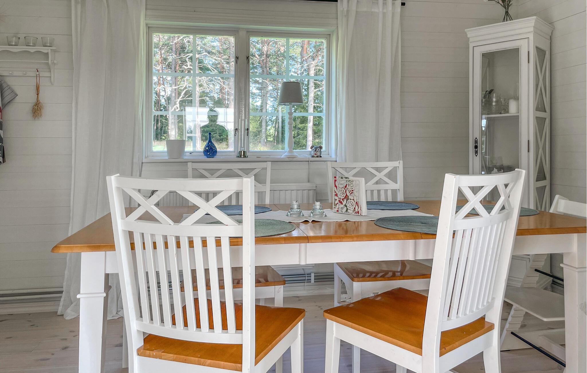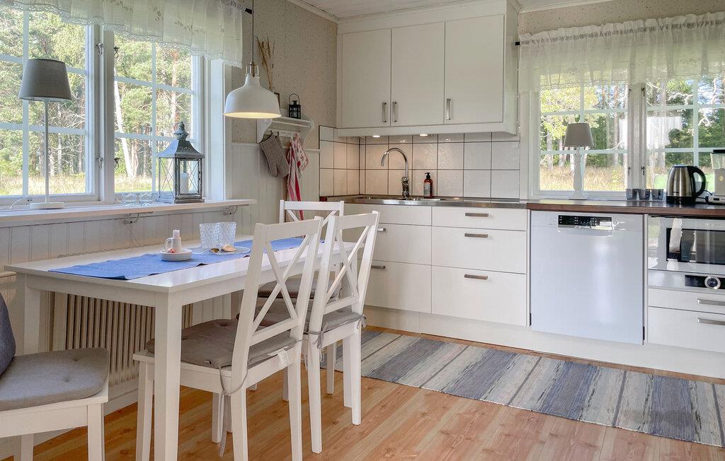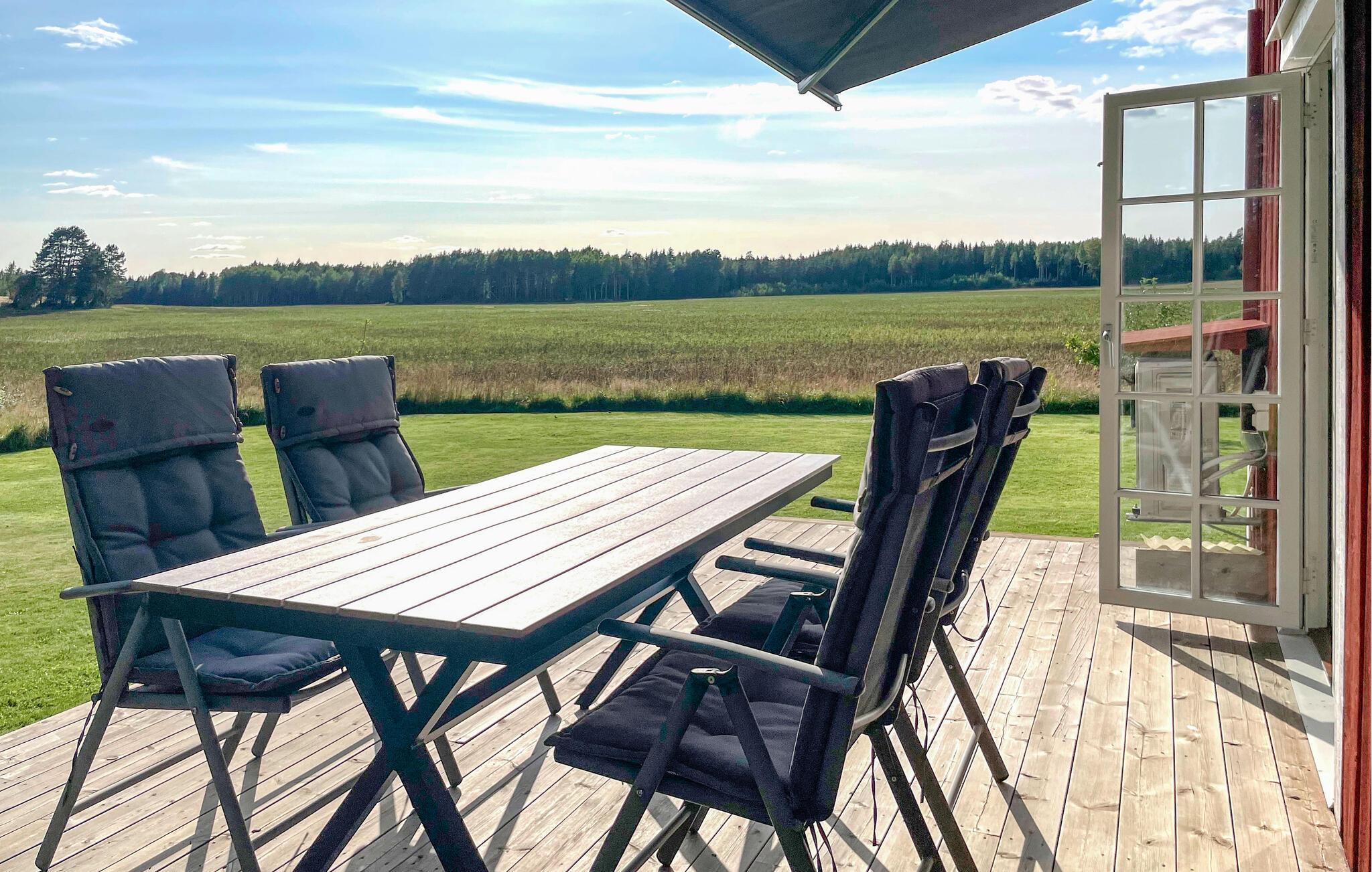In diesem gemütlichen Ferienhaus erwartet Sie eine ruhige Auszeit auf einem großen, ungestörten Grundstück. Erkunden Sie die Räume auf zwei Etagen und fühlen sich inmitten des weißen Ambientes und der komfortablen Einrichtung wie zuhause. Die einladende Atmosphäre und die große Terrasse mit schöner Aussicht auf die Landschaft laden zum Entspannen ein. Mit viel Platz und einer idyllischen Lage nahe dem Vänernsee ist das Haus ideal für alle, die Ruhe und Natur suchen. Genießen Sie gemütliche Abende im Haus oder auf der Terrasse und lassen Sie den Blick über die weiten Felder schweifen.